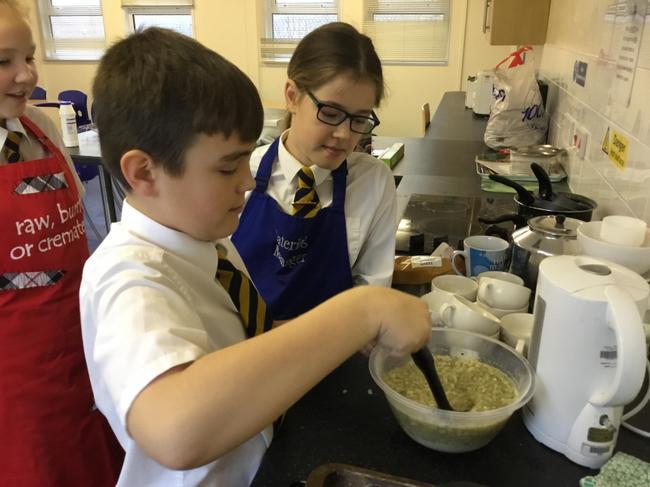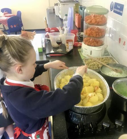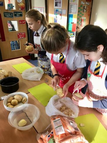 As part of our Design Technology curriculum, Year 6 prepared their own Christmas lunches. These preparations included: peeling carrots and potatoes, mixing the stuffing, roasting it all and of course, making the gravy!