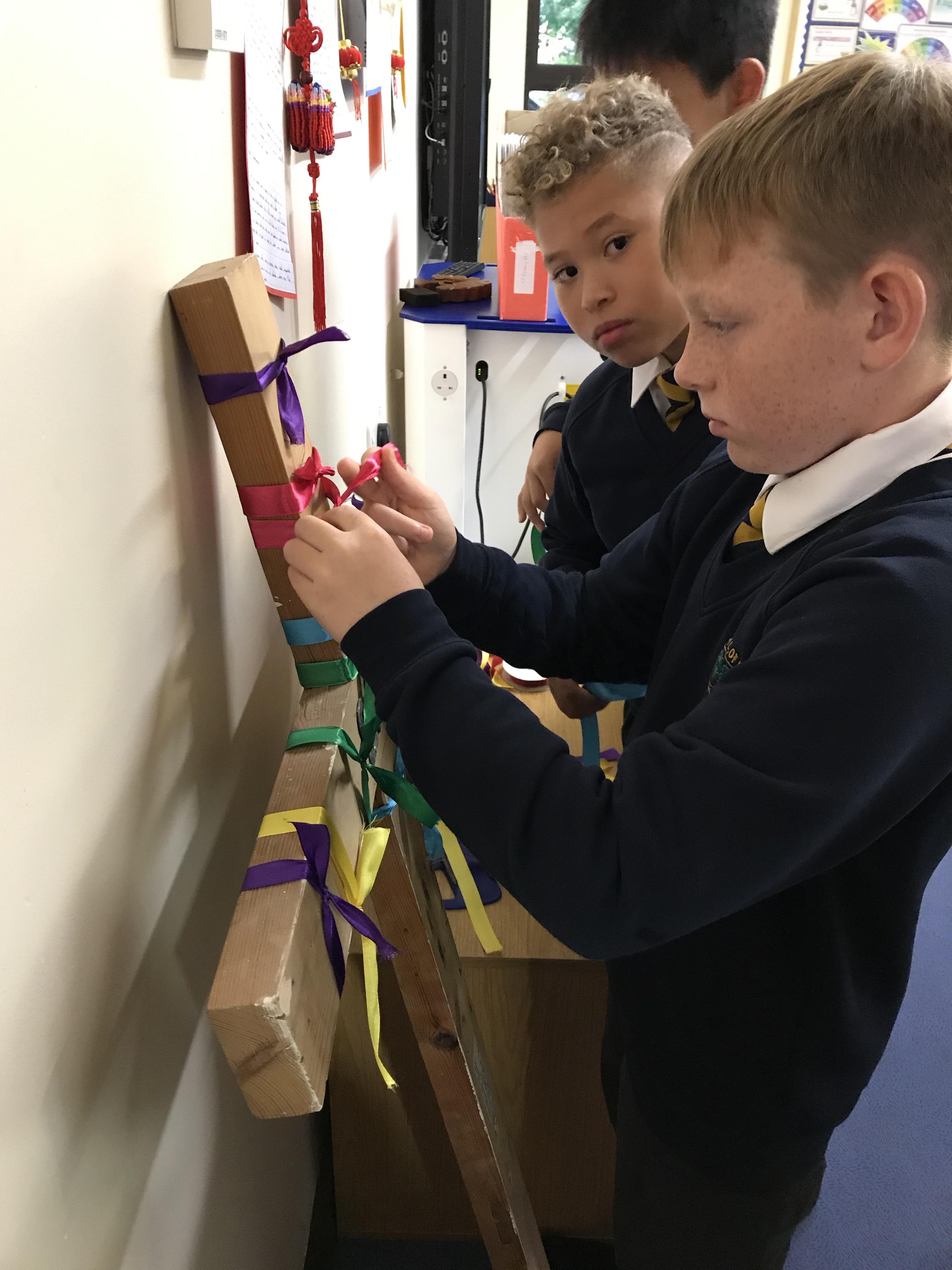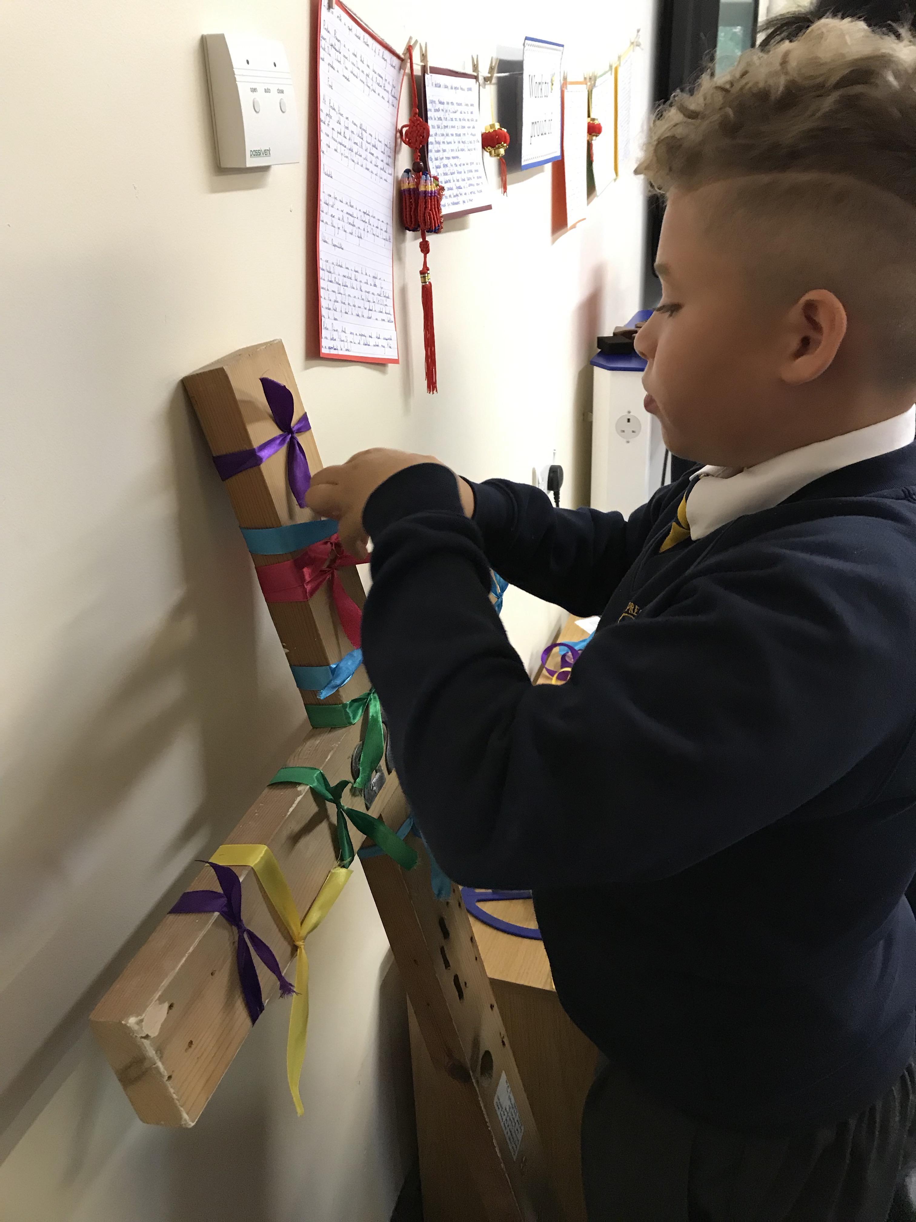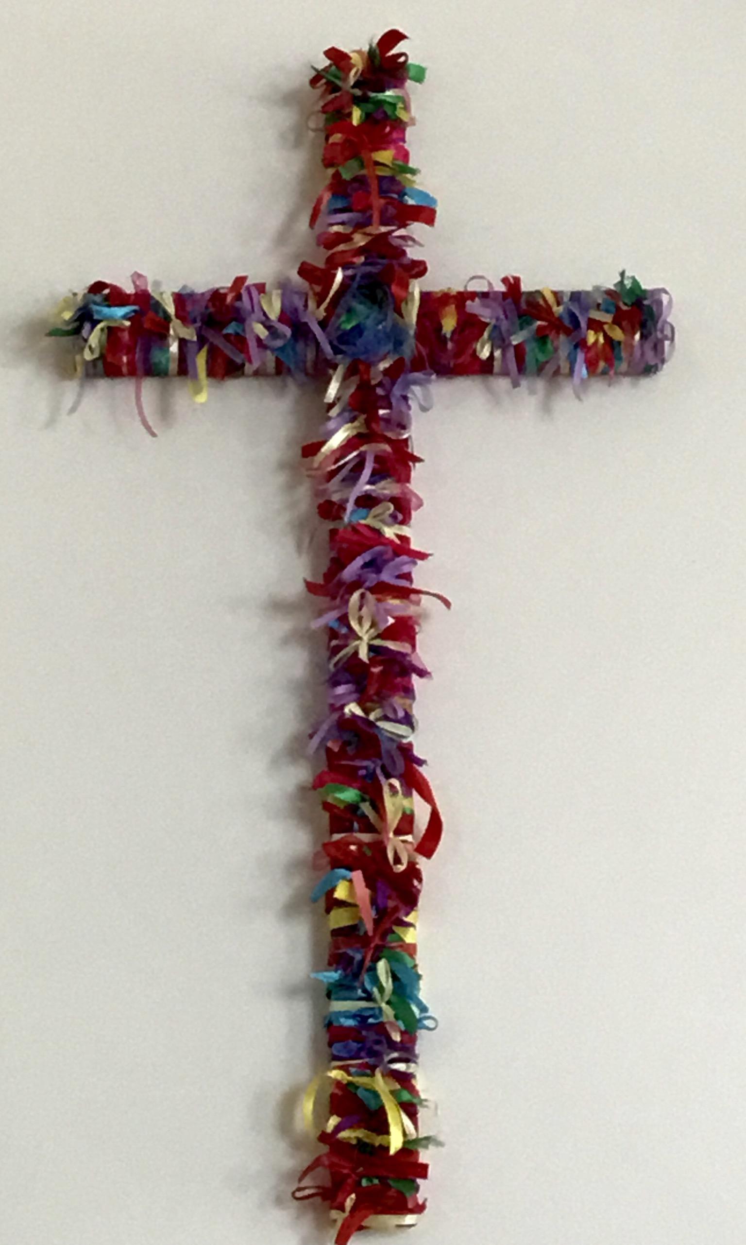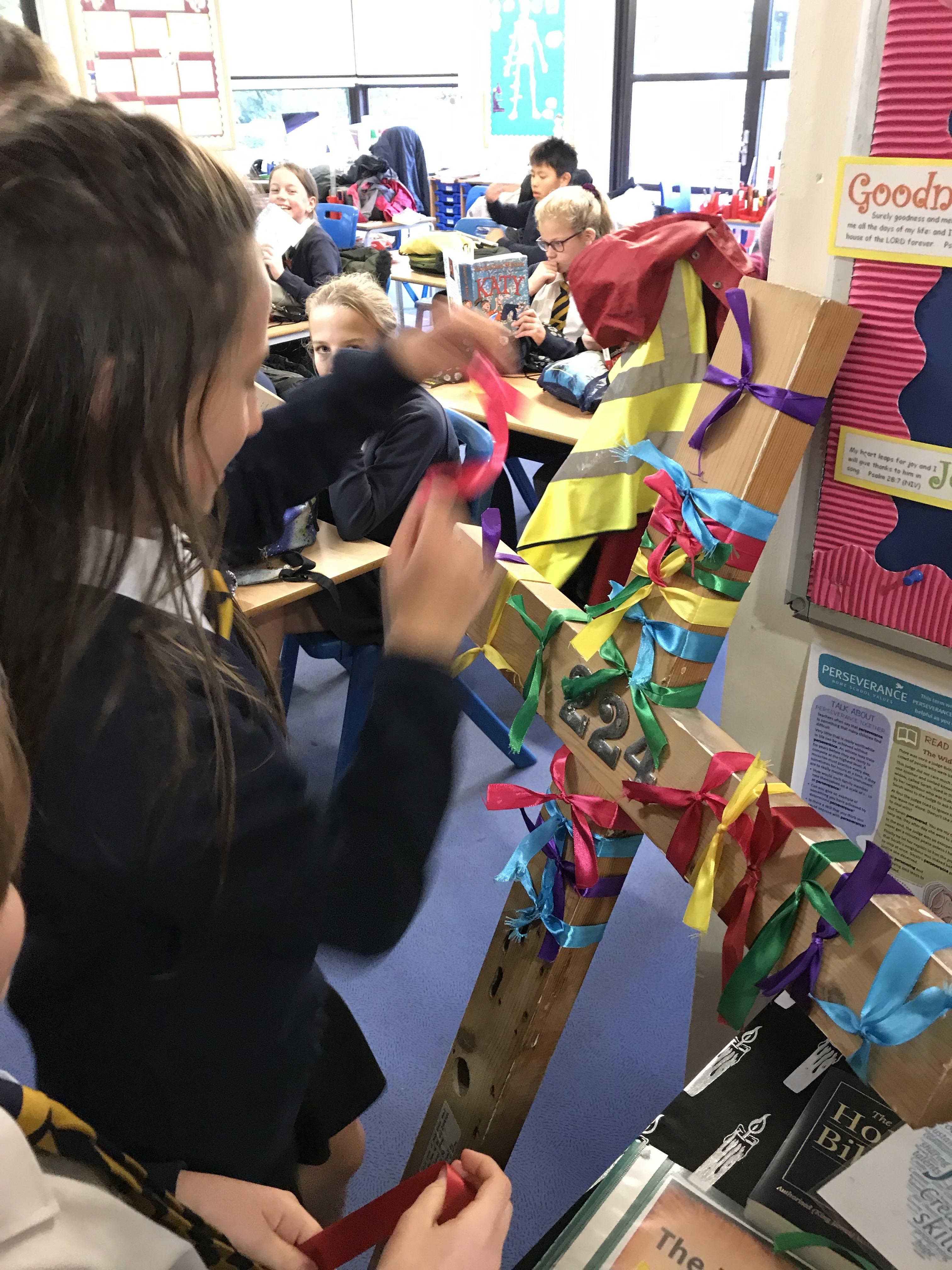 A whole school activity took place this term, to create a new cross to hang in our new school hall. Every child tied a piece of colourful ribbon to the original cross and then said a prayer for the school community.