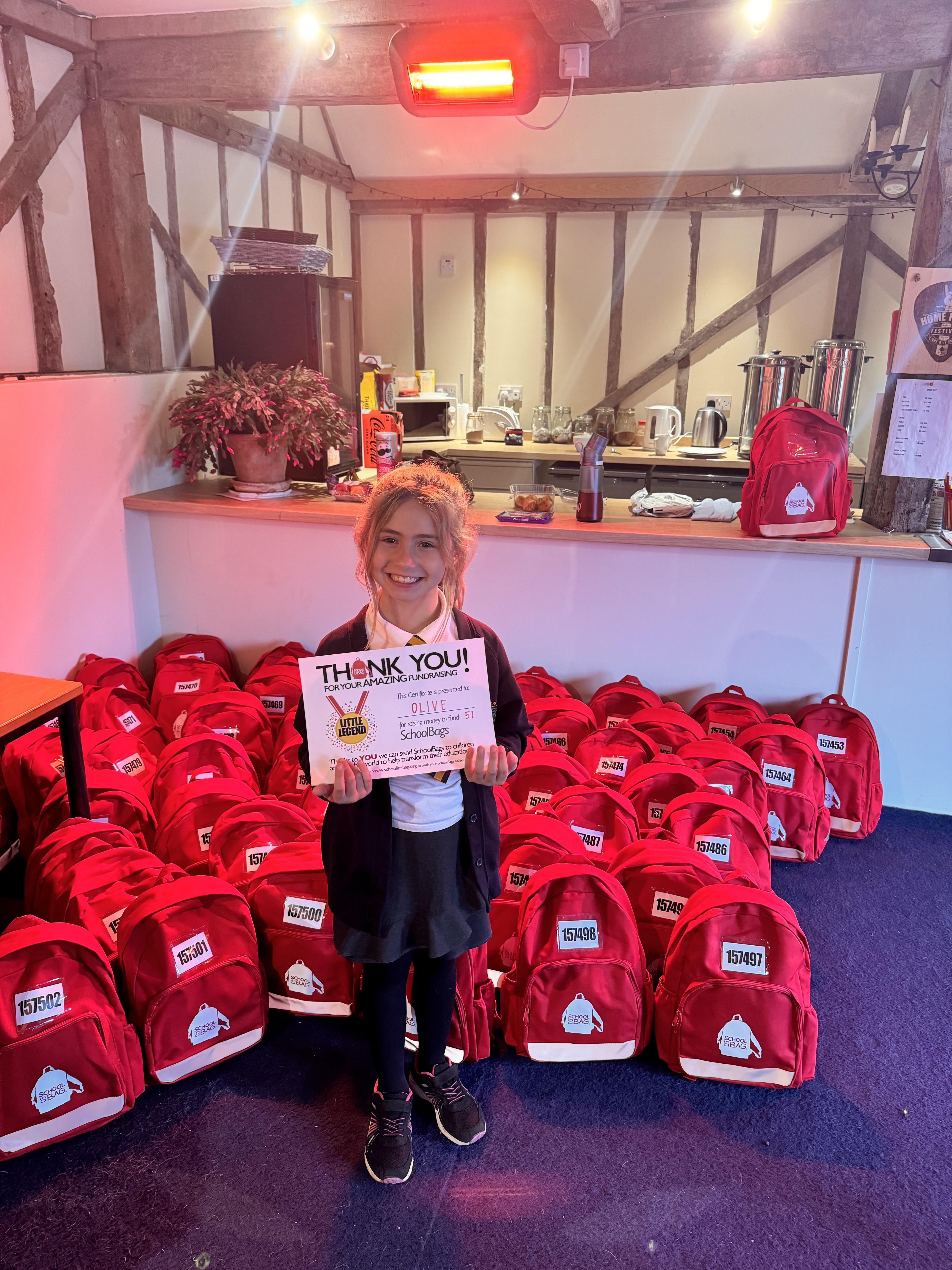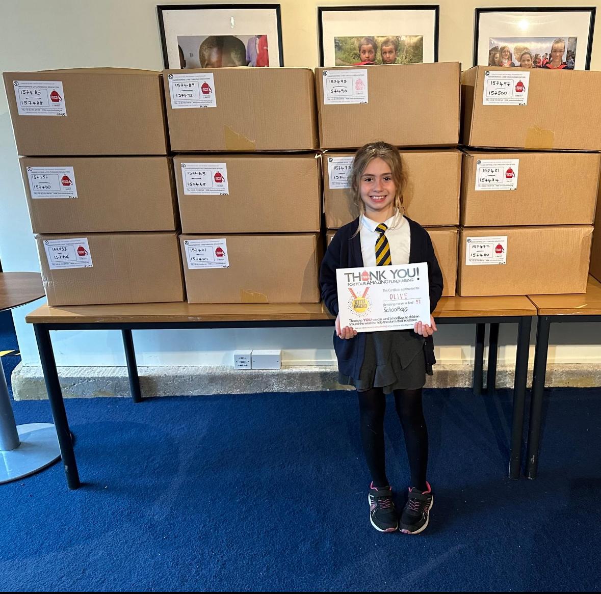 The total she raised was £1025, which was enough for 51 bags. Well done Olivia!