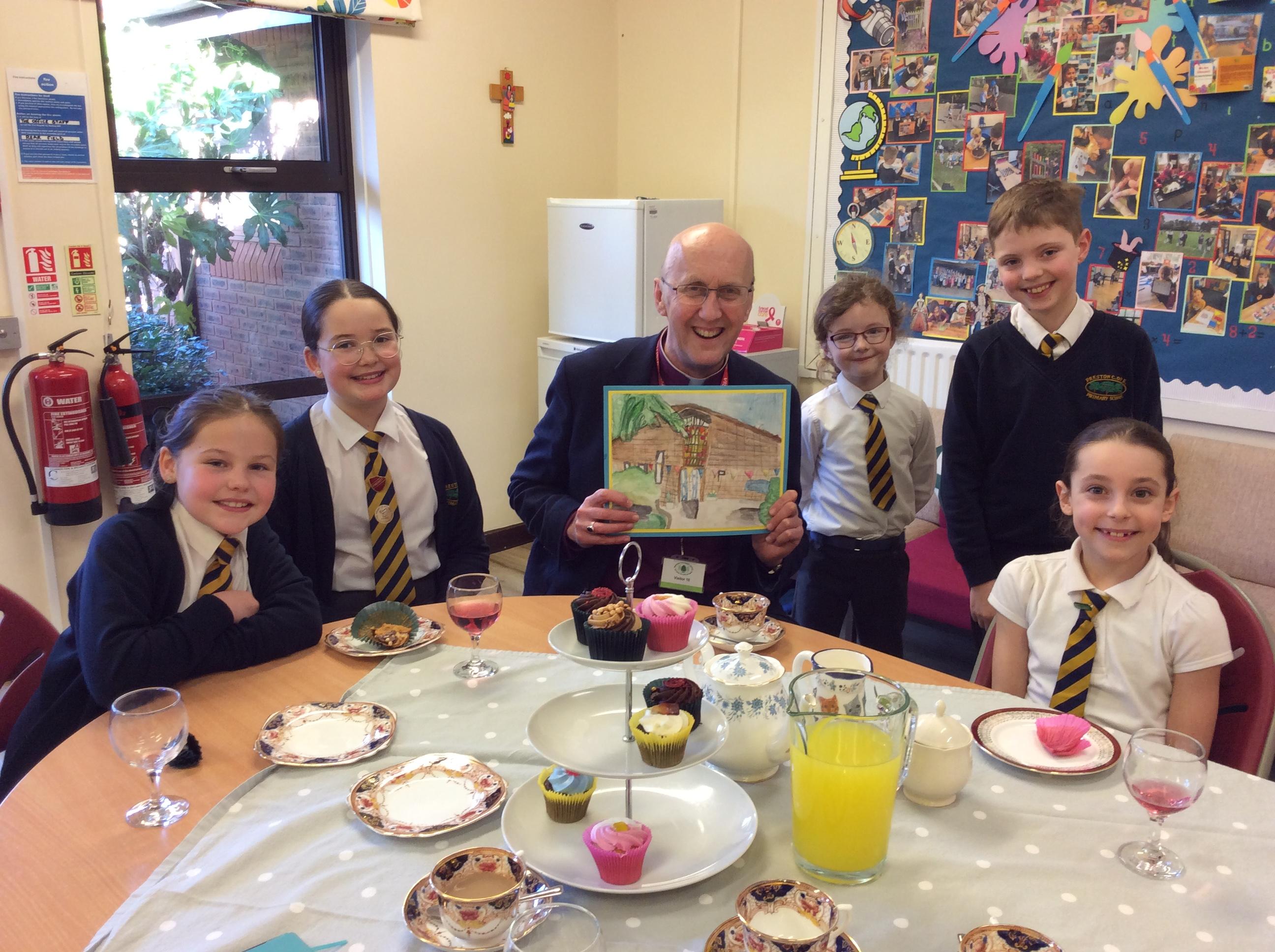 Bishop Michael Beasley’s visit to our school was a truly memorable event. He engaged with students and staff, sharing stories and prayers. He enjoyed a tour of the school as well as tea and cake whilst answering questions from the children. Bishop Michael was presented with a beautiful image of our school, painted by Mia Uy in Year 2.