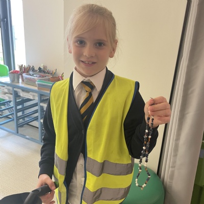 Today, we visited St James’ Church and Reverend Keen taught us about what happens during a baptism ceremony. We learnt that the holy water is poured onto people’s heads as a symbol of them being cleansed and about the role of Grandparents. Reverend Keen showed us the special robes he has to wear during the ceremony. After that, we acted our a baptism ceremony.