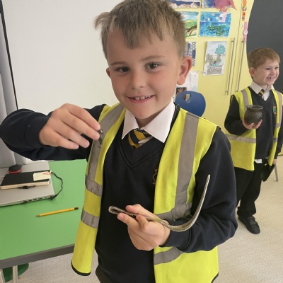 Today, we were learning about magnetic materials. We learnt that all magnetic materials are made from a metal but we found that not all metals are magnetic. We used magnets to test different objects around the classroom.