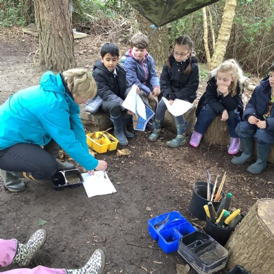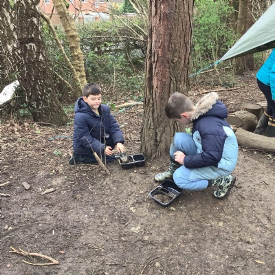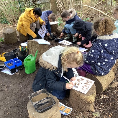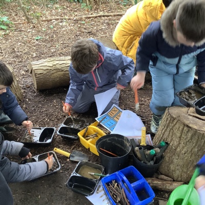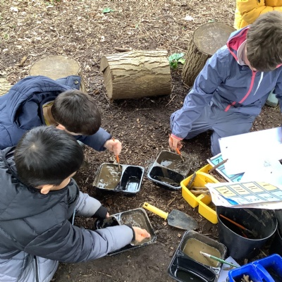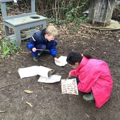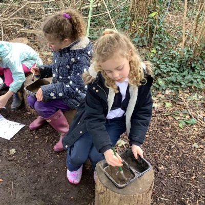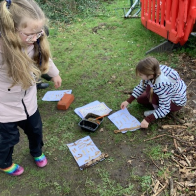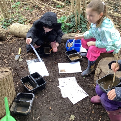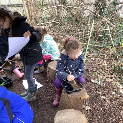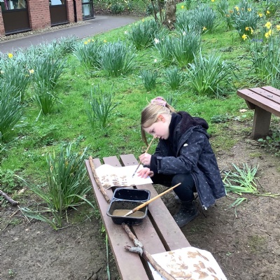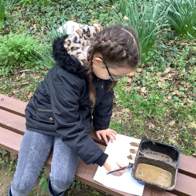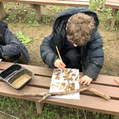 Today, we made our own paint using natural resources. To make the base of the paint, we used flour and water. Then, we added herbs, spices, coffee and charcoal to create different colours.