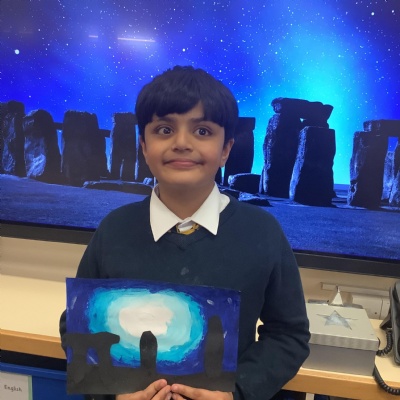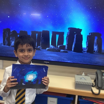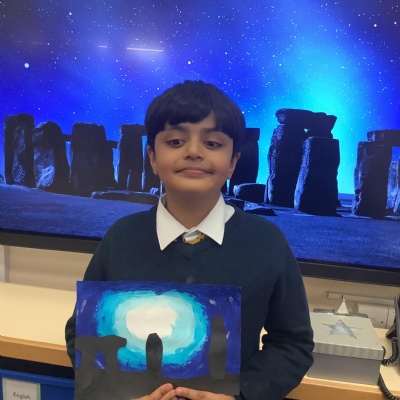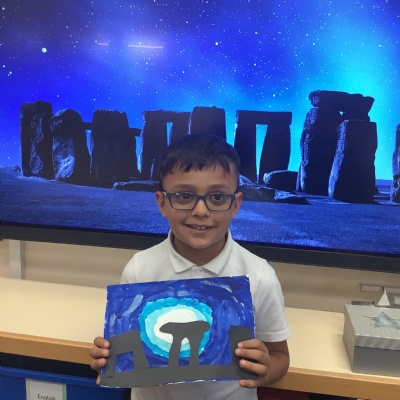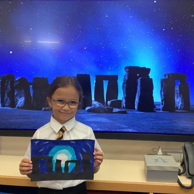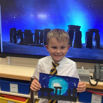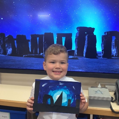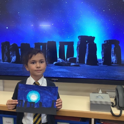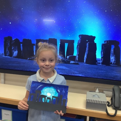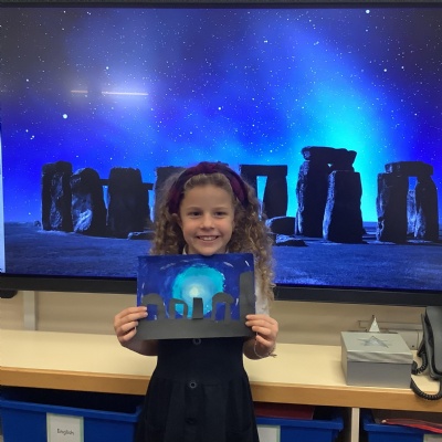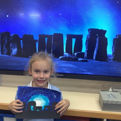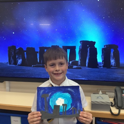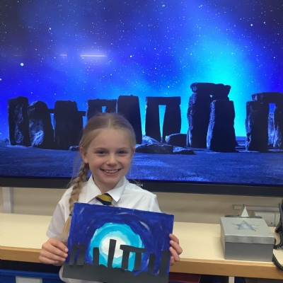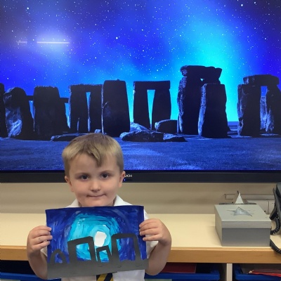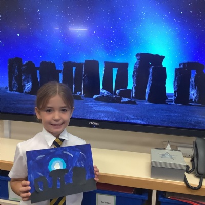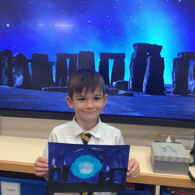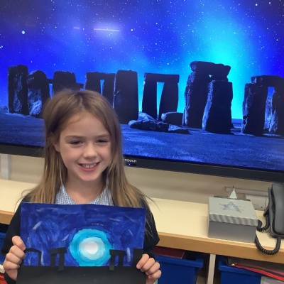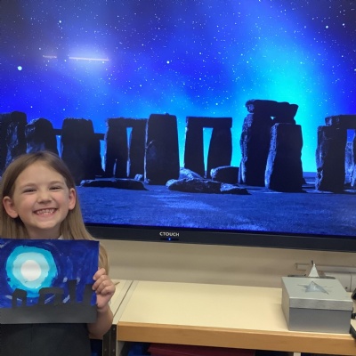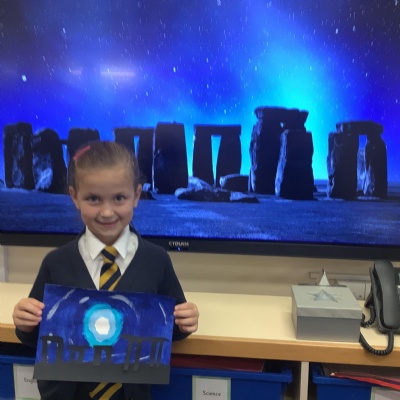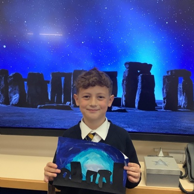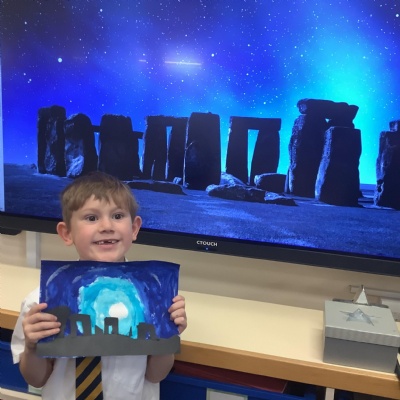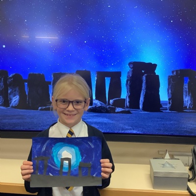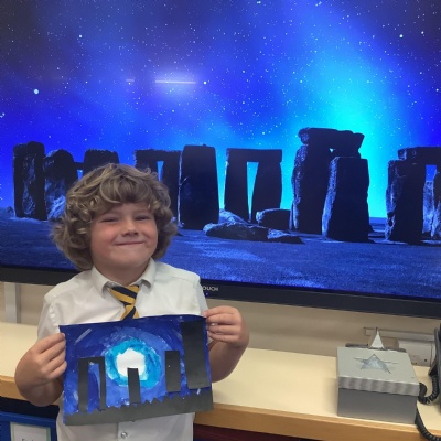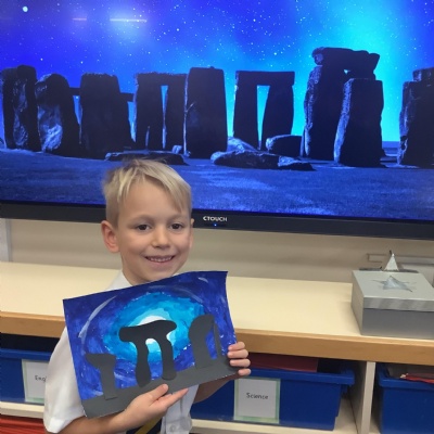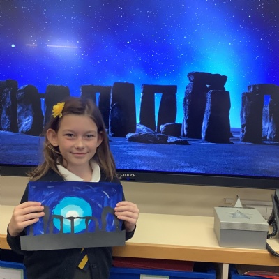 Our history topic this term is the Stone Age and this week is Art Week. We have spent this afternoon completing some Stonehenge art work!