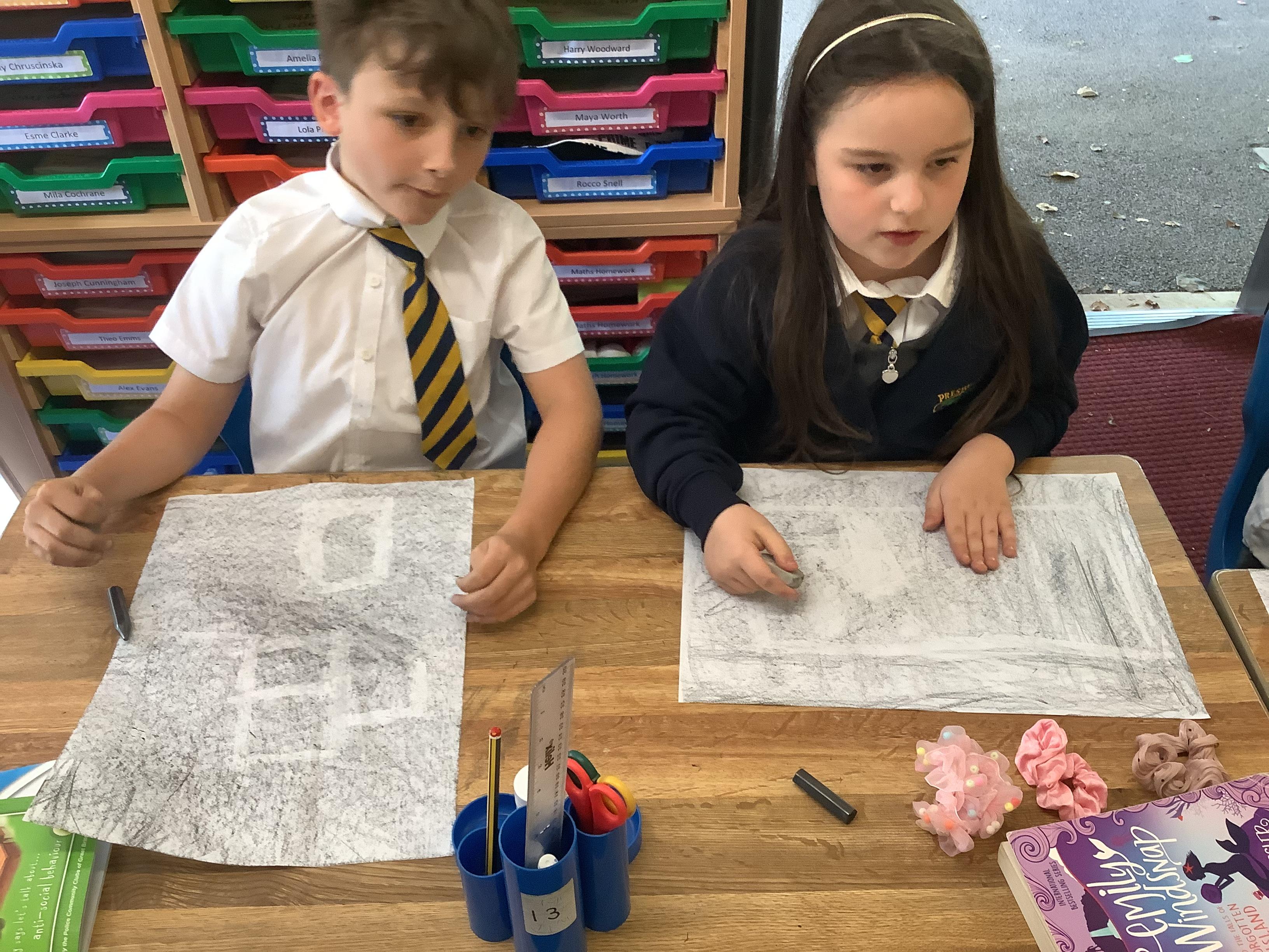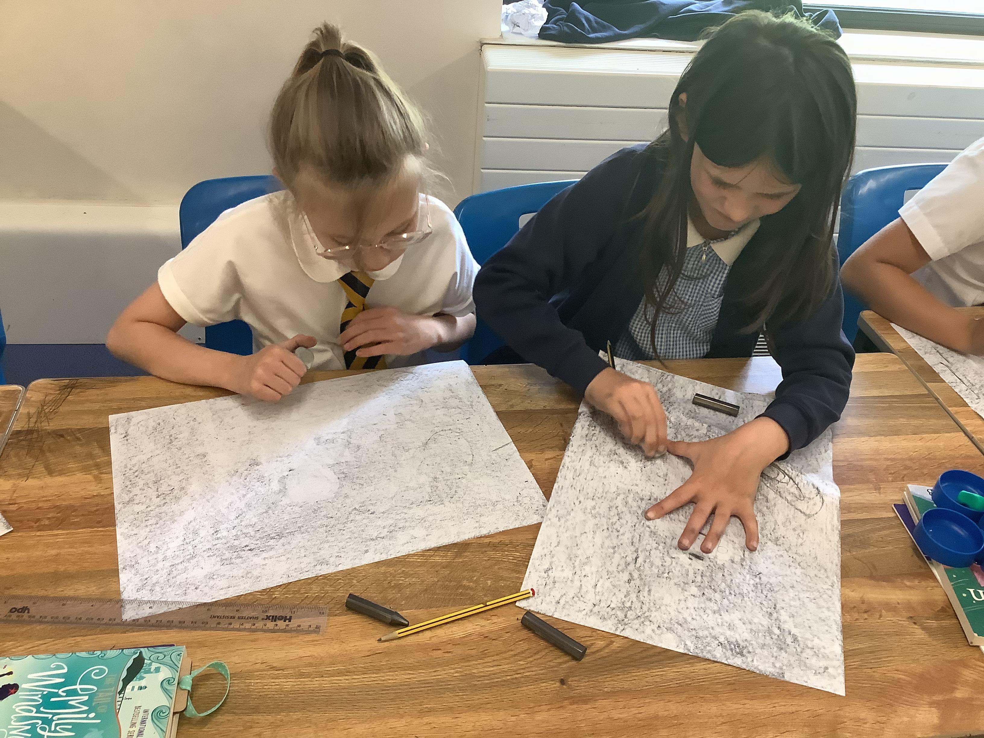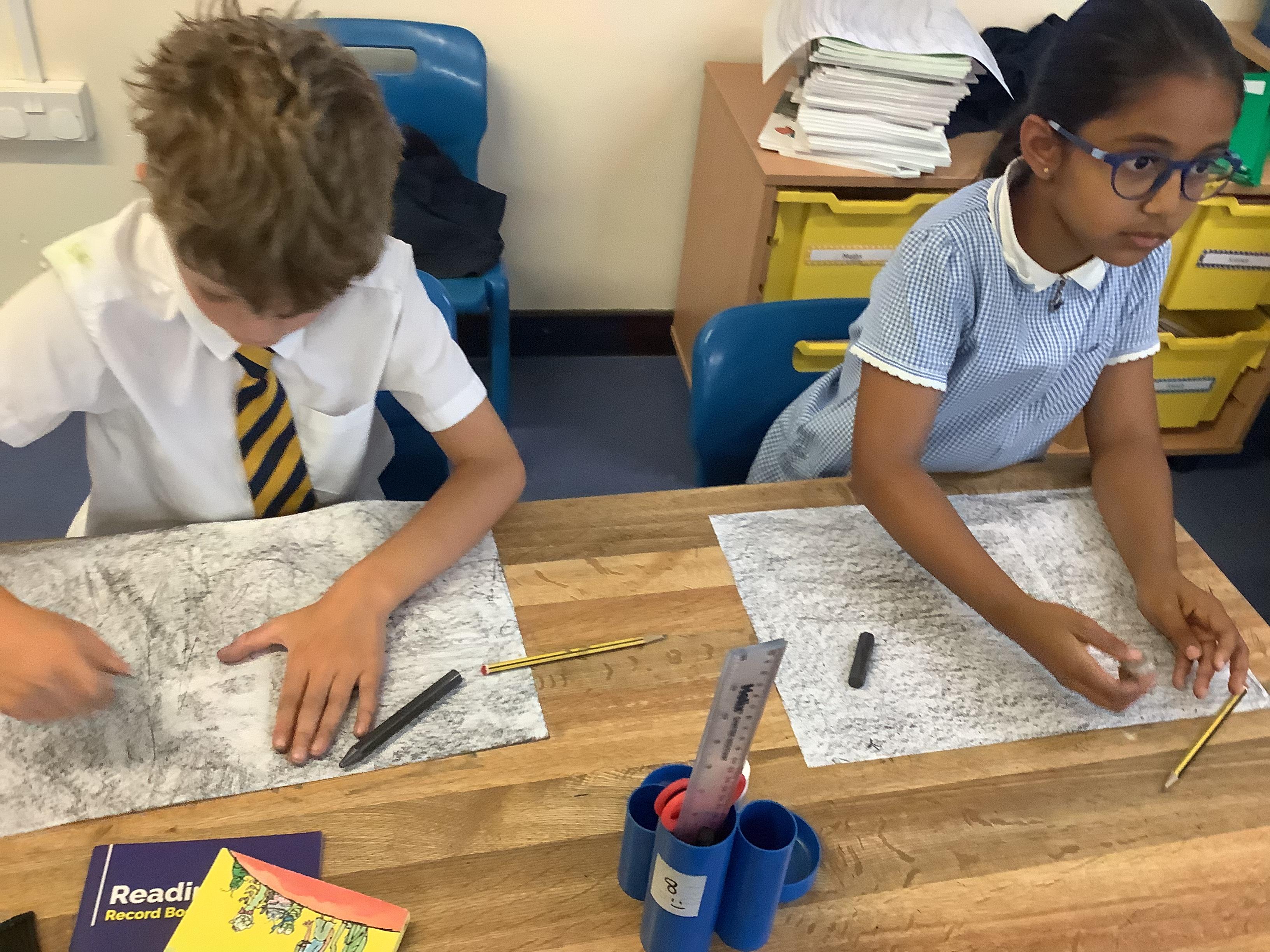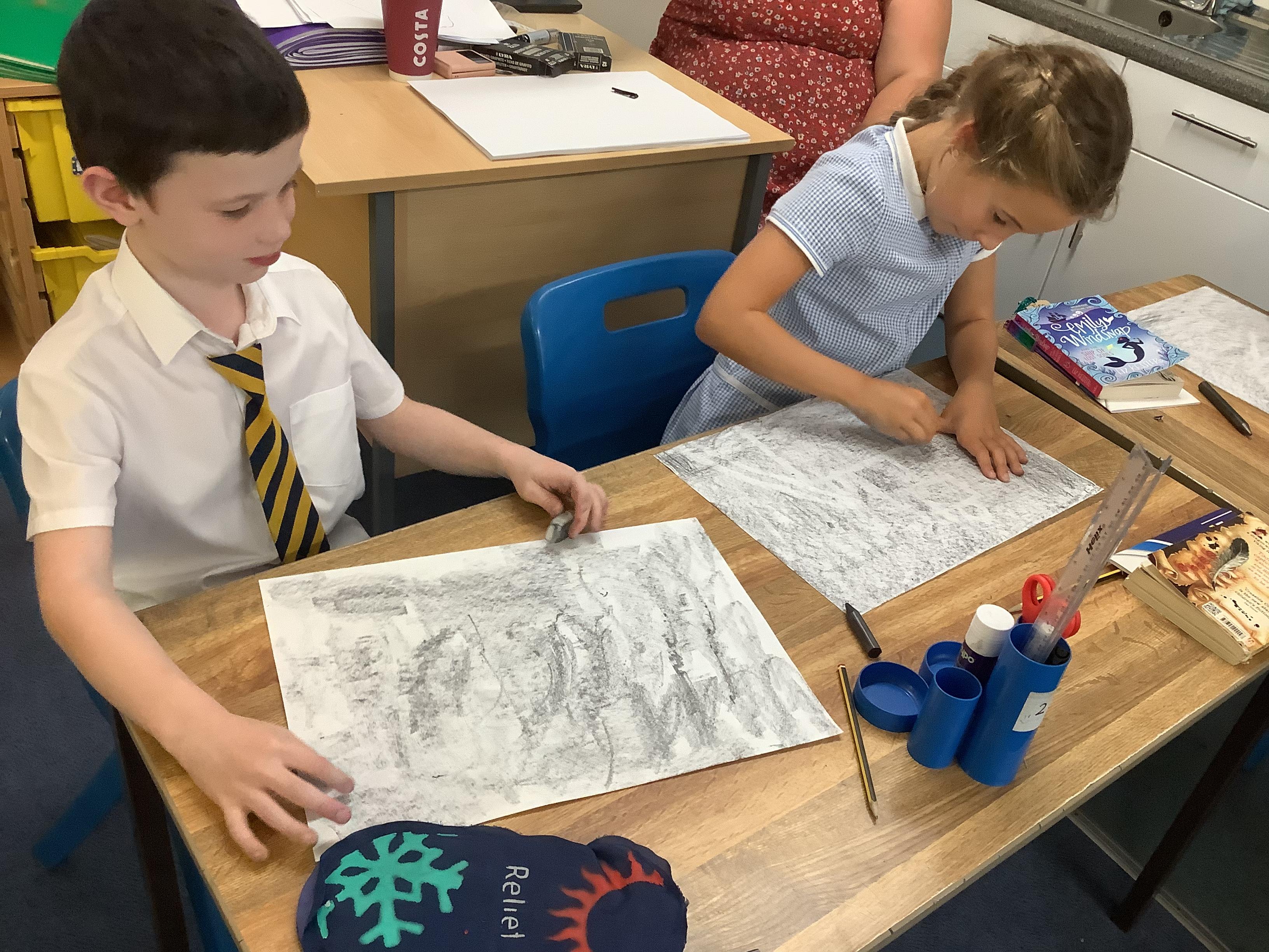 This week, the children were using graphite to create pictures and then using rubber, they removed the graphite to create an image.
