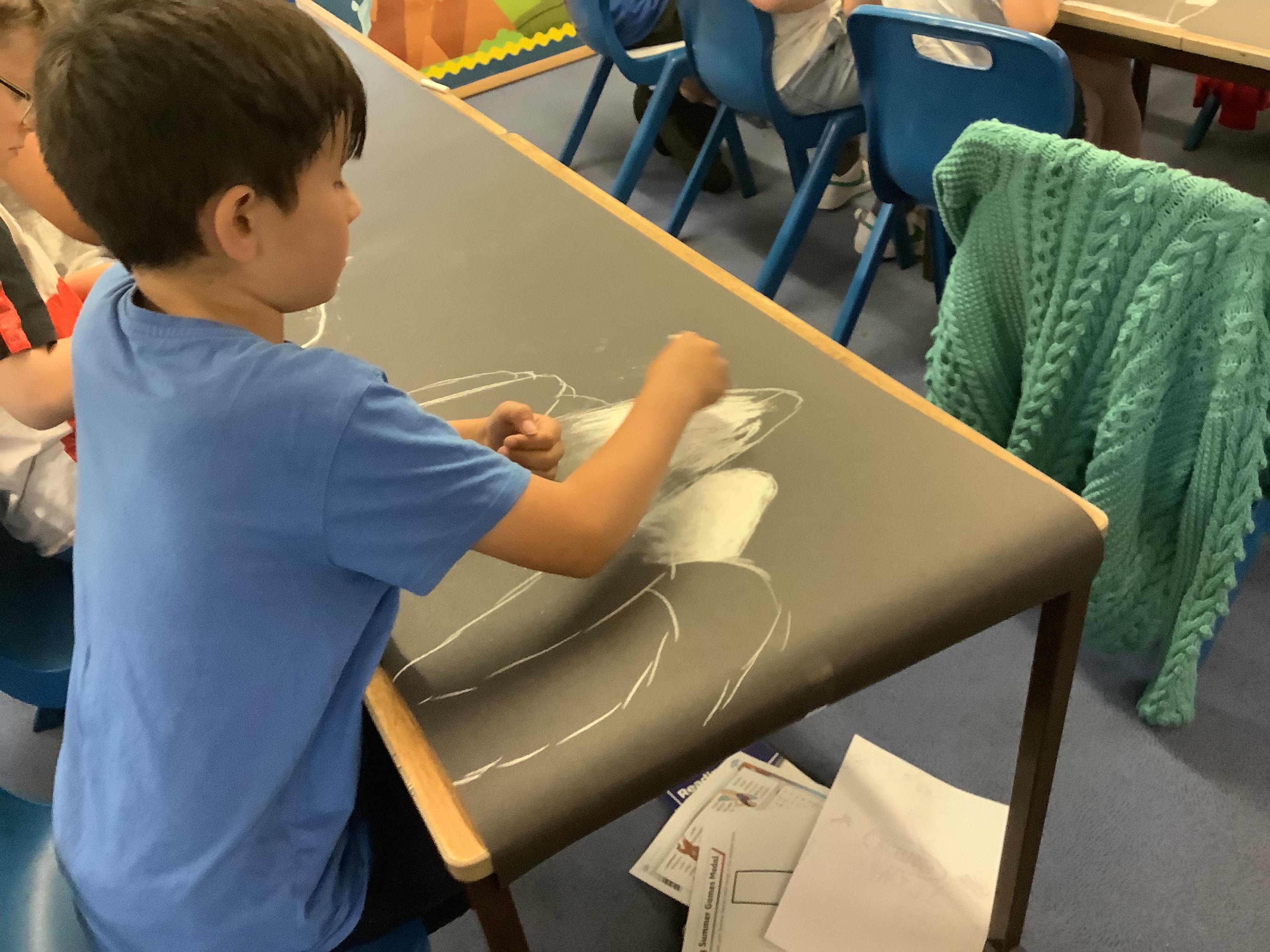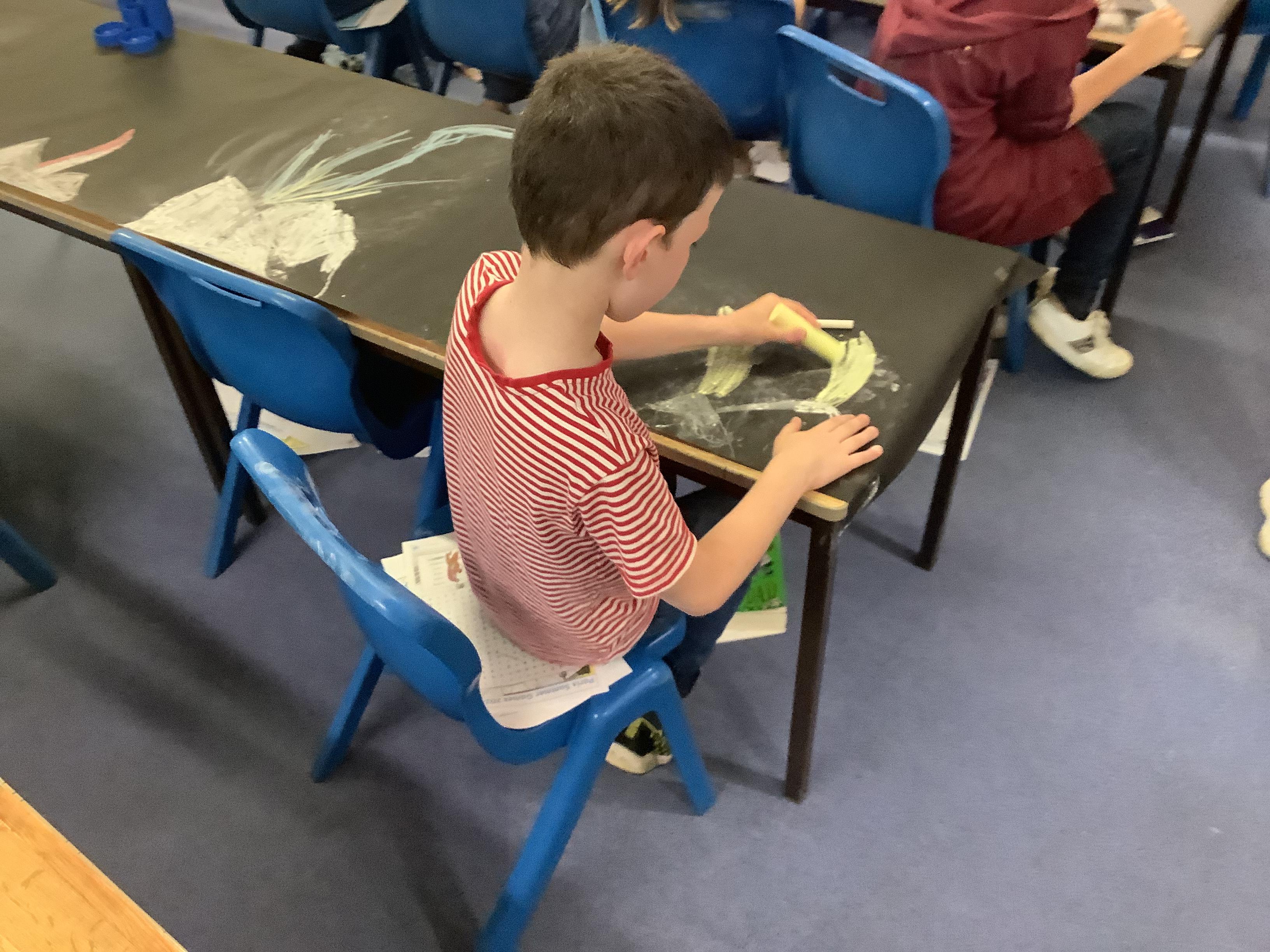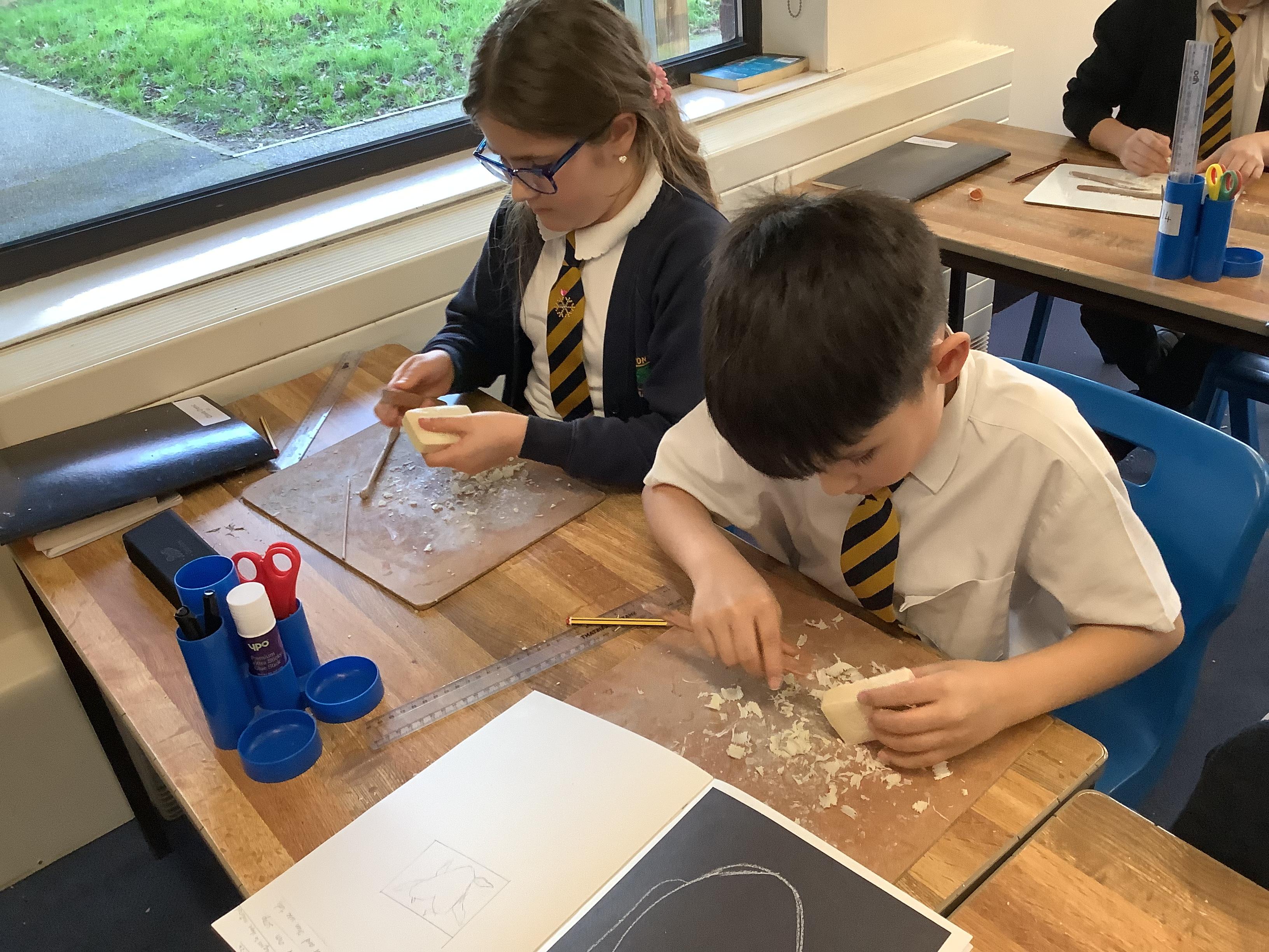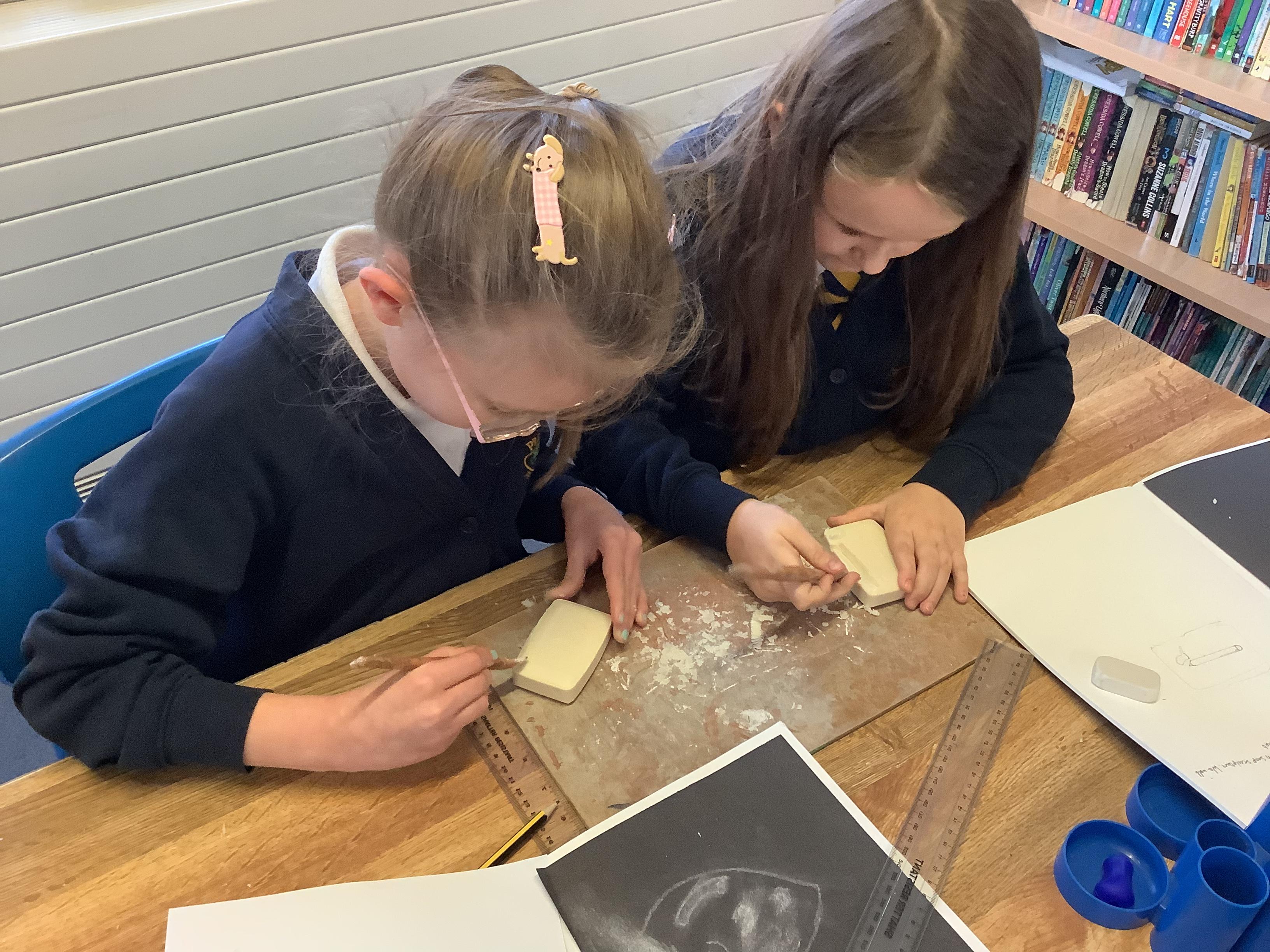 This week, the children were using graphite to create pictures and then using rubber, they removed the graphite to create an image.