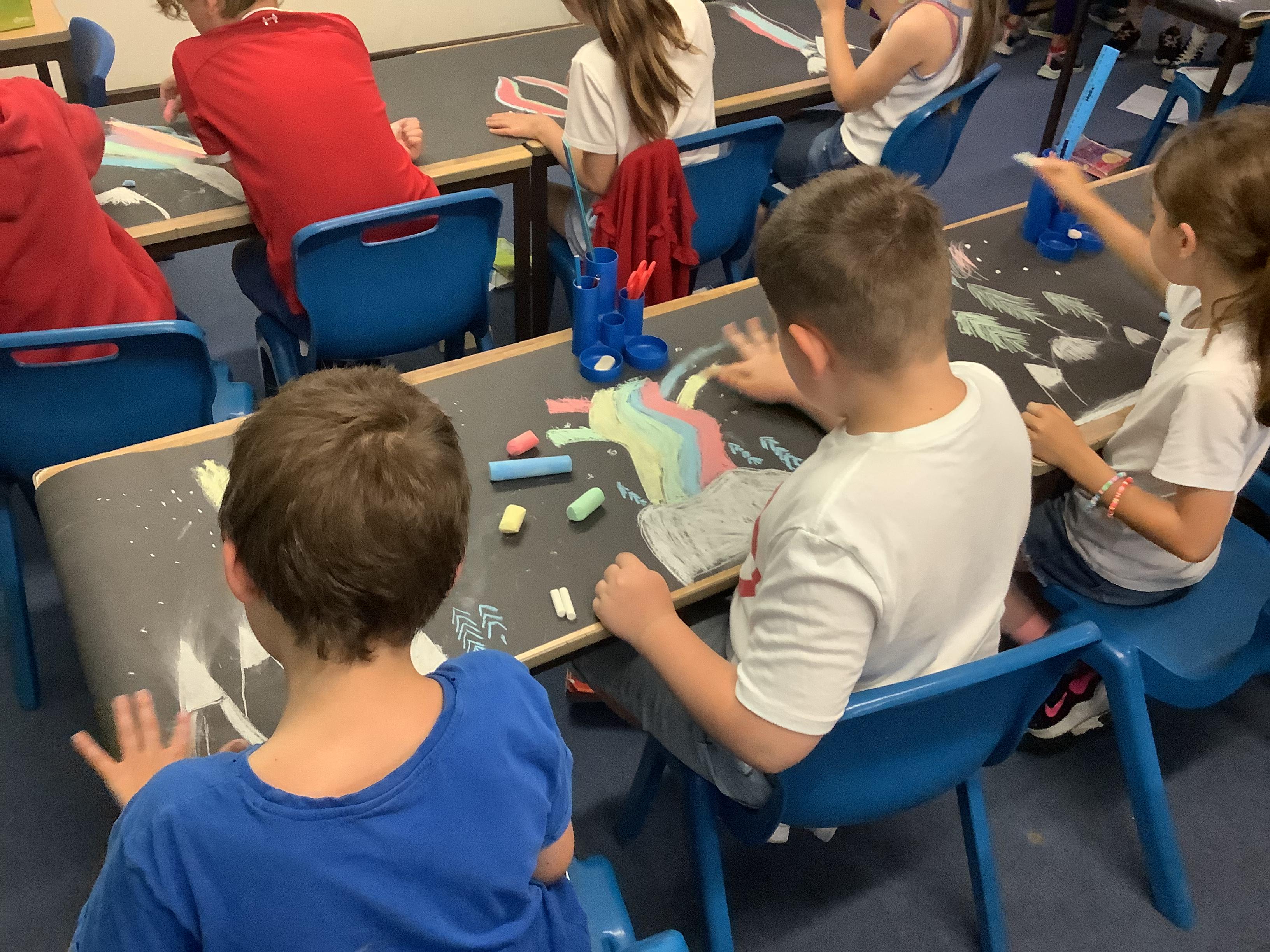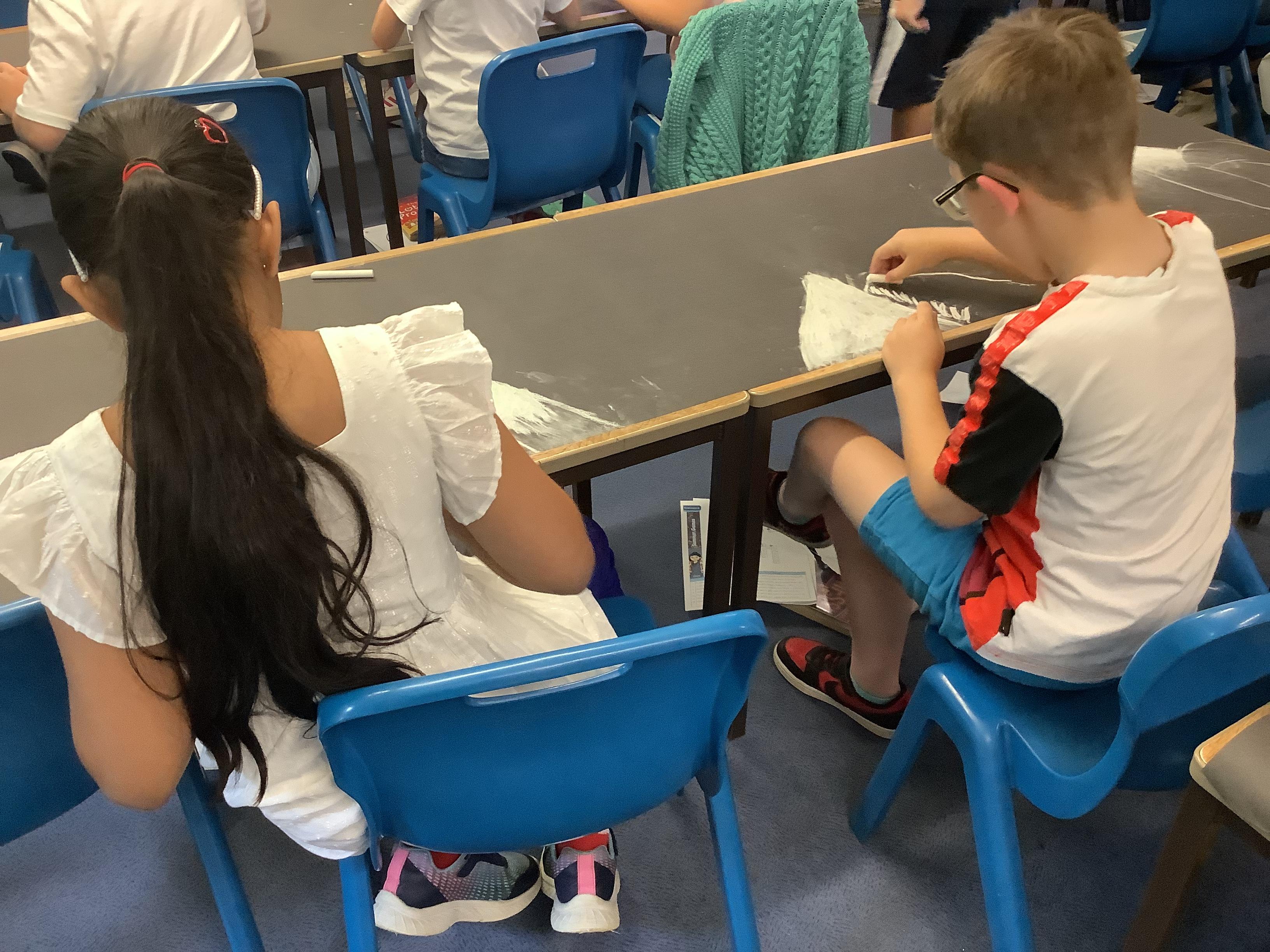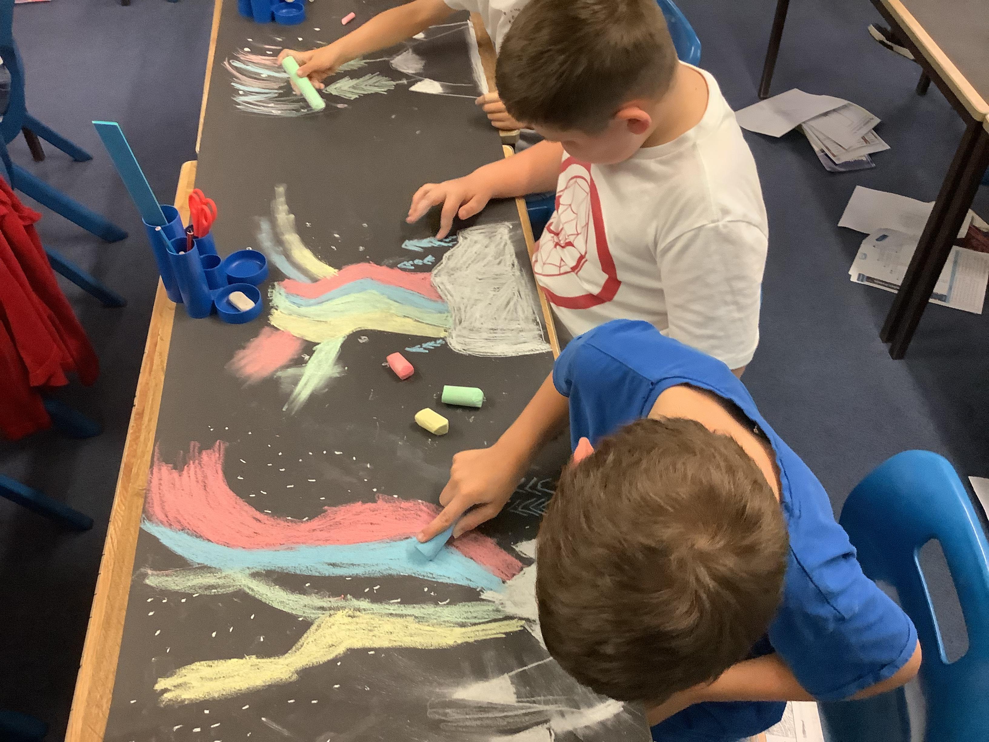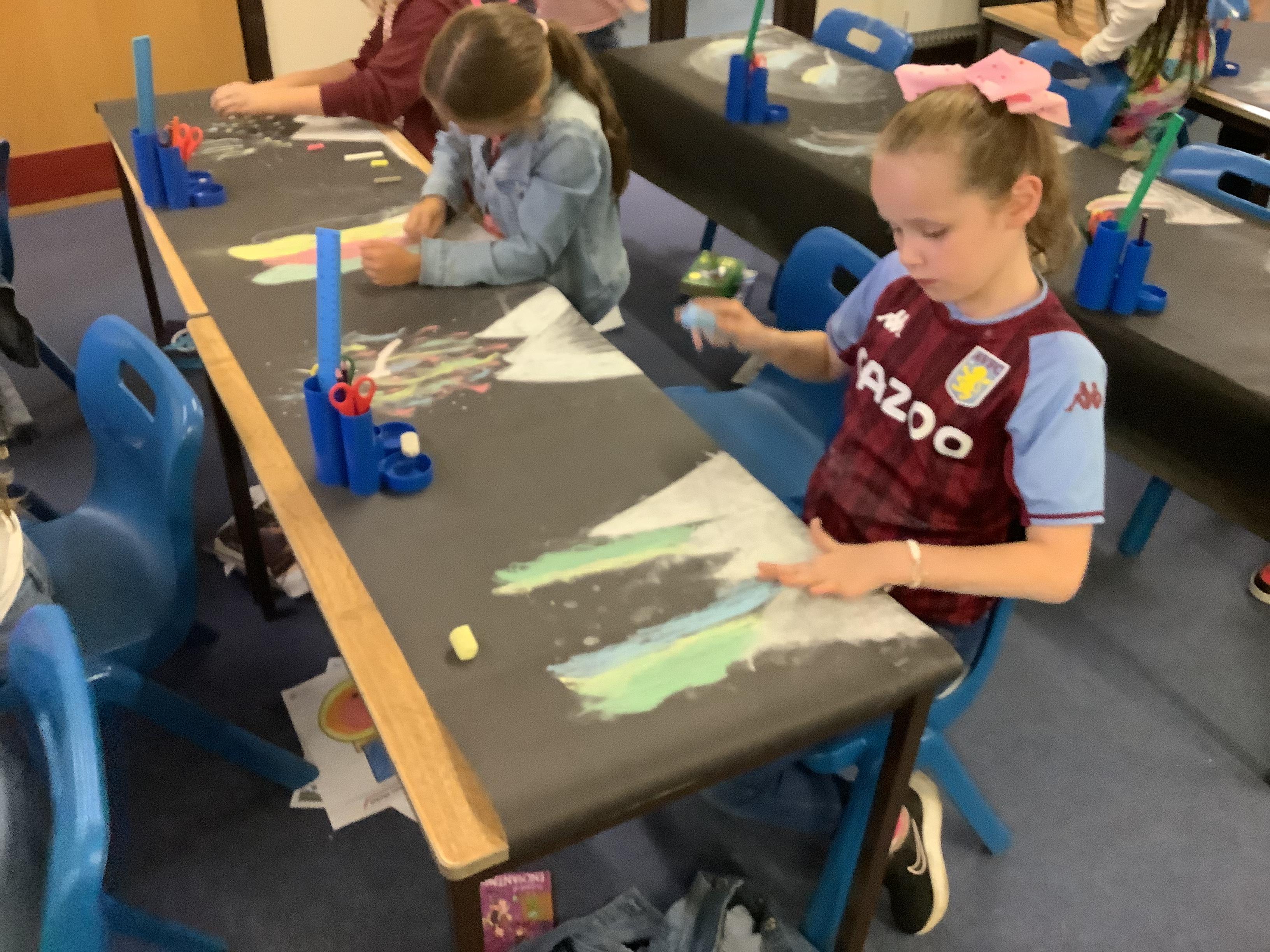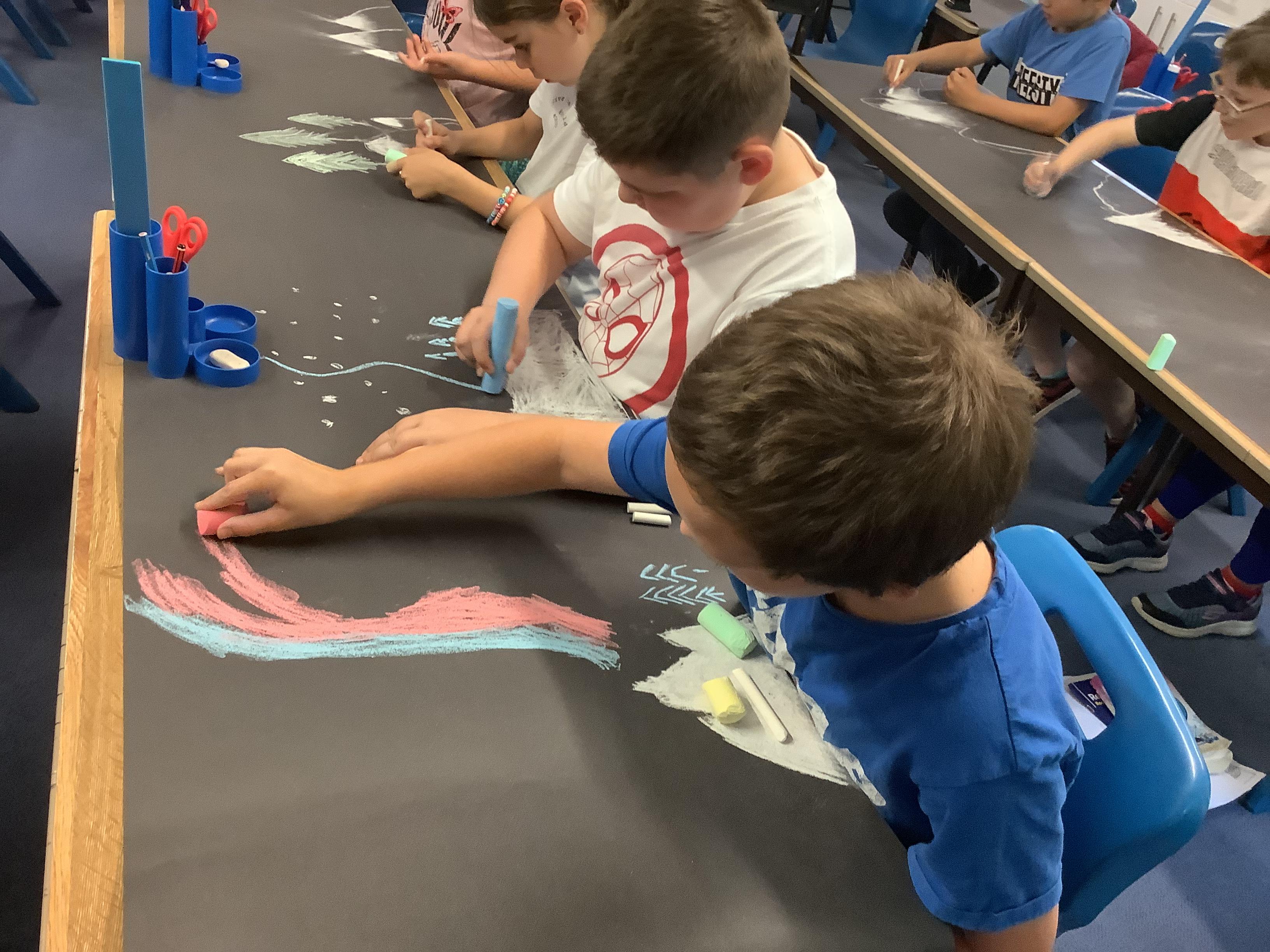 This week, the children were using graphite to create pictures and then using rubber, they removed the graphite to create an image.