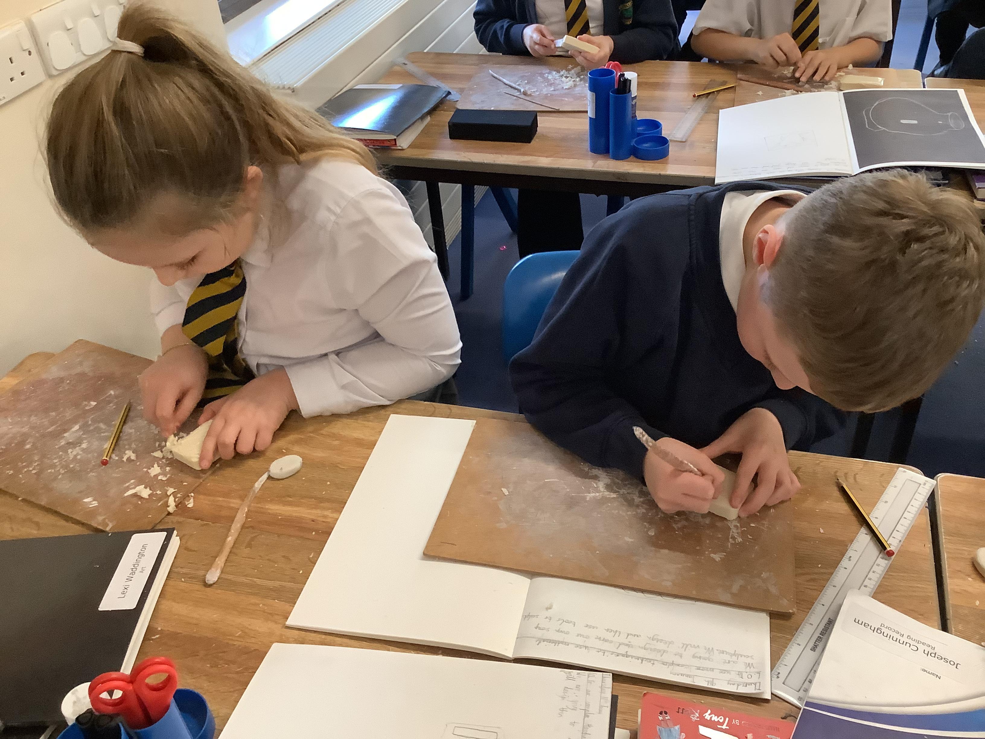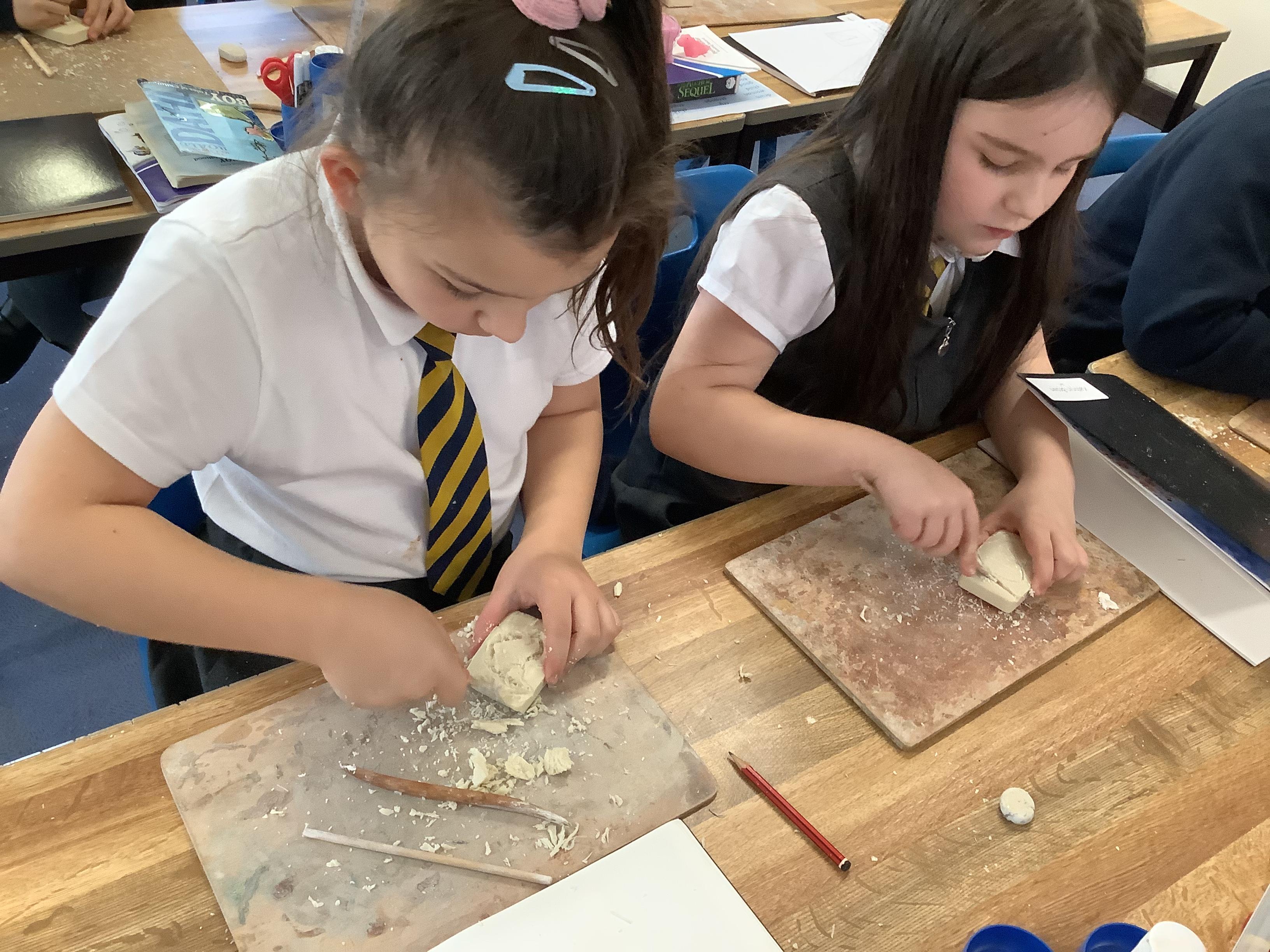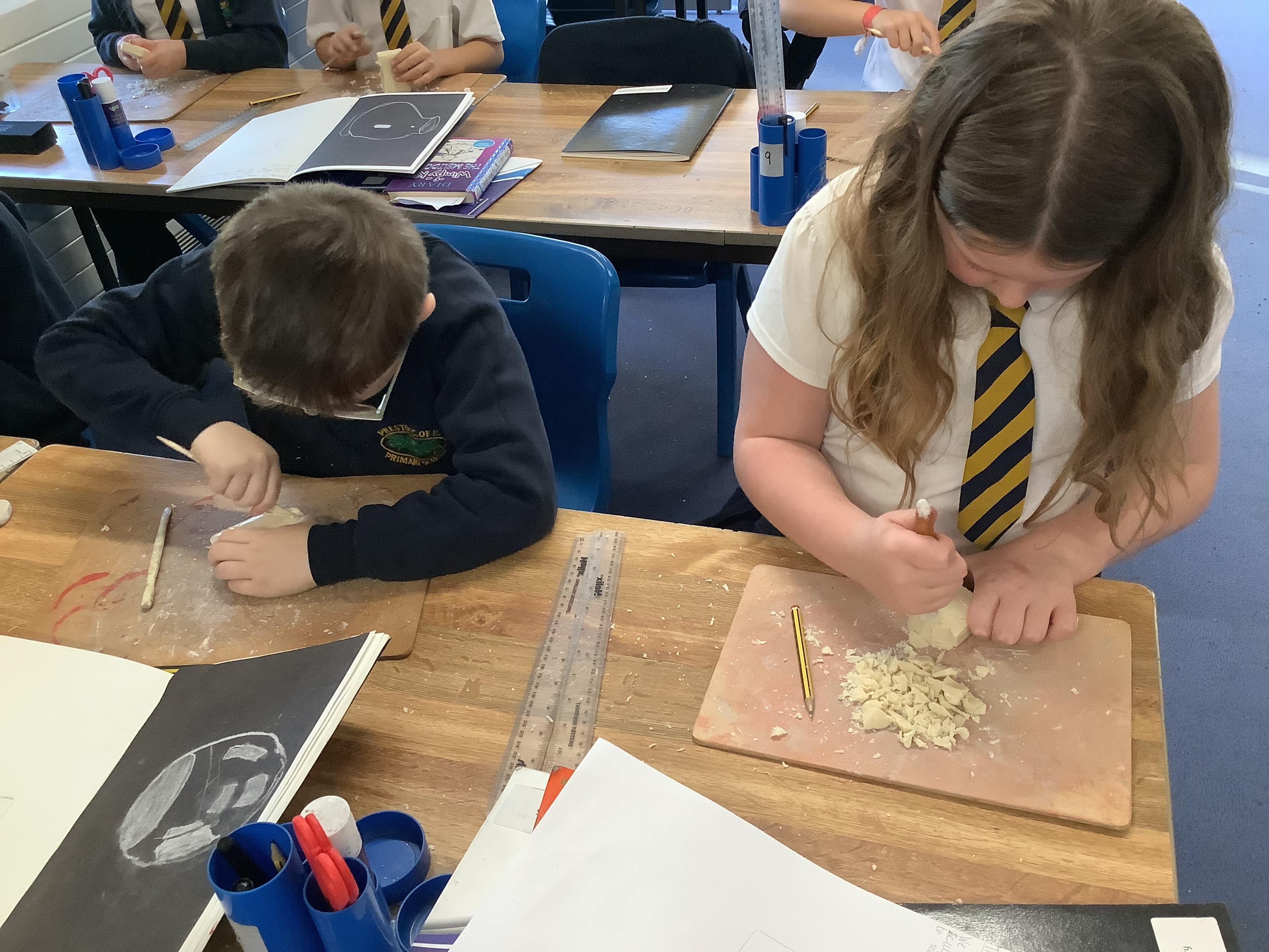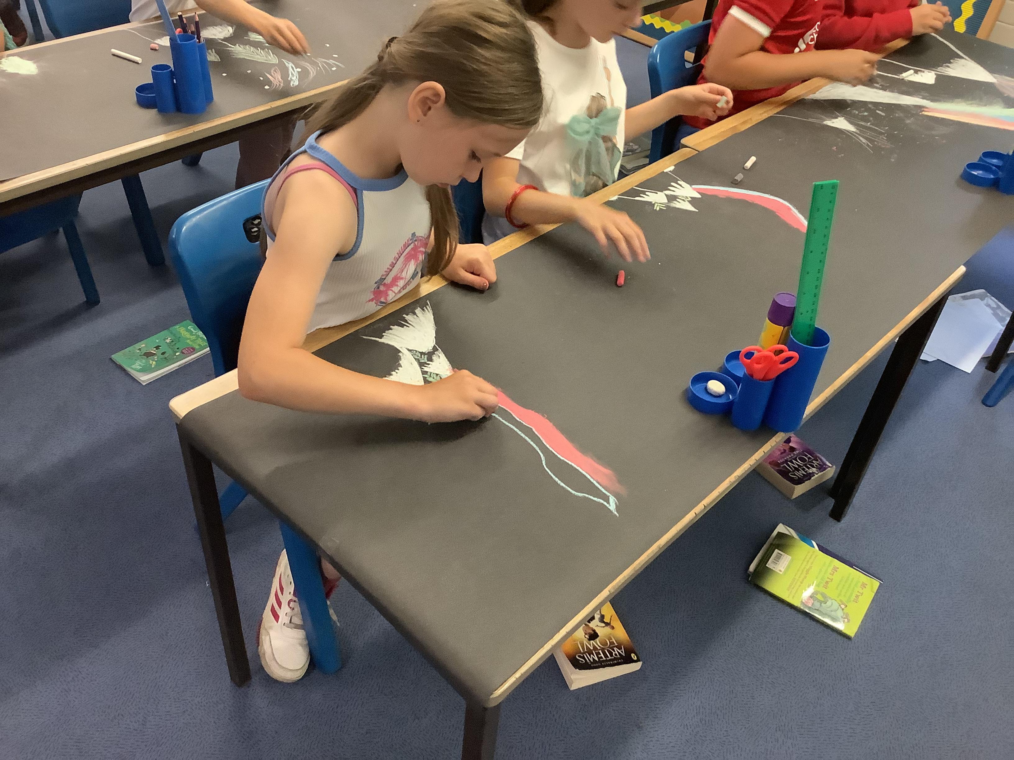 This week, the children were using graphite to create pictures and then using rubber, they removed the graphite to create an image.