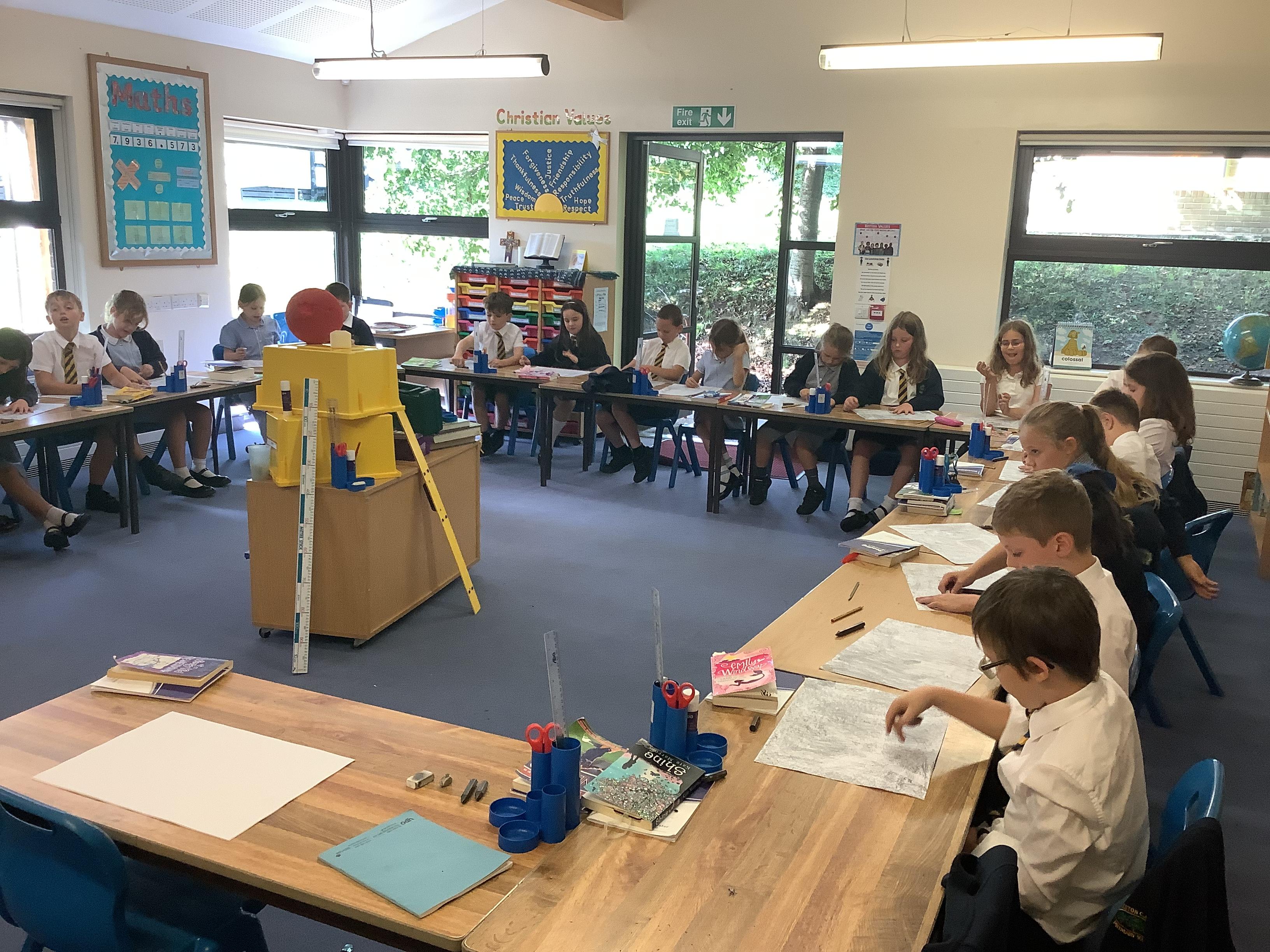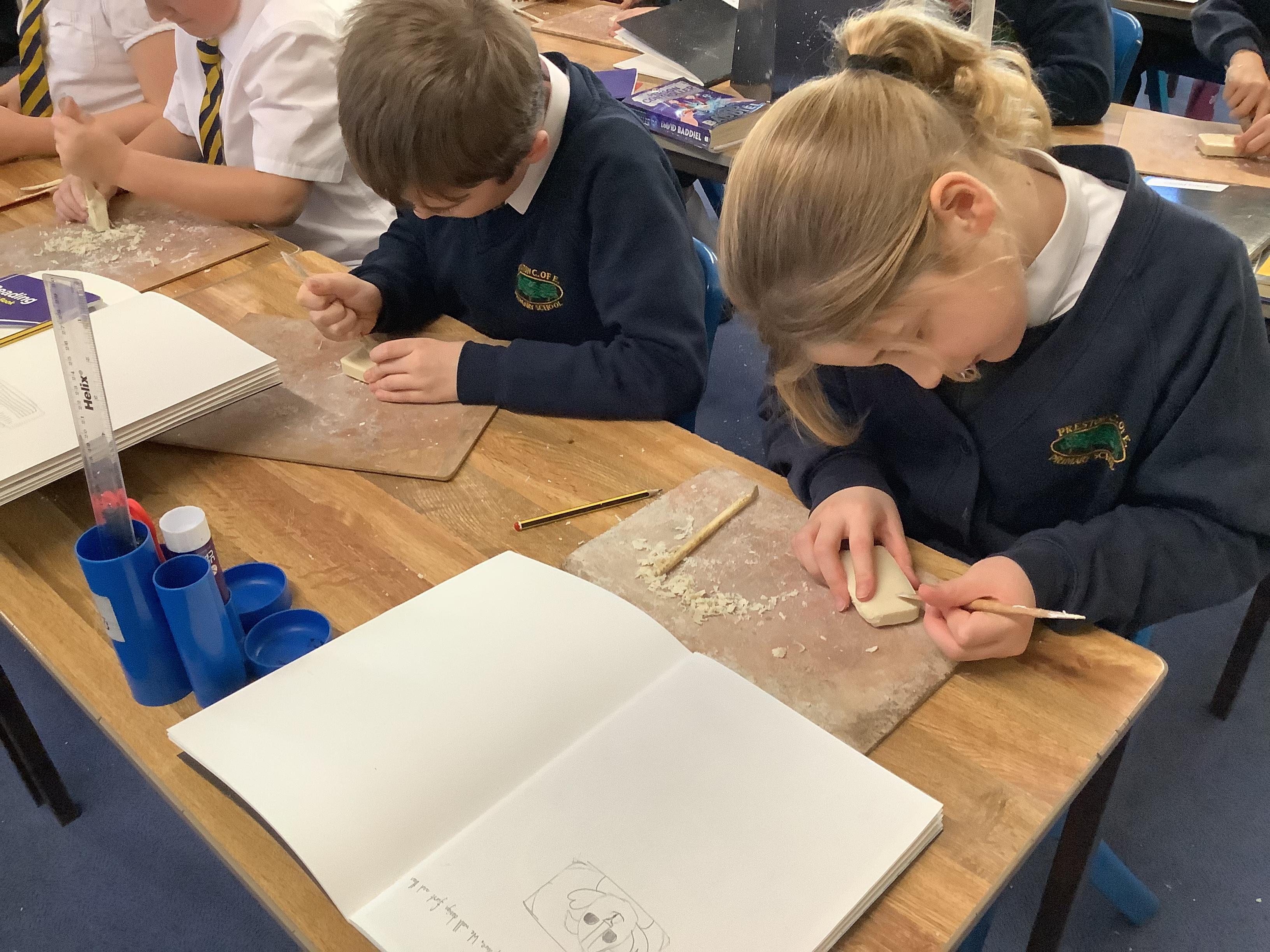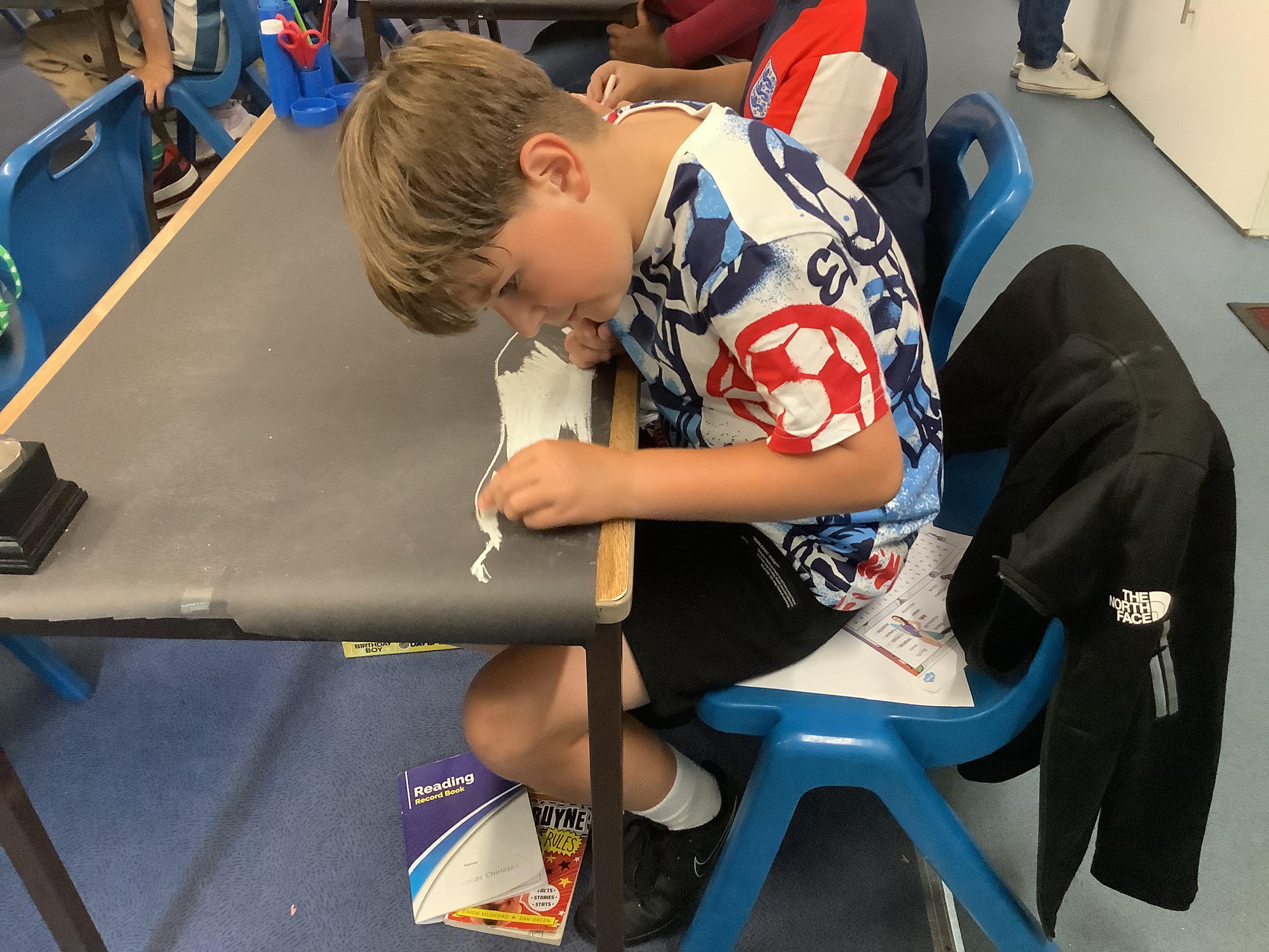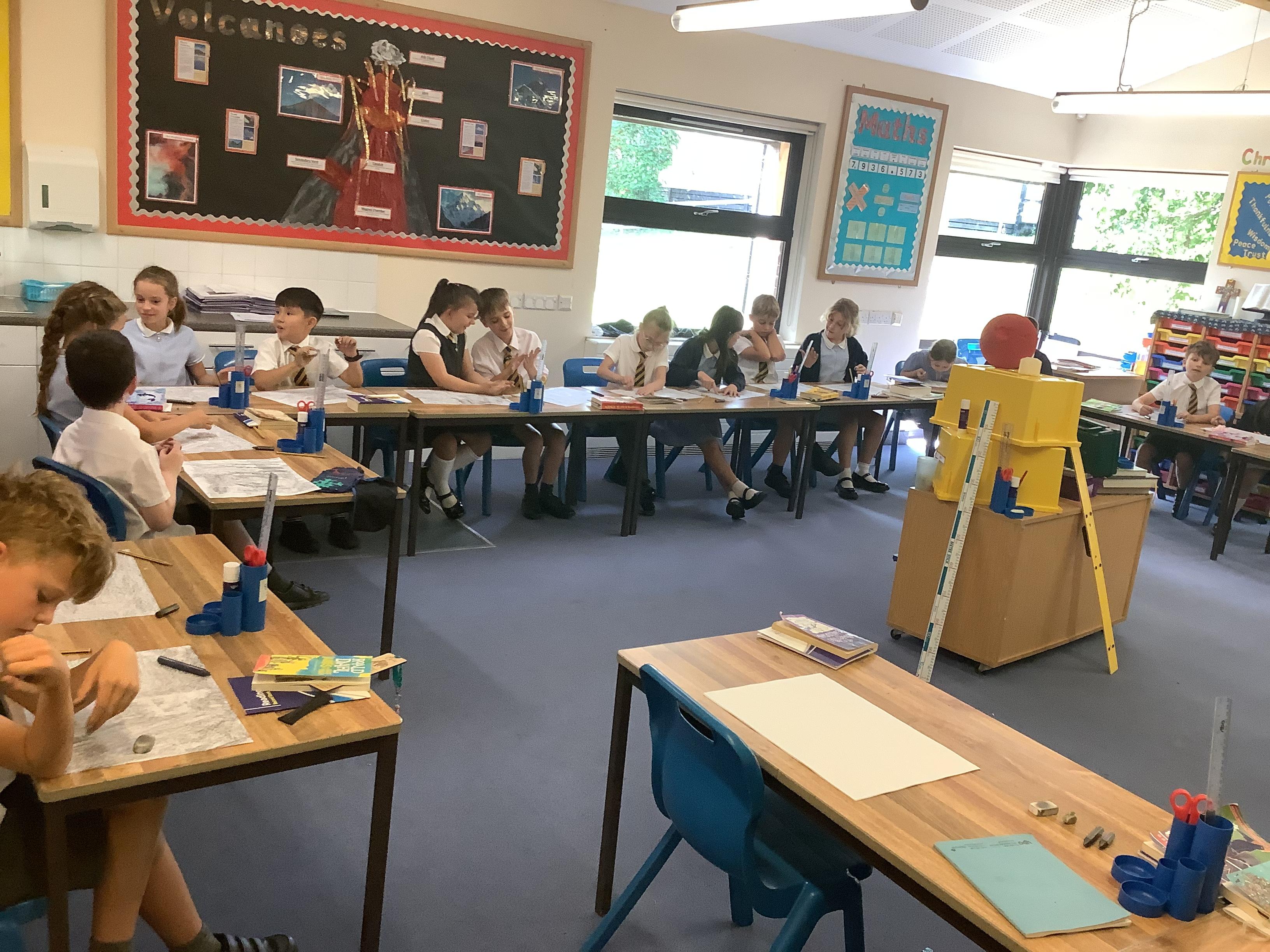 This week, the children were using graphite to create pictures and then using rubber, they removed the graphite to create an image.