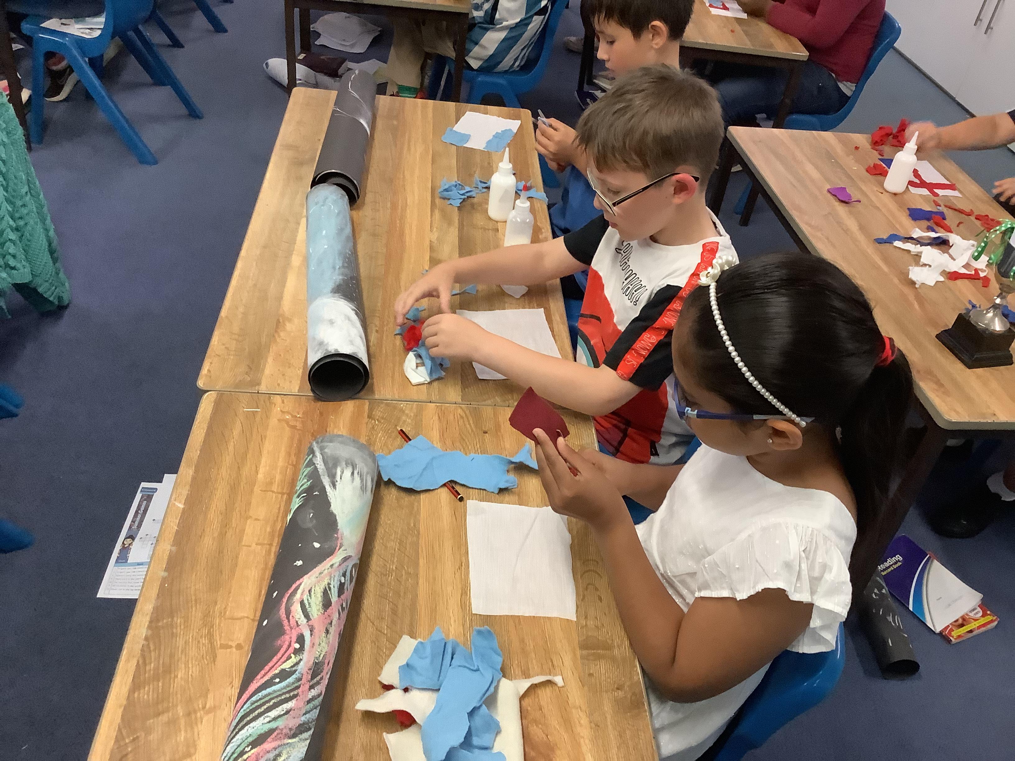 Today we celebrated Geography day and had a fun-filled day learning all about the Olympics and Iceland (our chosen country). We began the day learning about France and Paris as this is where the Olympics will be held this year. The children took part in some activities including making their own medal designs. After break, we had our last celebration assembly and then we learned all about Iceland with the children then creating their own posters about the country. When we came back from lunch, the children's tables were covered in black paper where they then used chalk to create the Northern Lights. They then finished the day making the Icelandic flag out of material. What a fun packed day we had!