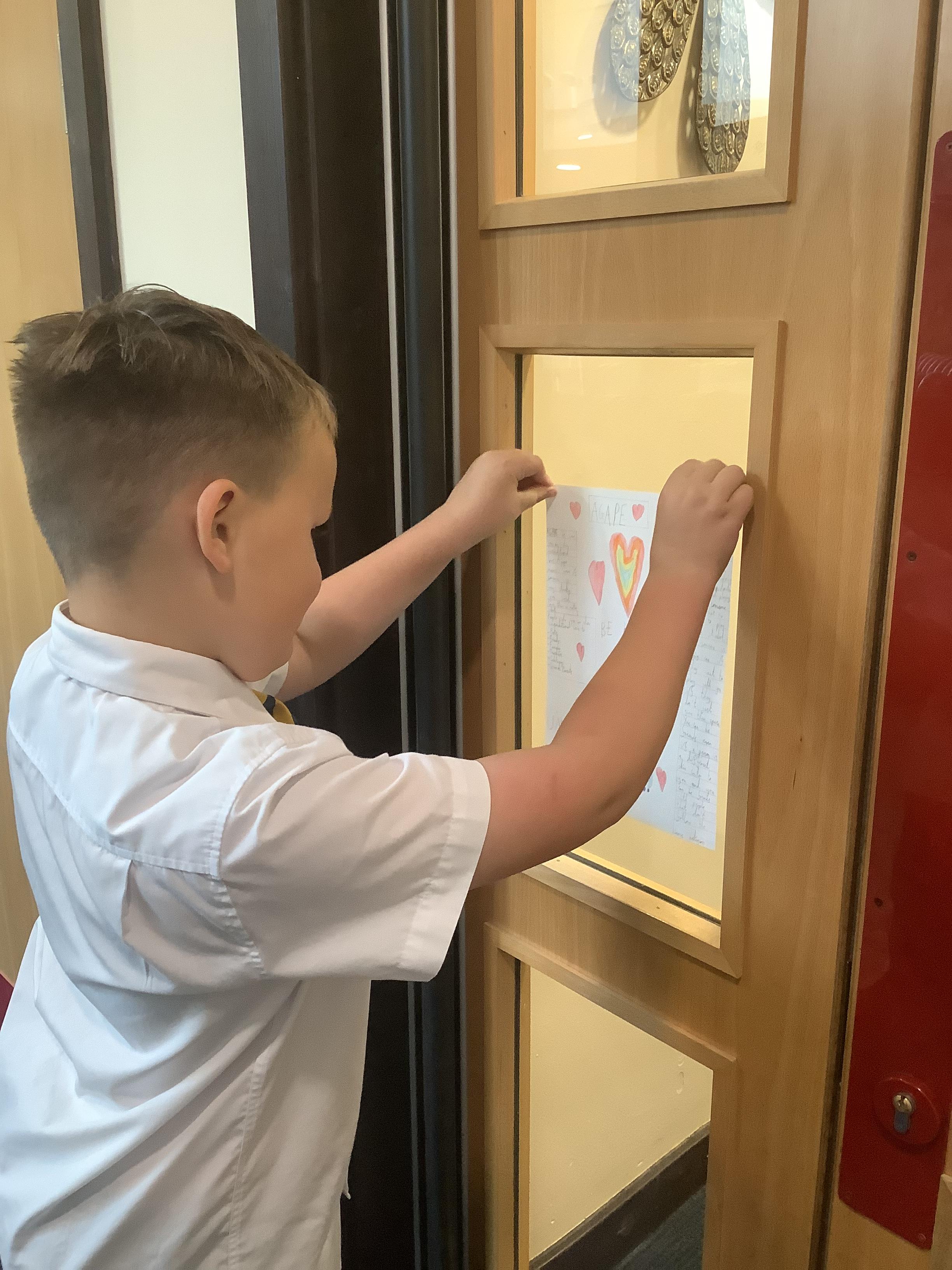 This week, the children have been putting their RE lessons into practice by creating Agape posters to encourage the school to apply unconditional love through each day. They wrote about how we can show agape and how Christians can help out other people.
