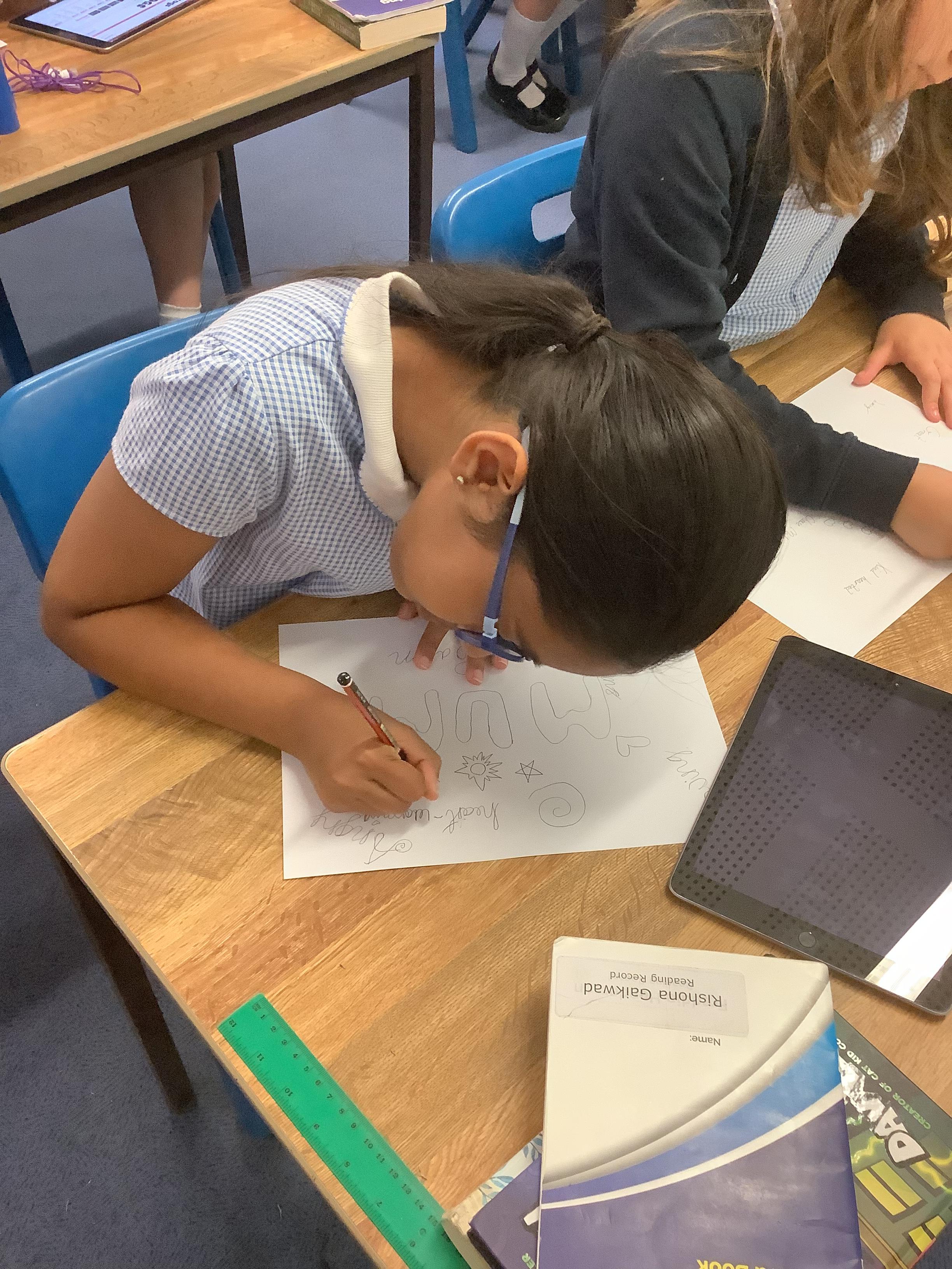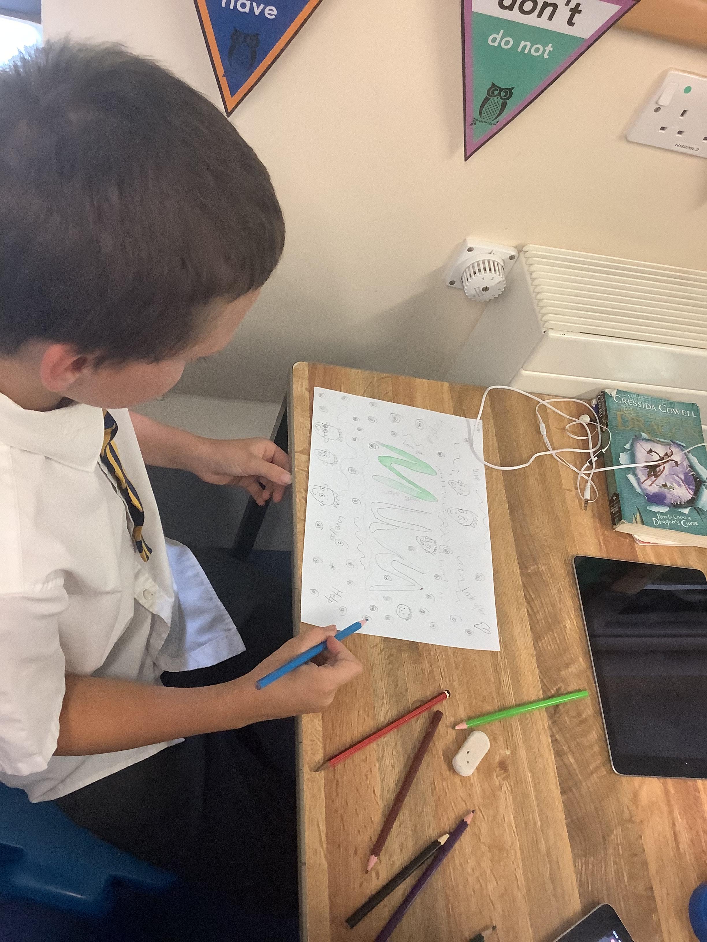 For our week of prayer, the children created prayer doodles. They chose someone that they wanted to pray for and then drew pictures and wrote words around their person.