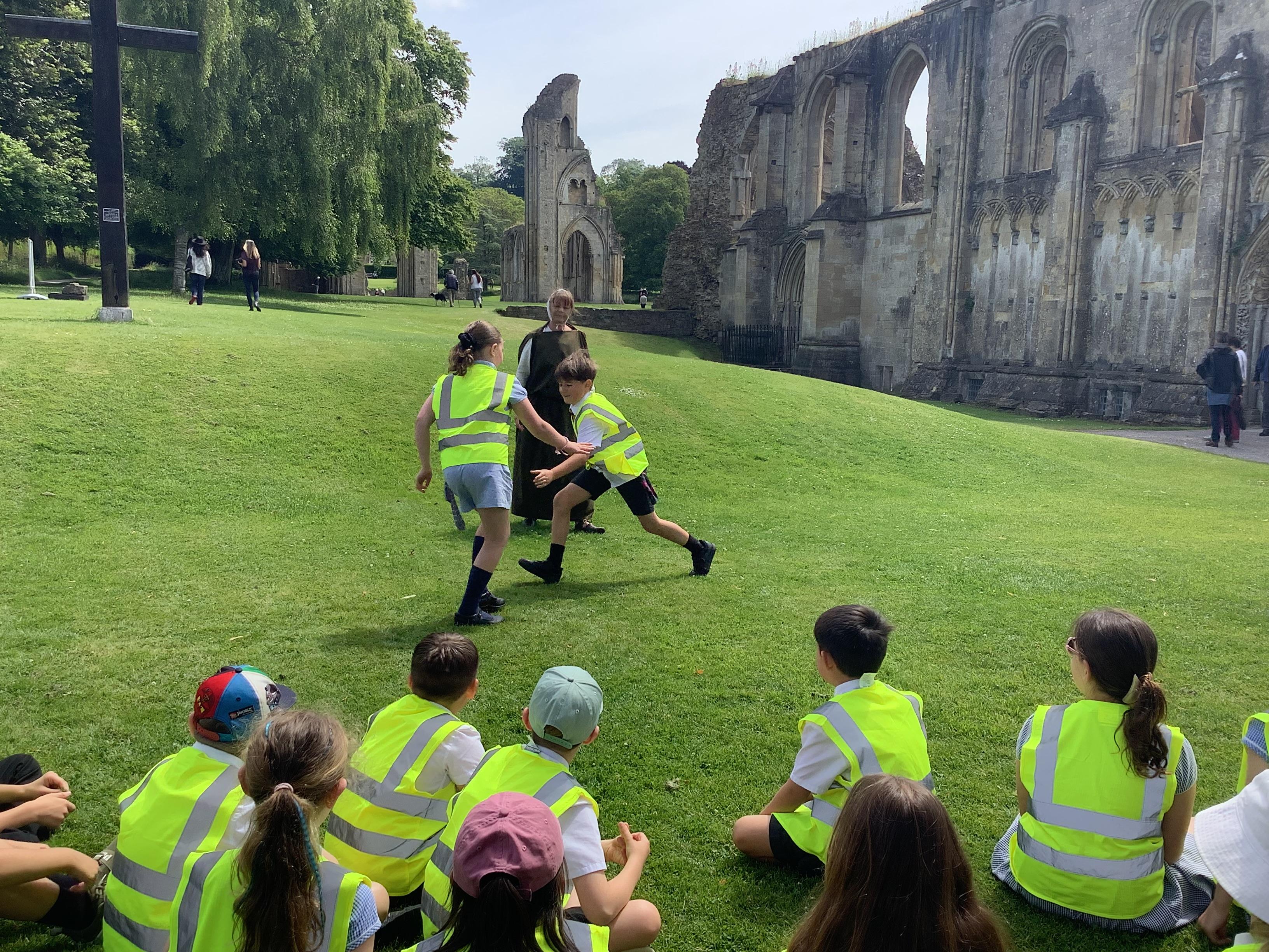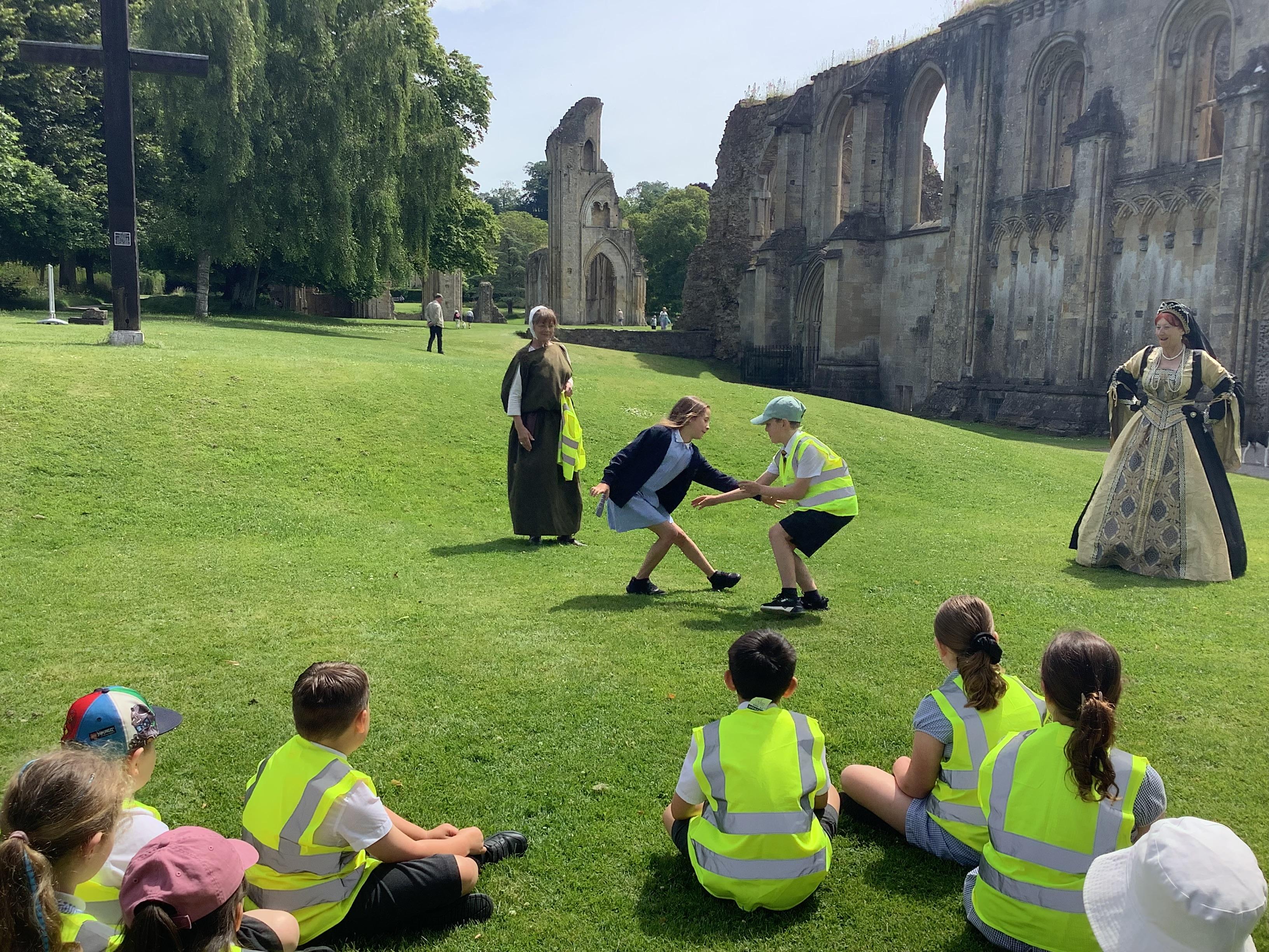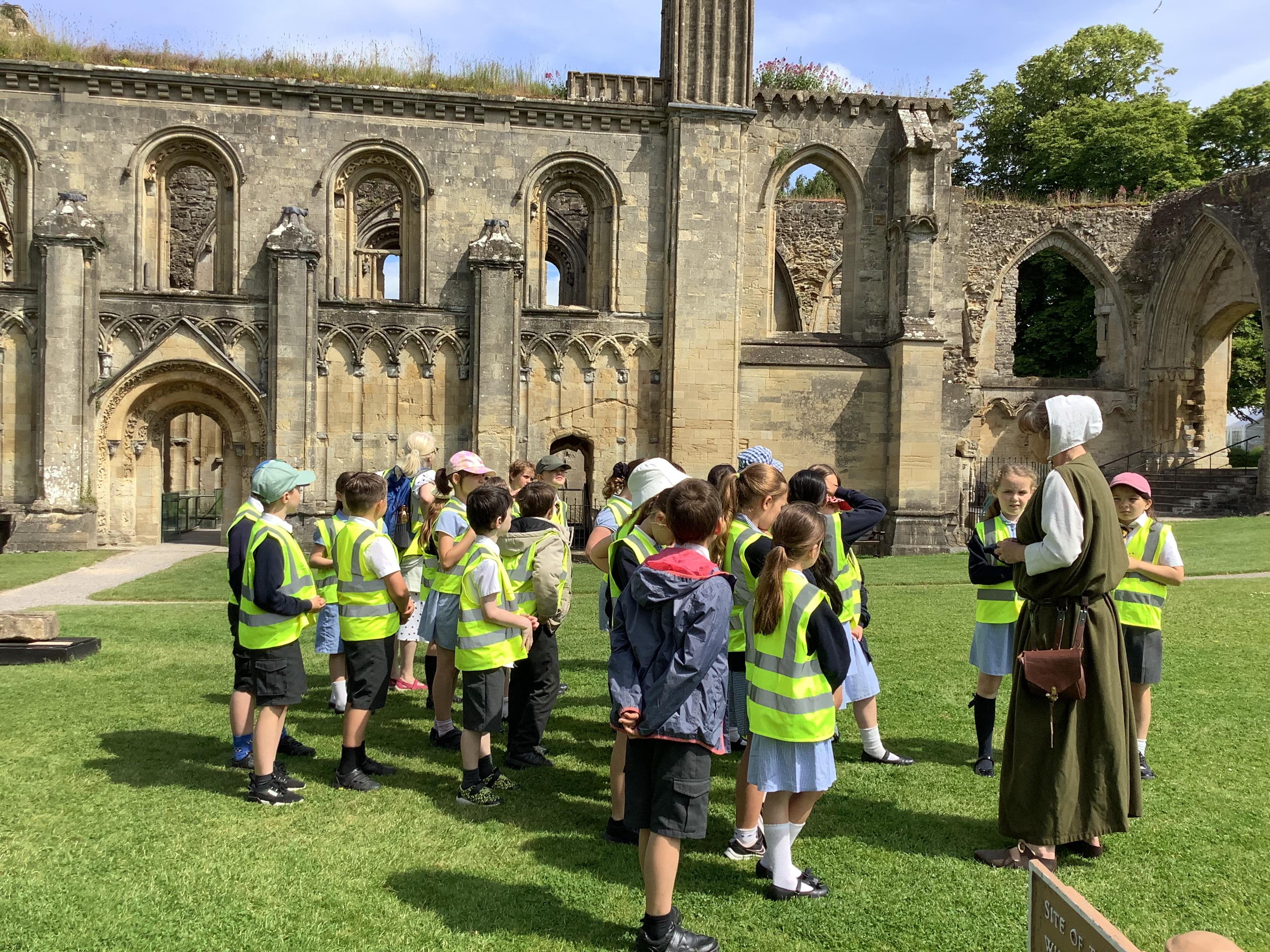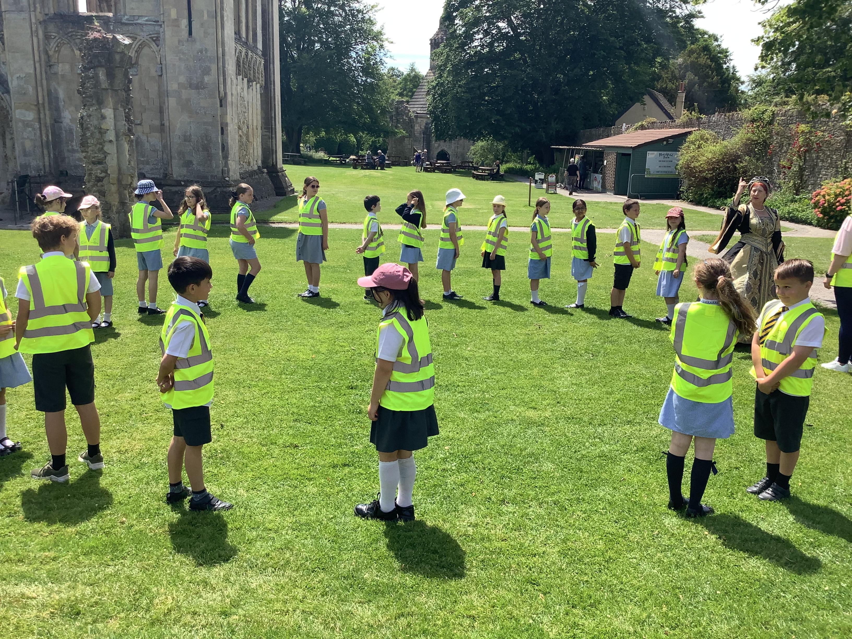 Year 4 went on an exciting trip to Glastonbury Abbey on Wednesday. The weather was lovely, making it a perfect day for exploring. We started with a tour around the ruins, where we relived the history and learned about what happened at the abbey long ago. The ancient stones and arches were fascinating, and we imagined what life must have been like during the time of the monks. After our tour, we visited the museum, where we got a chance to play Tudor games. We also learned some Tudor dancing. We all laughed and enjoyed trying to keep up with the steps and music. To top off the day, we made our own Tudor toothpaste. All the ingredients were sourced from the abbey grounds, just as they would have been in Tudor times.