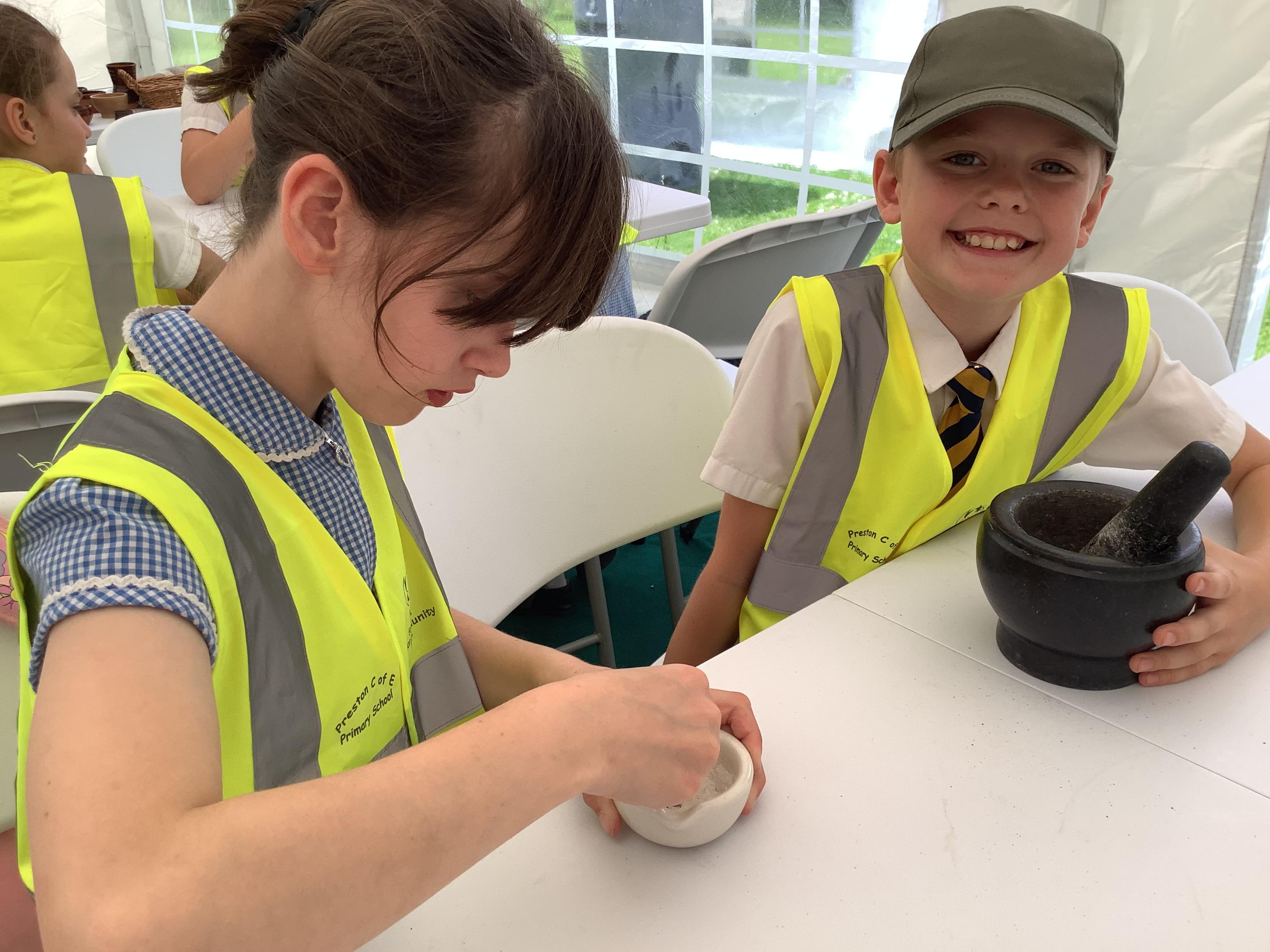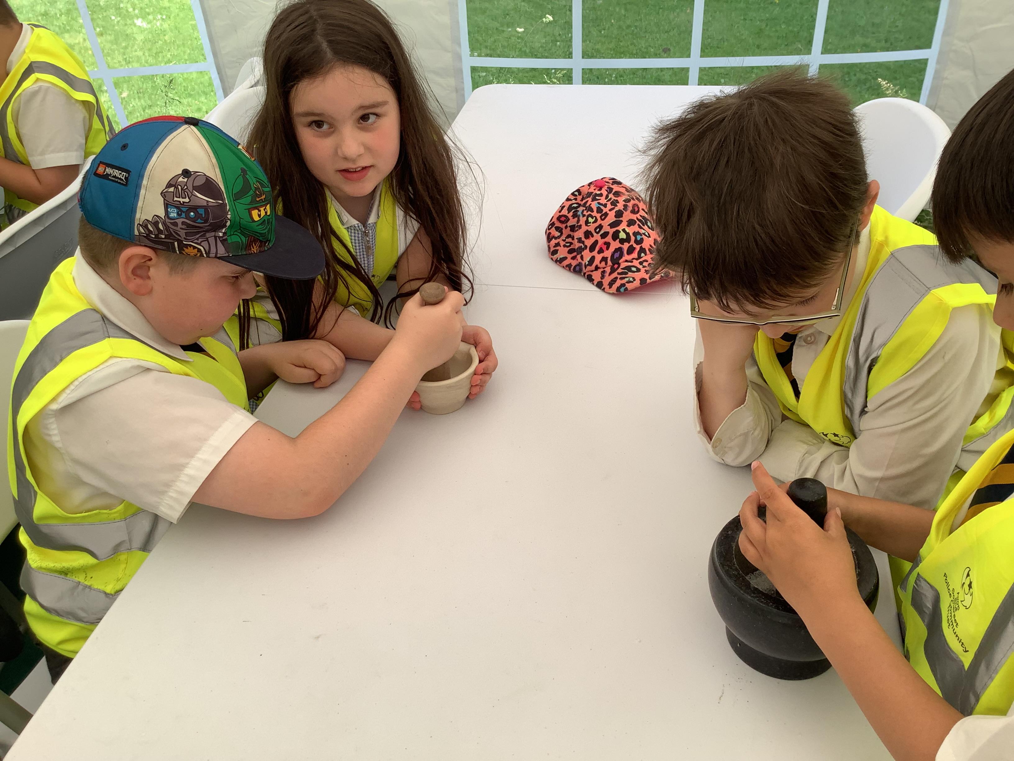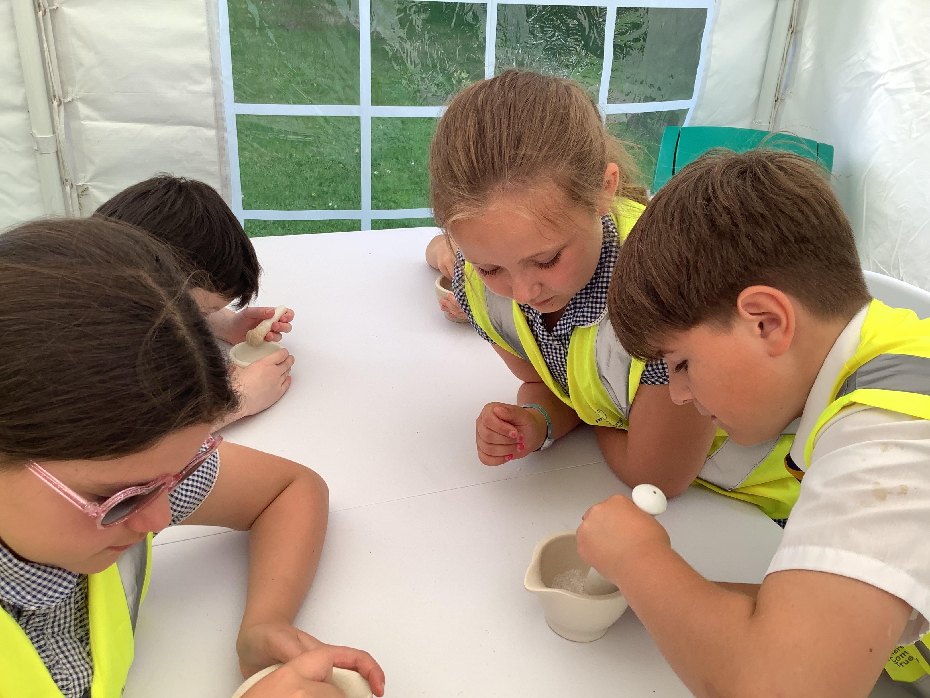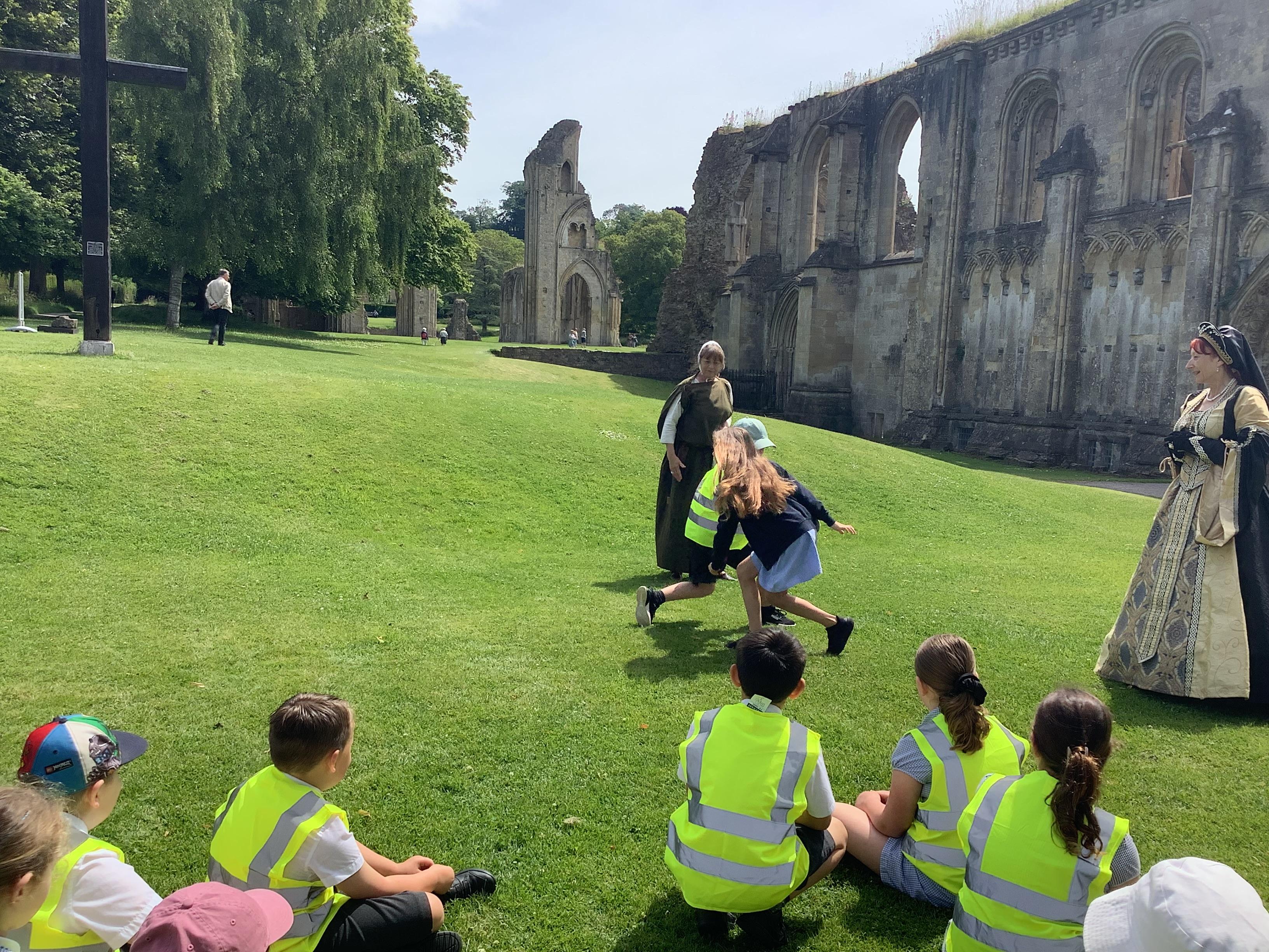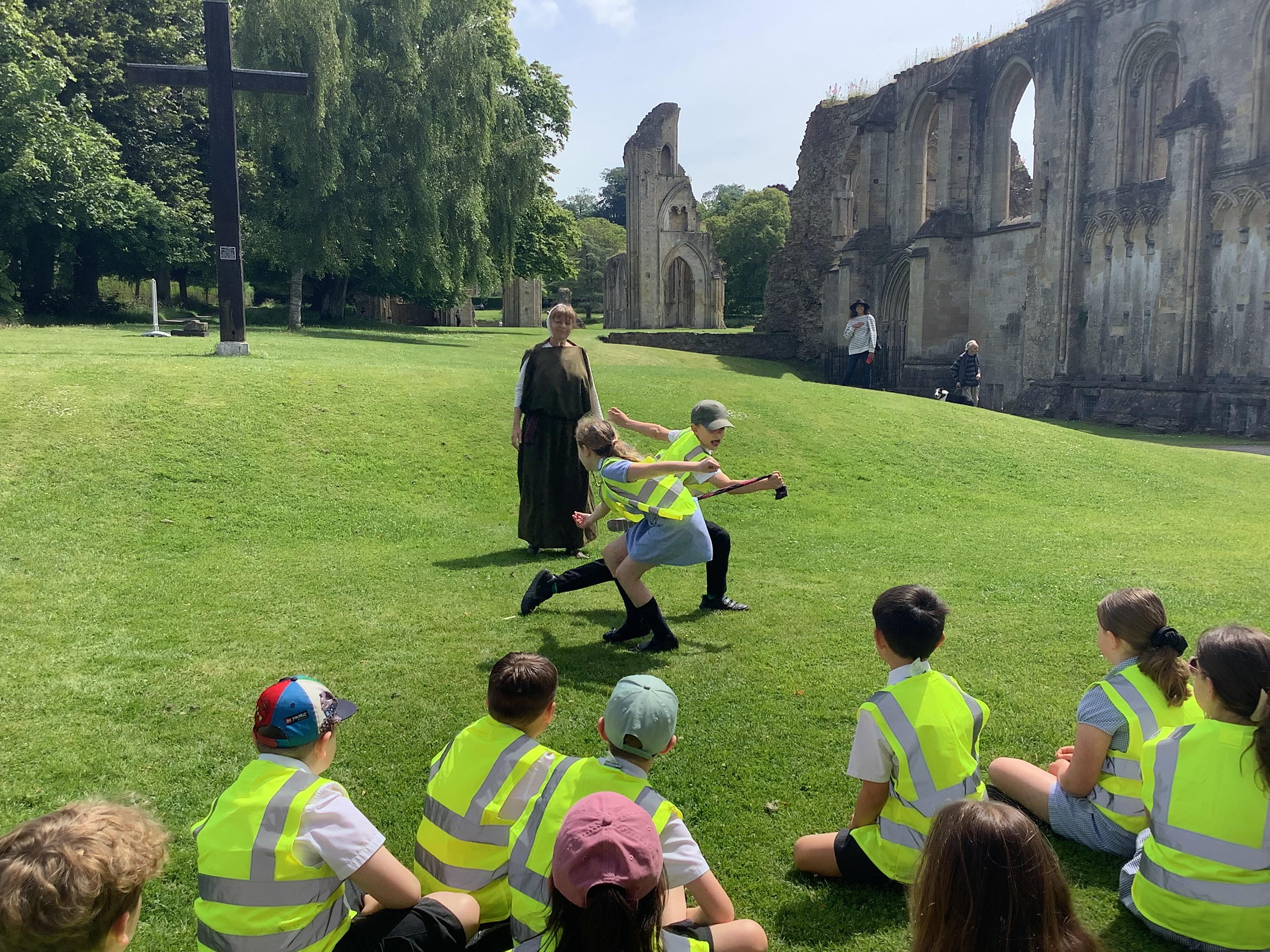 Year 4 went on an exciting trip to Glastonbury Abbey on Wednesday. The weather was lovely, making it a perfect day for exploring. We started with a tour around the ruins, where we relived the history and learned about what happened at the abbey long ago. The ancient stones and arches were fascinating, and we imagined what life must have been like during the time of the monks. After our tour, we visited the museum, where we got a chance to play Tudor games. We also learned some Tudor dancing. We all laughed and enjoyed trying to keep up with the steps and music. To top off the day, we made our own Tudor toothpaste. All the ingredients were sourced from the abbey grounds, just as they would have been in Tudor times.