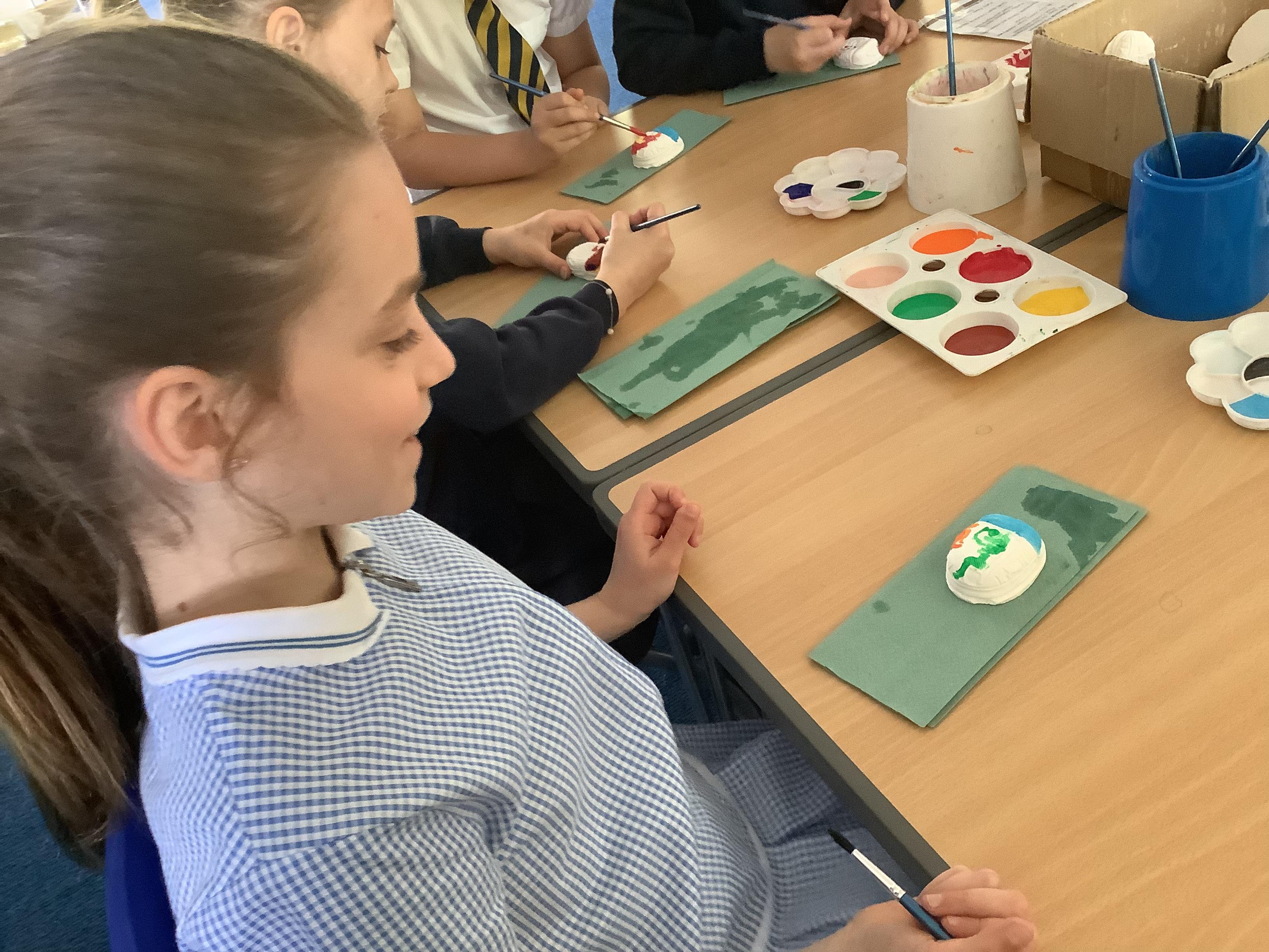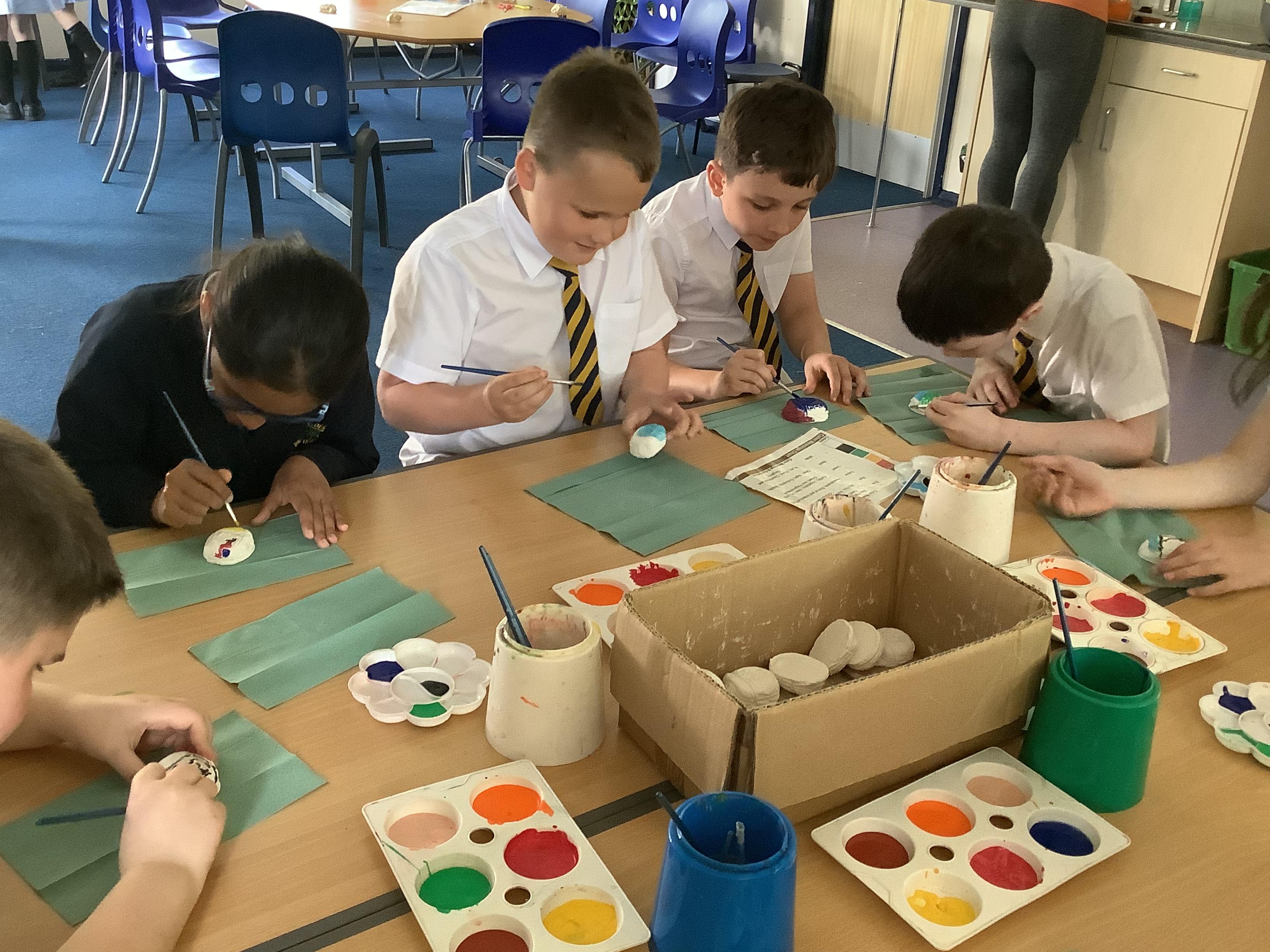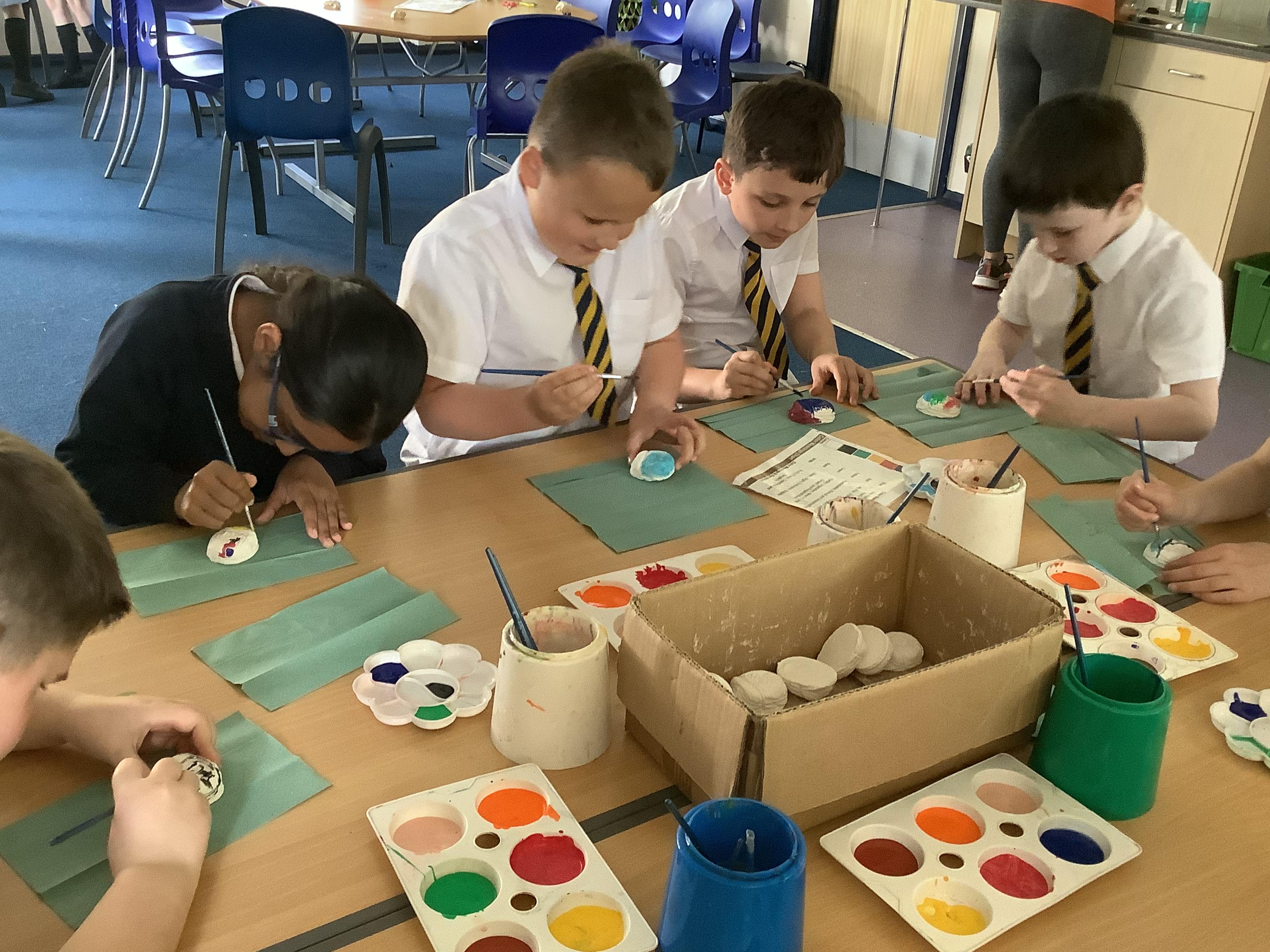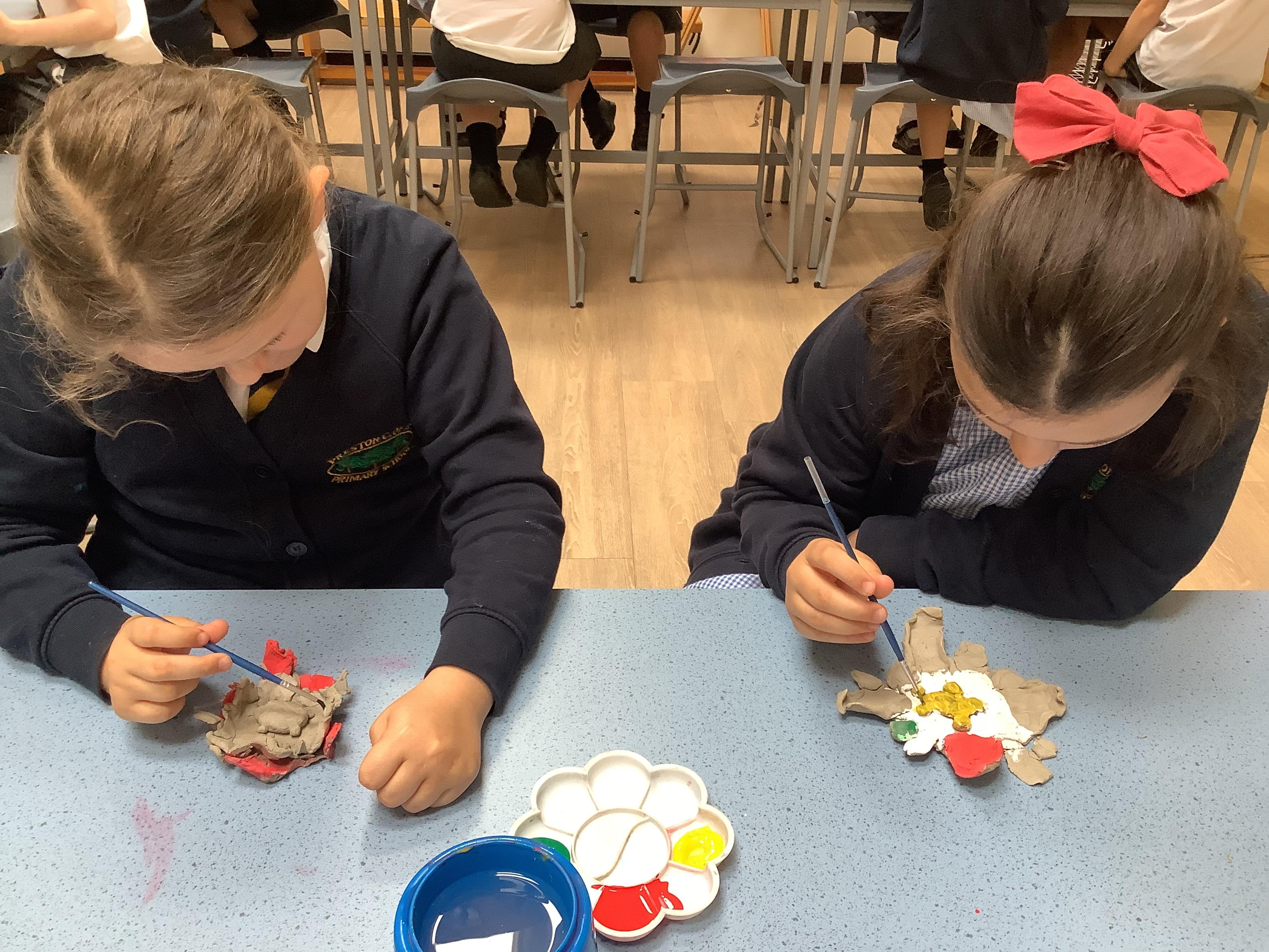 Today we painted our Tudor roses from Wednesdays Tudor day. They had finally dried so we could add the paint to them. I think you’ll agree they look amazing!