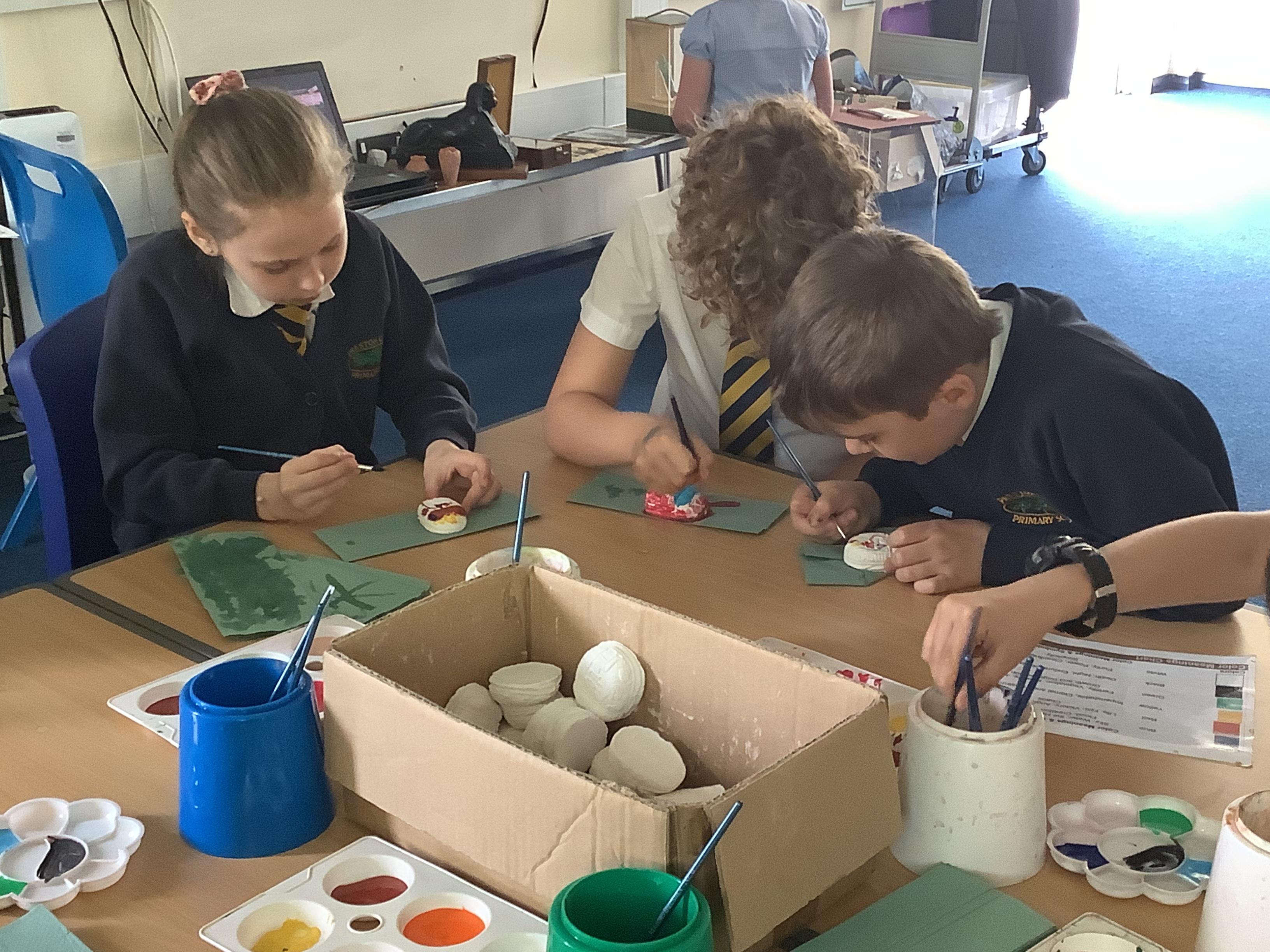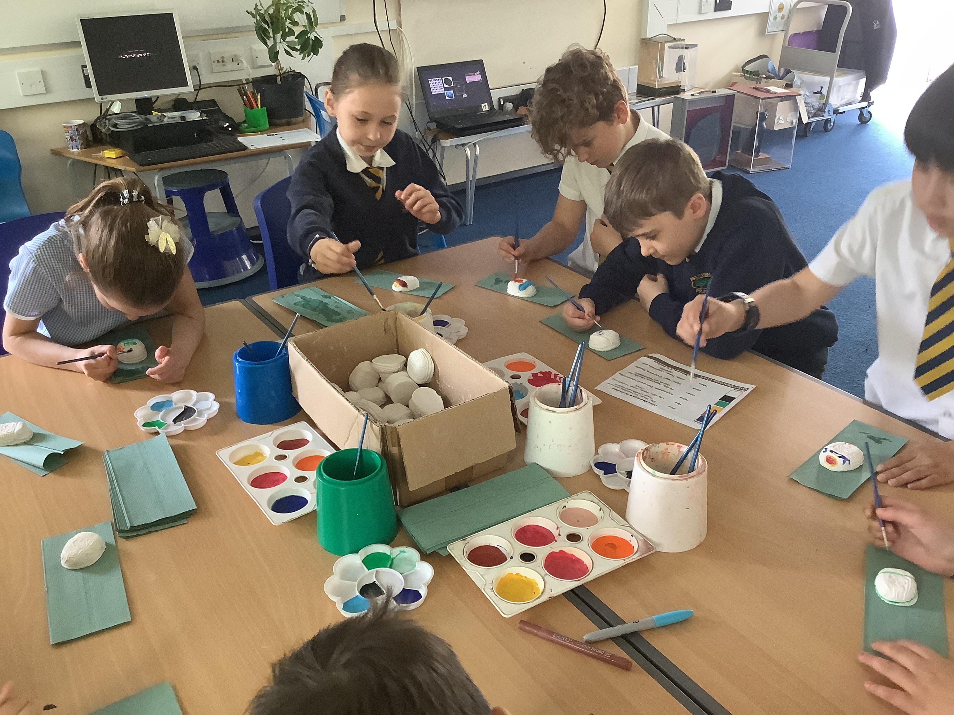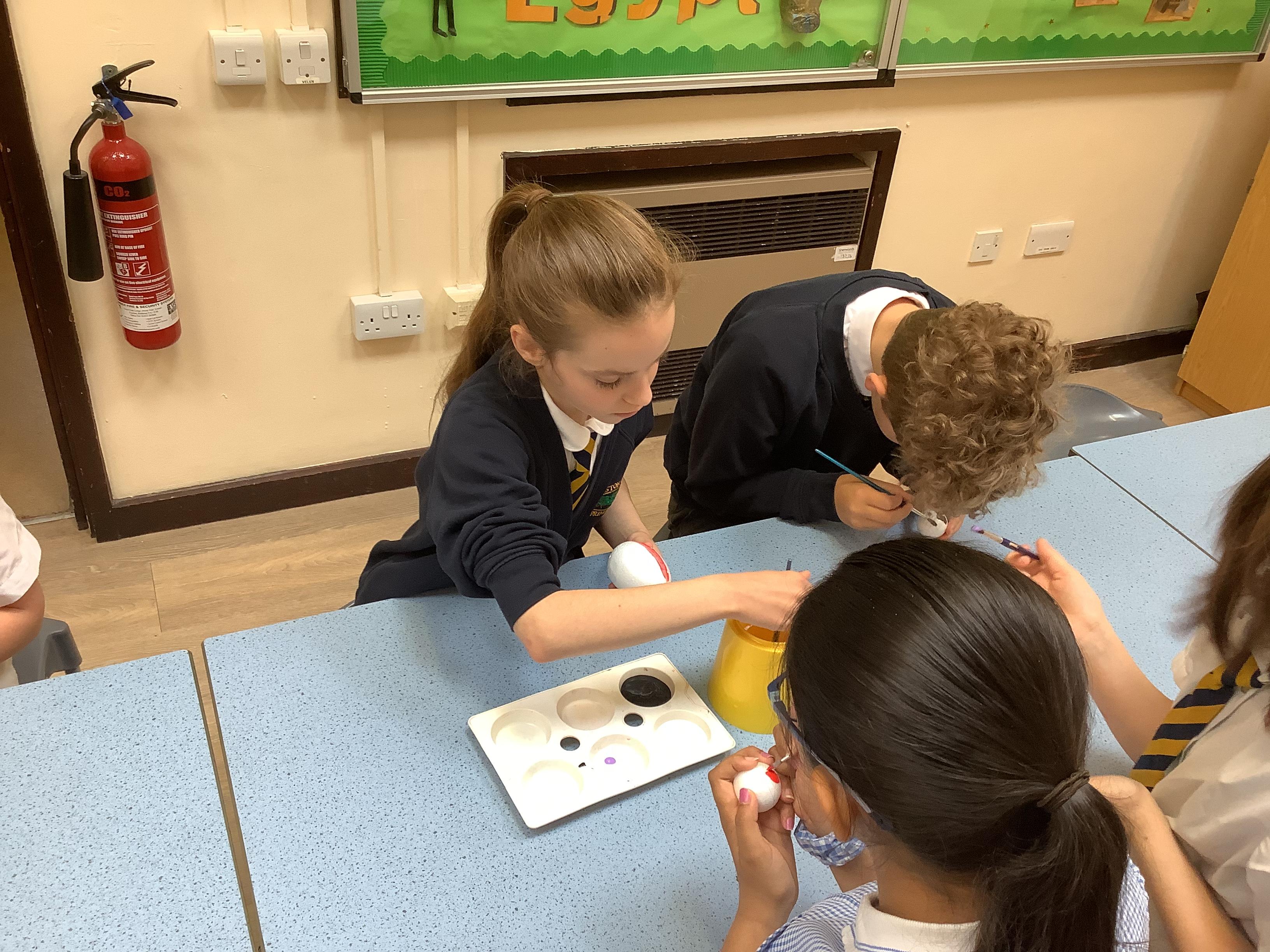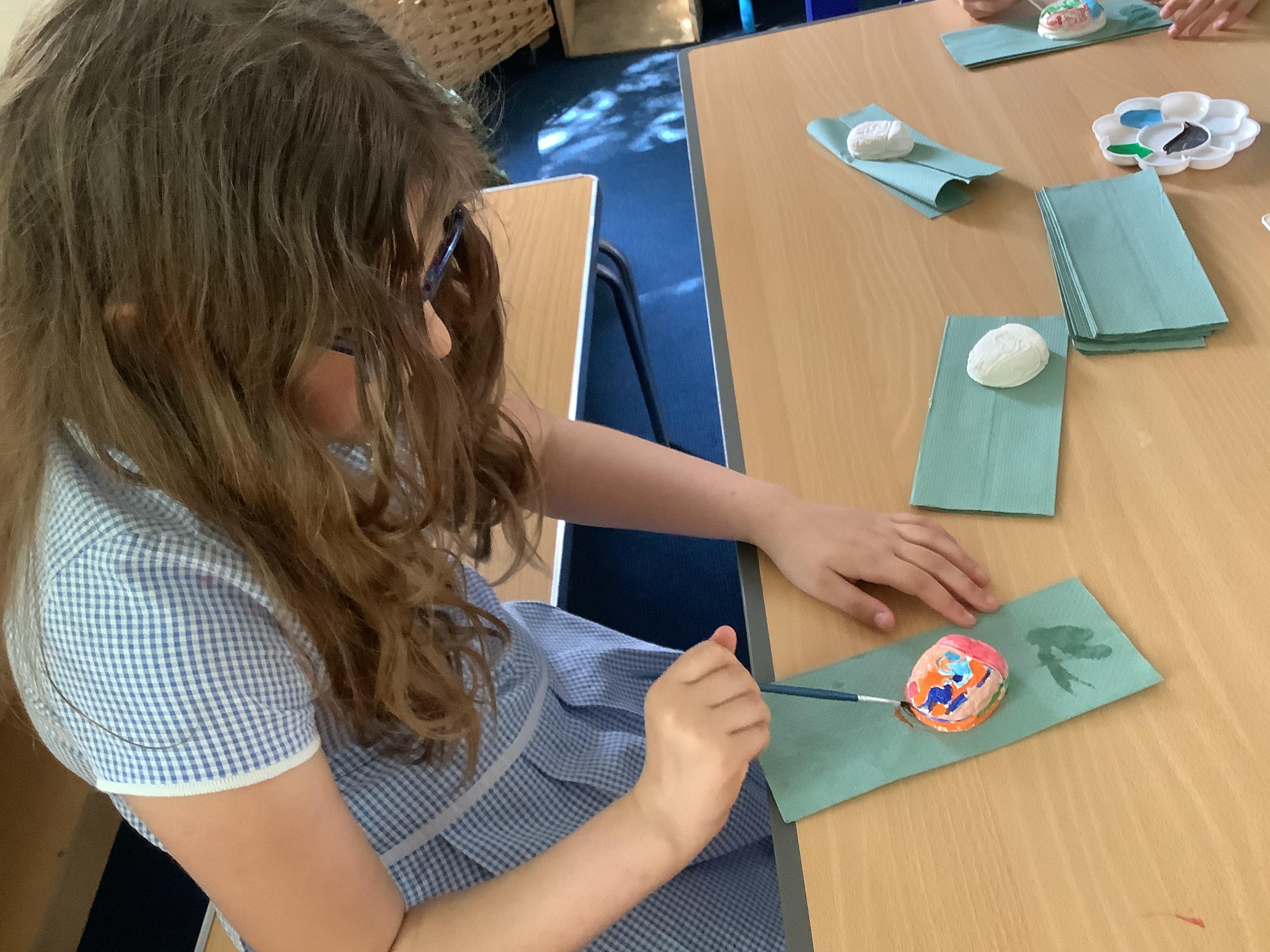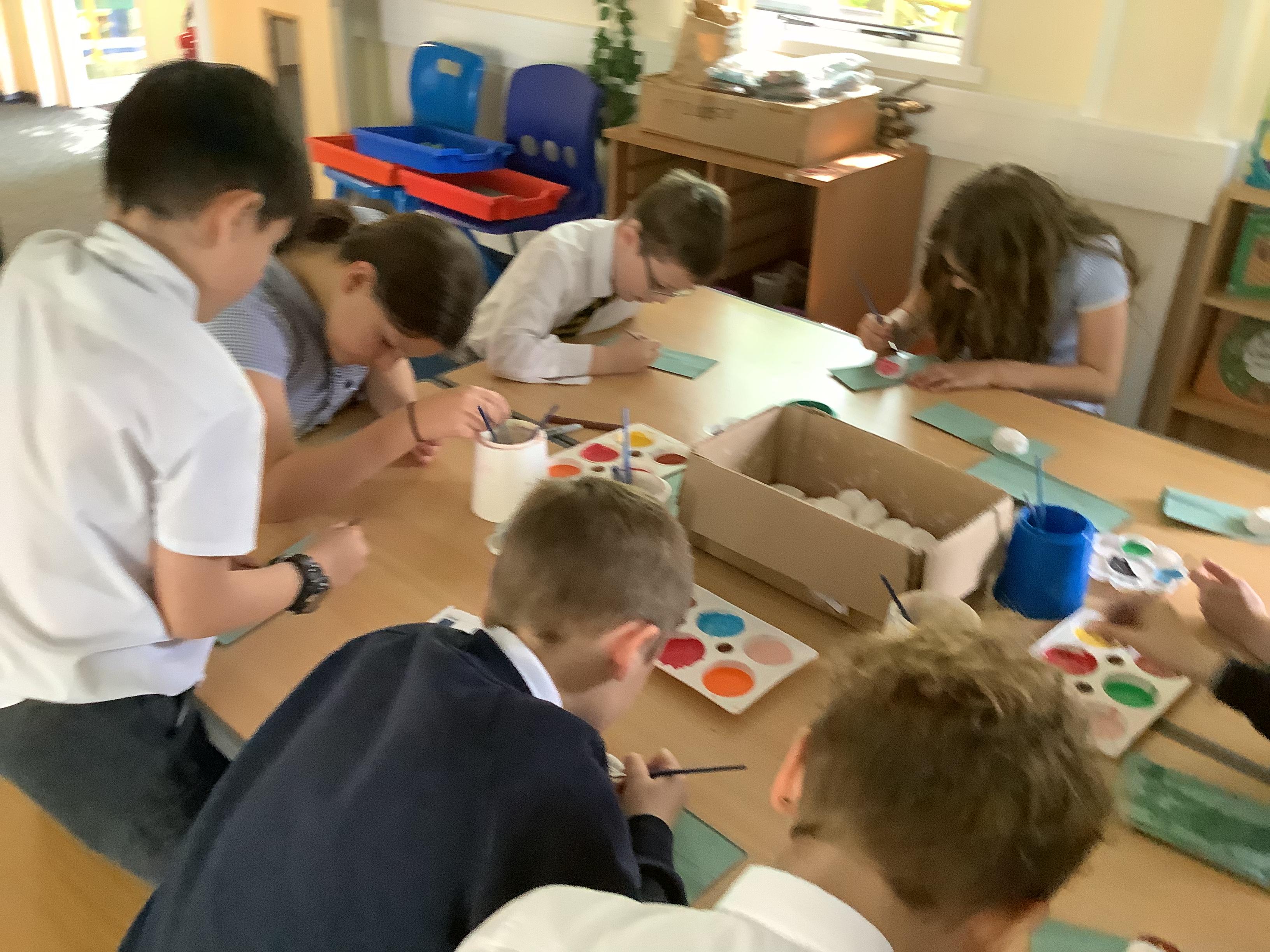 Today we painted our Tudor roses from Wednesdays Tudor day. They had finally dried so we could add the paint to them. I think you’ll agree they look amazing!