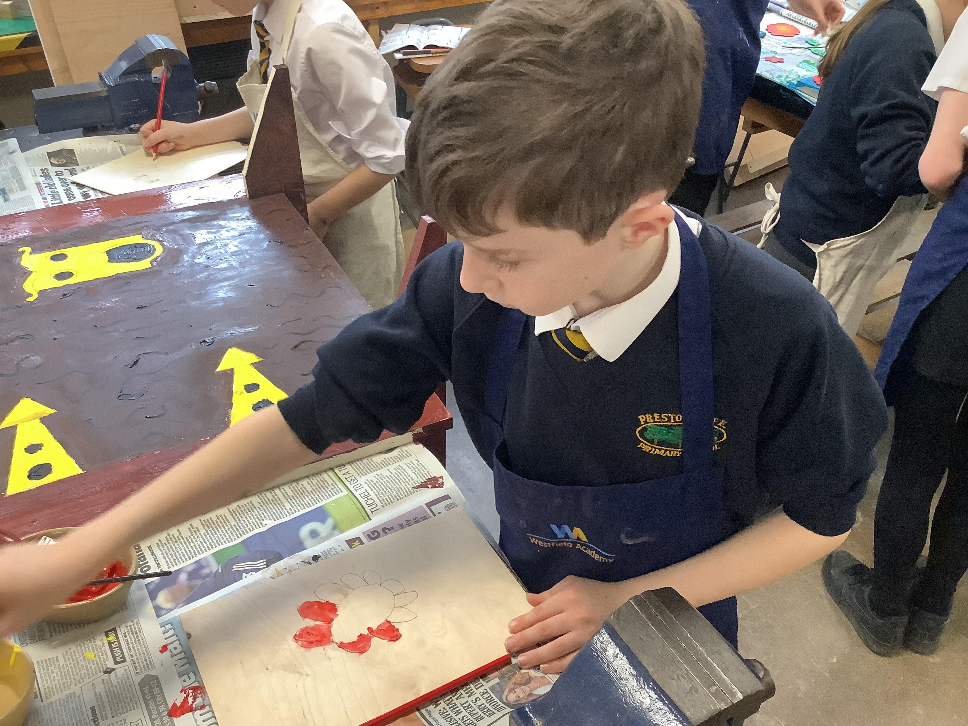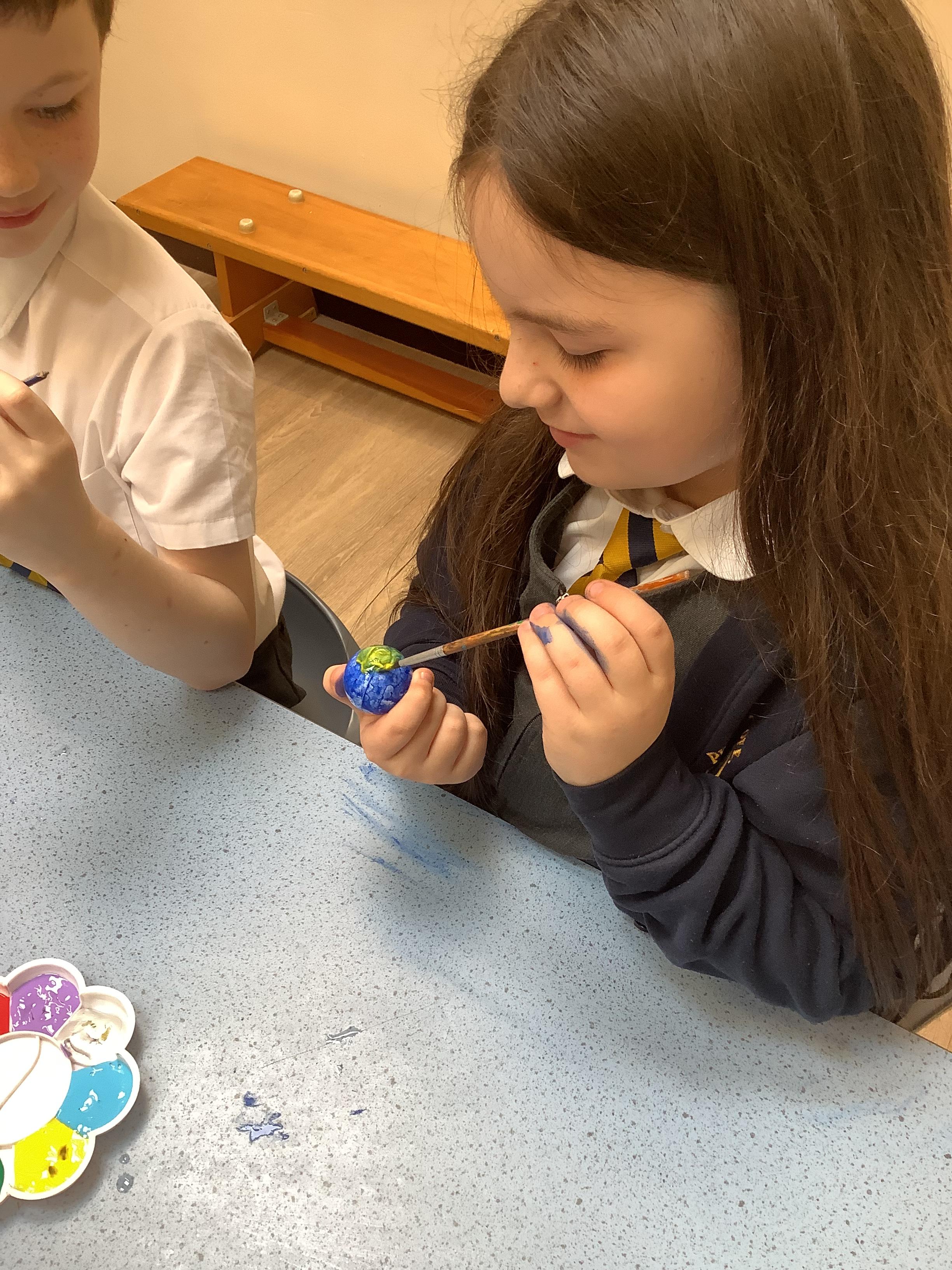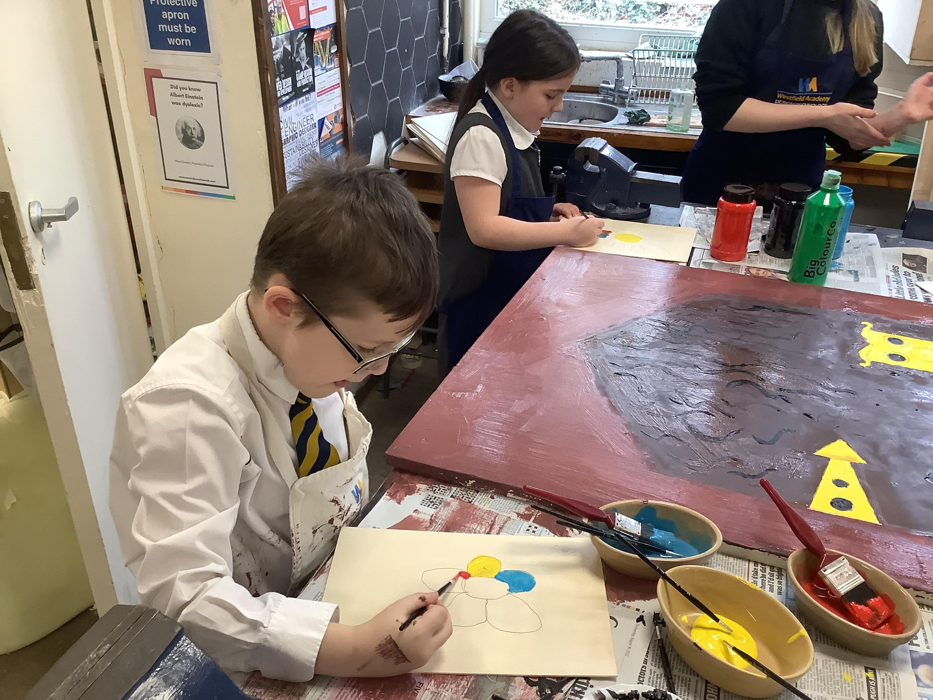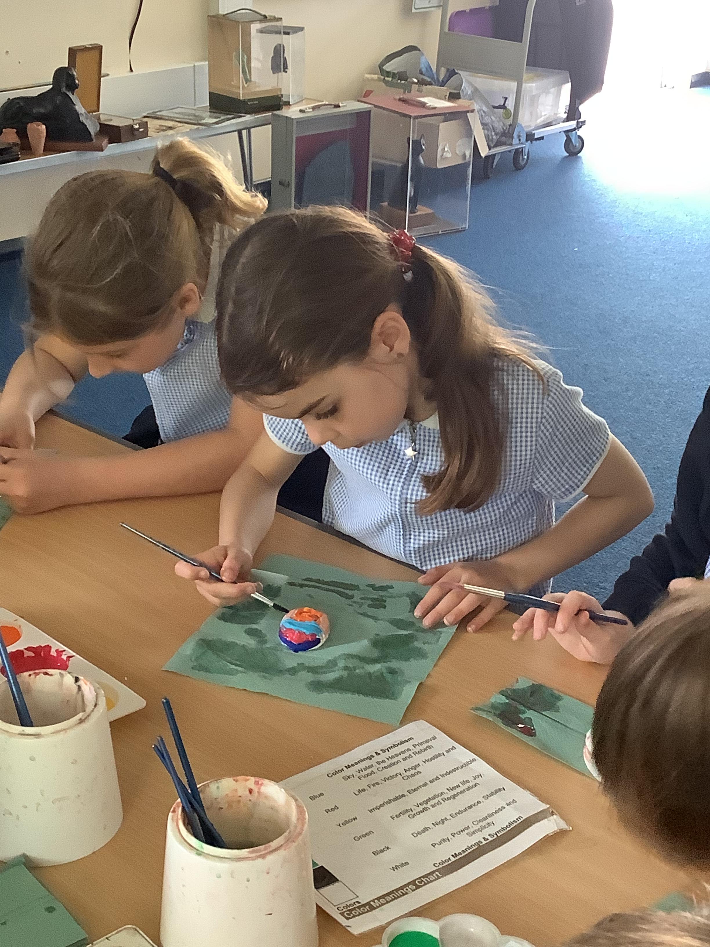 Today we painted our Tudor roses from Wednesdays Tudor day. They had finally dried so we could add the paint to them. I think you’ll agree they look amazing!