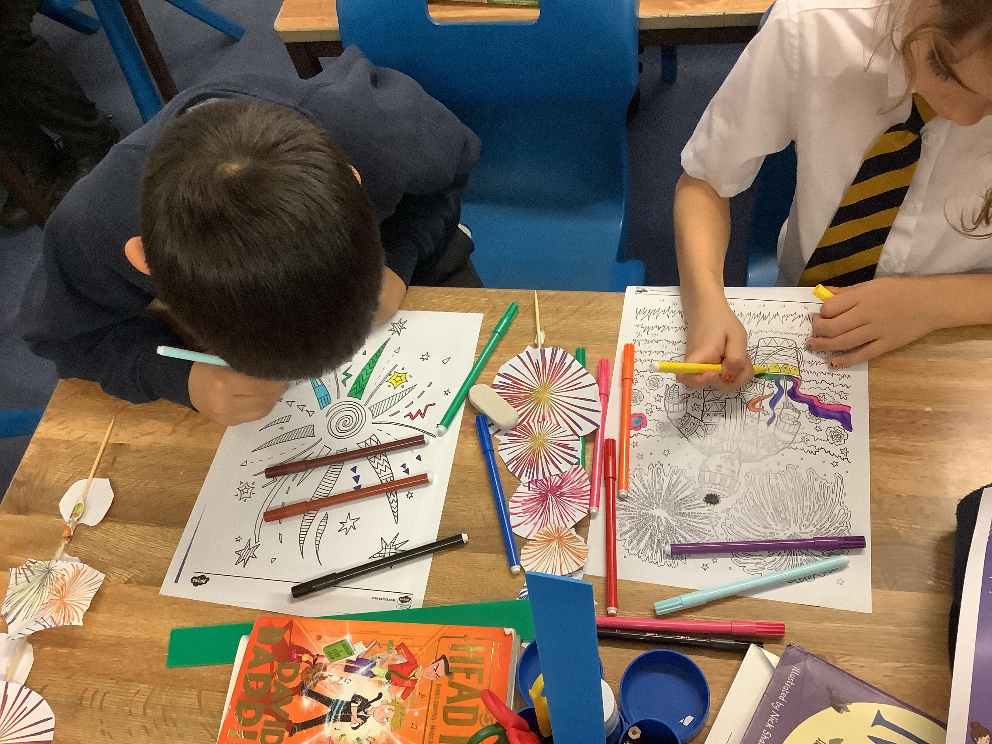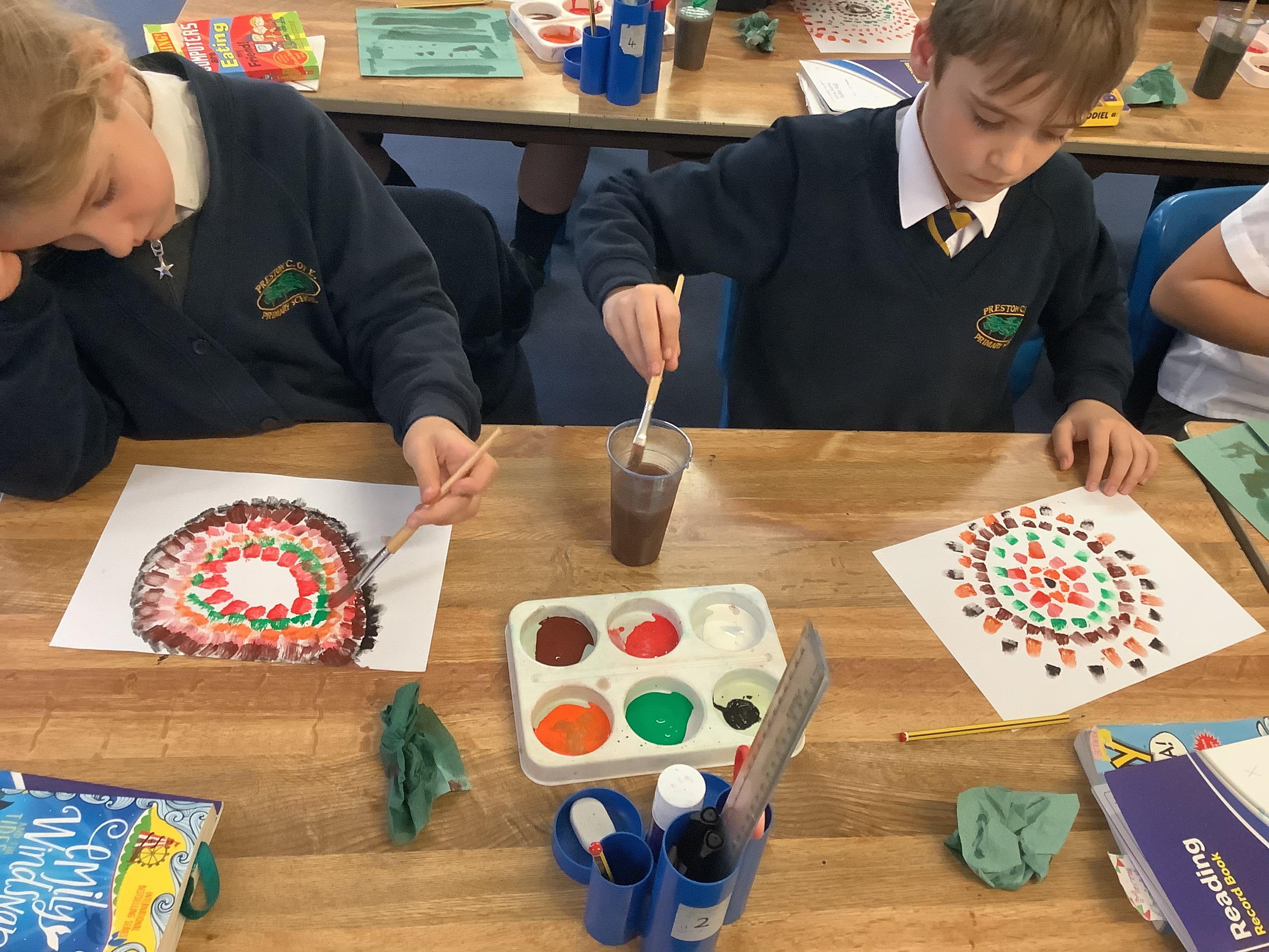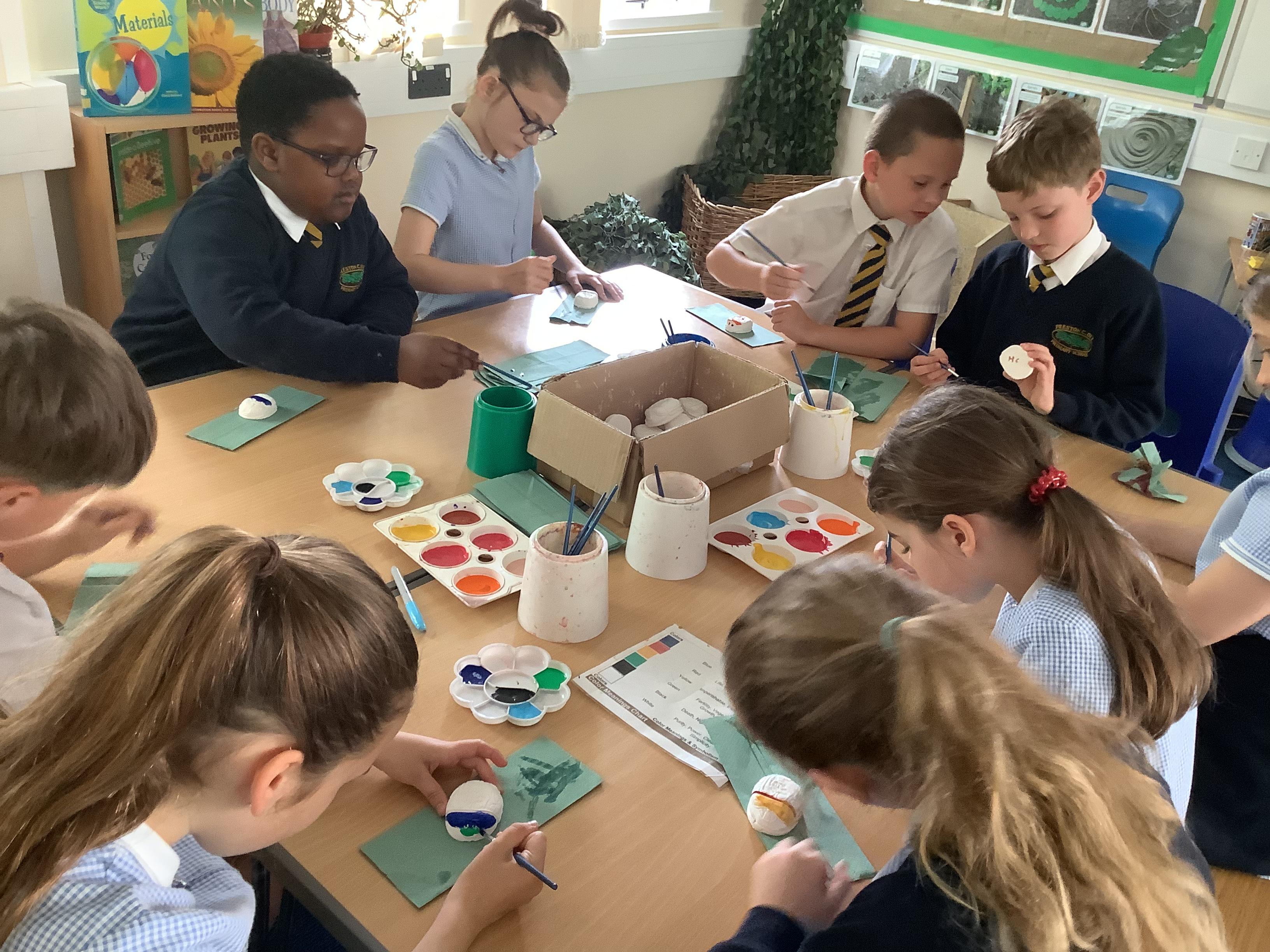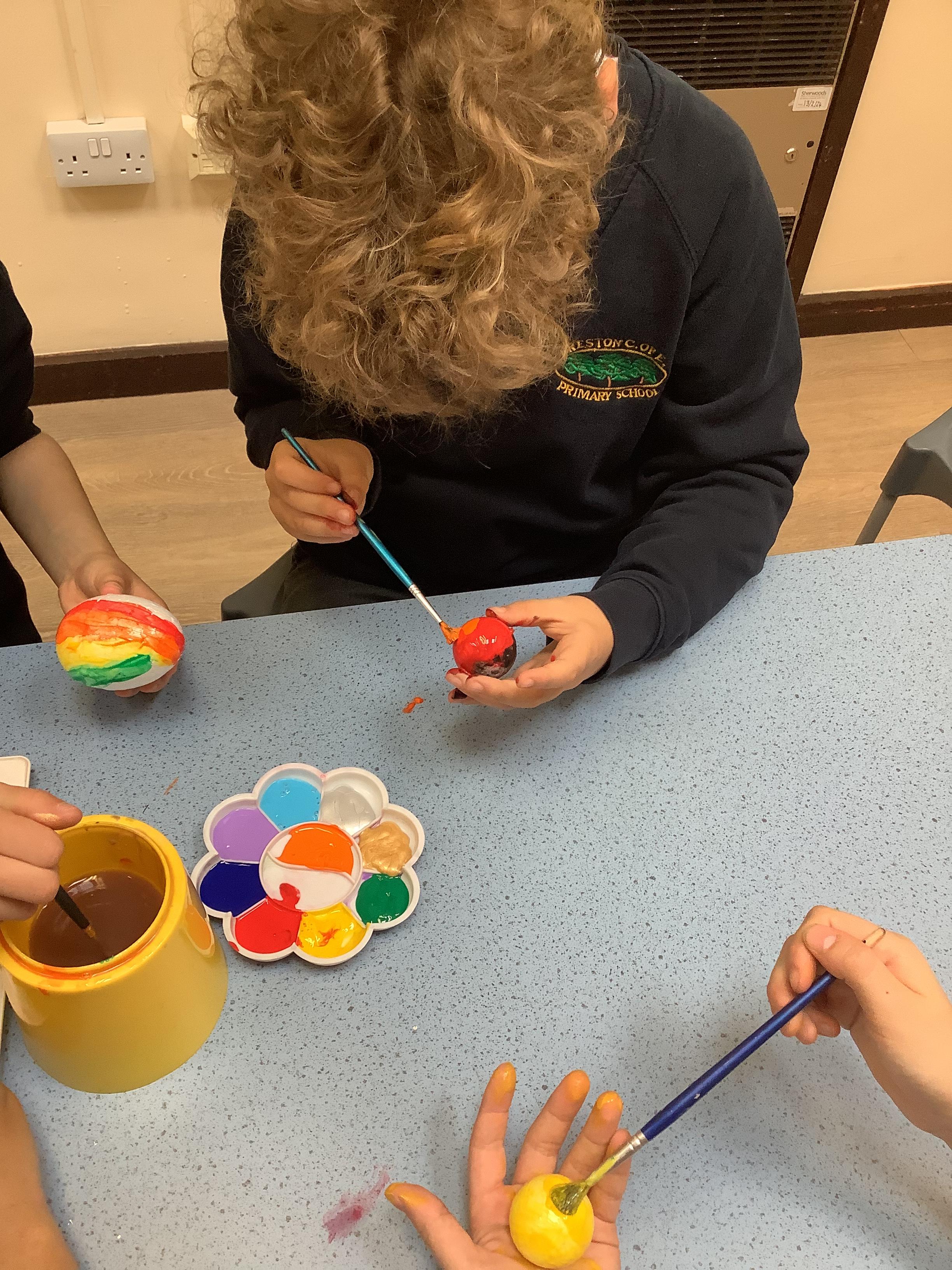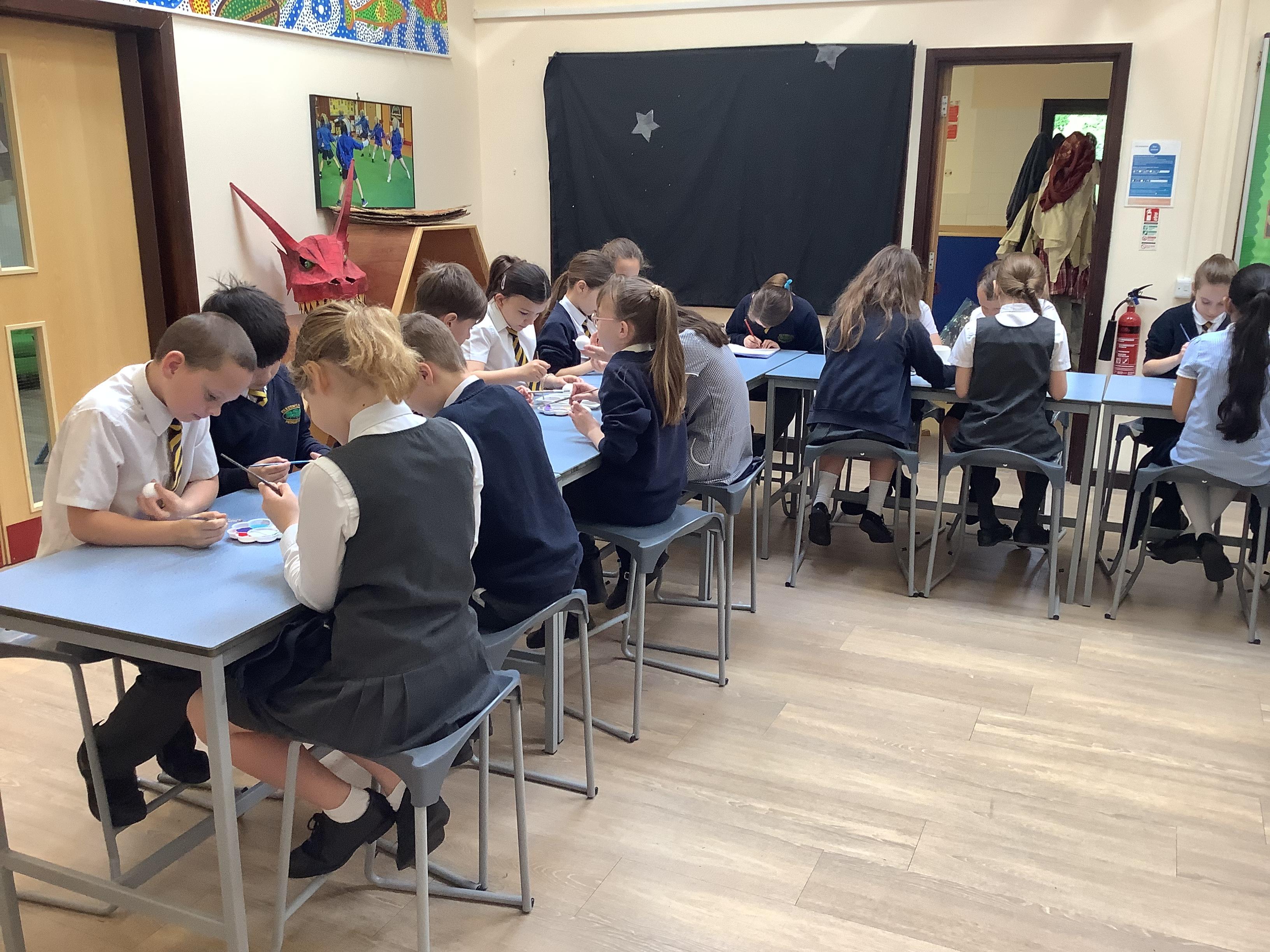 Today we painted our Tudor roses from Wednesdays Tudor day. They had finally dried so we could add the paint to them. I think you’ll agree they look amazing!
