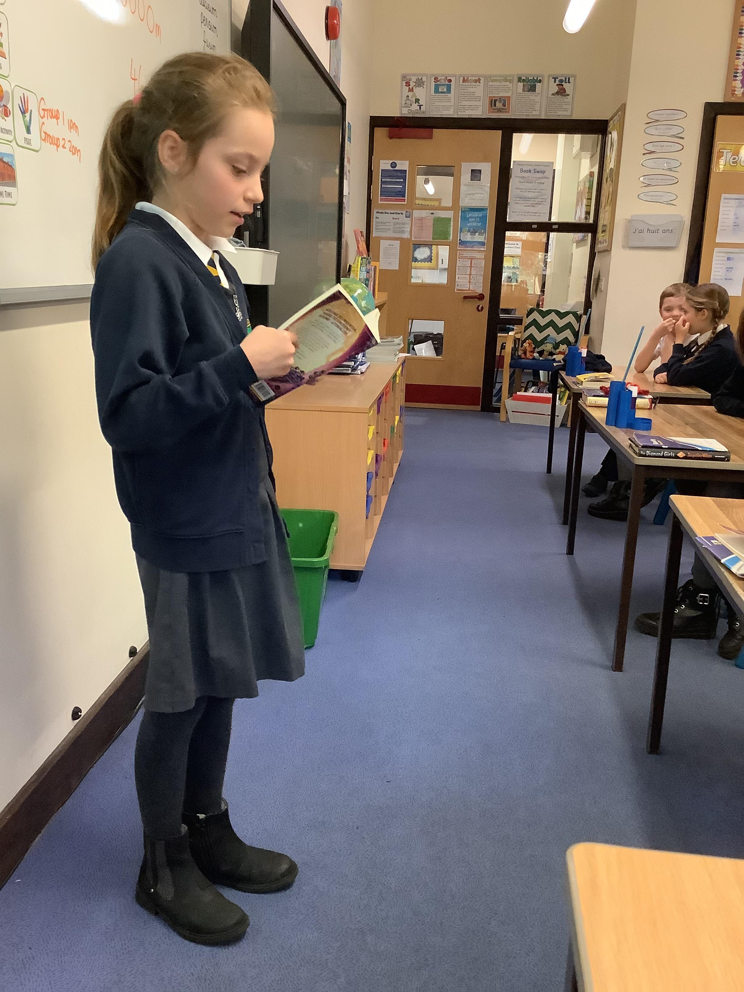 Today was Rishona's turn to read aloud to the class. She read beautifully clear and fluently! Harley and Cosmo have finally entered the Iron Forest.