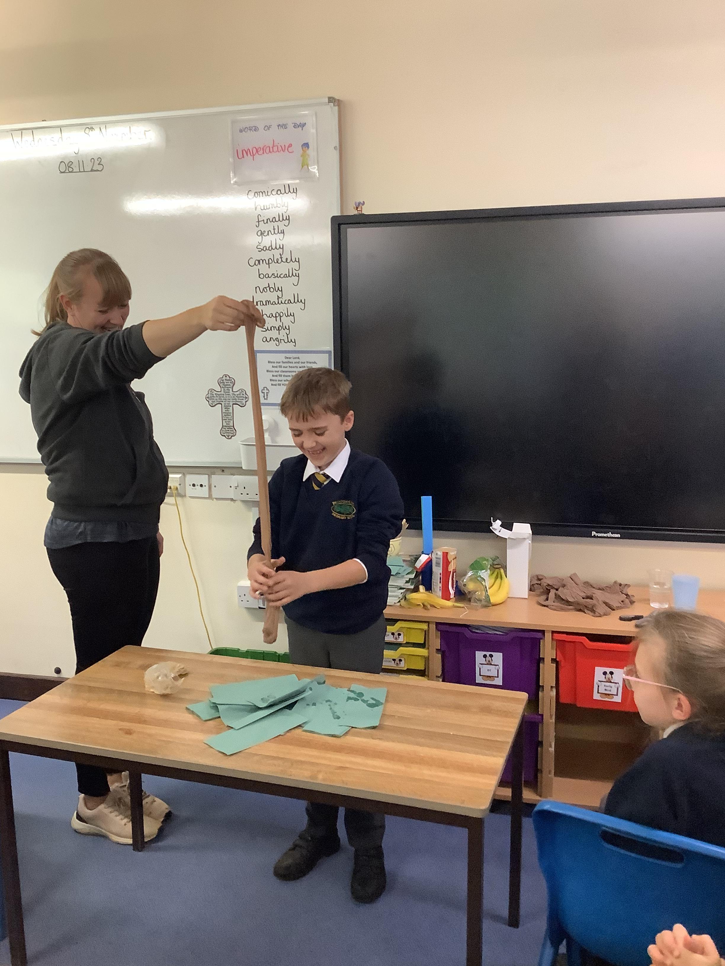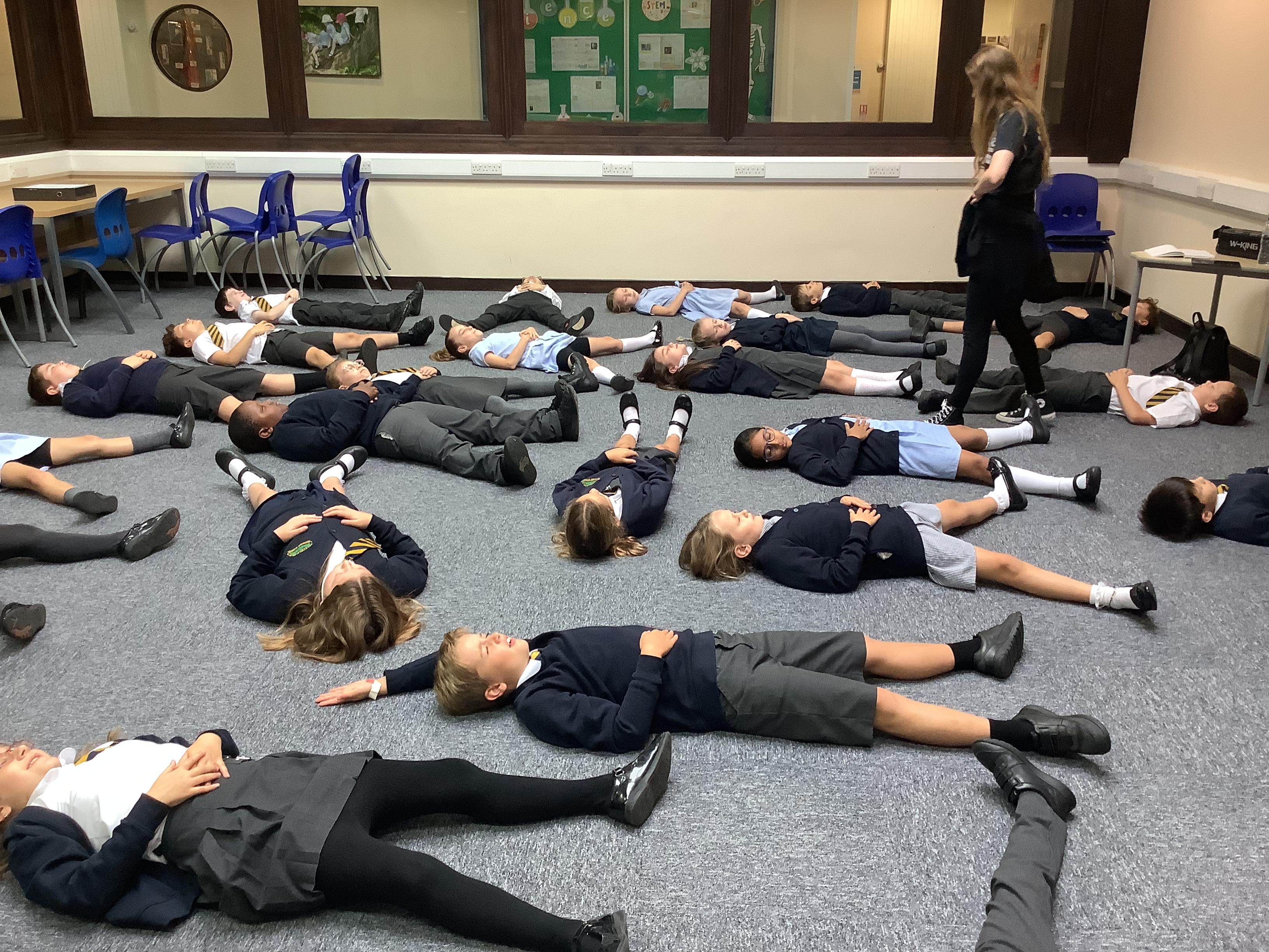 The children were extremely lucky to have a visit from Natalie, from Razzmatazz theatre school, who worked with them linked to mental health week. They were tasked to celebrate their uniqueness and think of something that made them special. Using these, the children then shared them by creating poses to show off their uniqueness. Natalie also gave the children an opportunity to learn some techniques to help keep our mind happy and calm. This involved a relaxation activity about their breathing. It certainly did look very relaxing!
