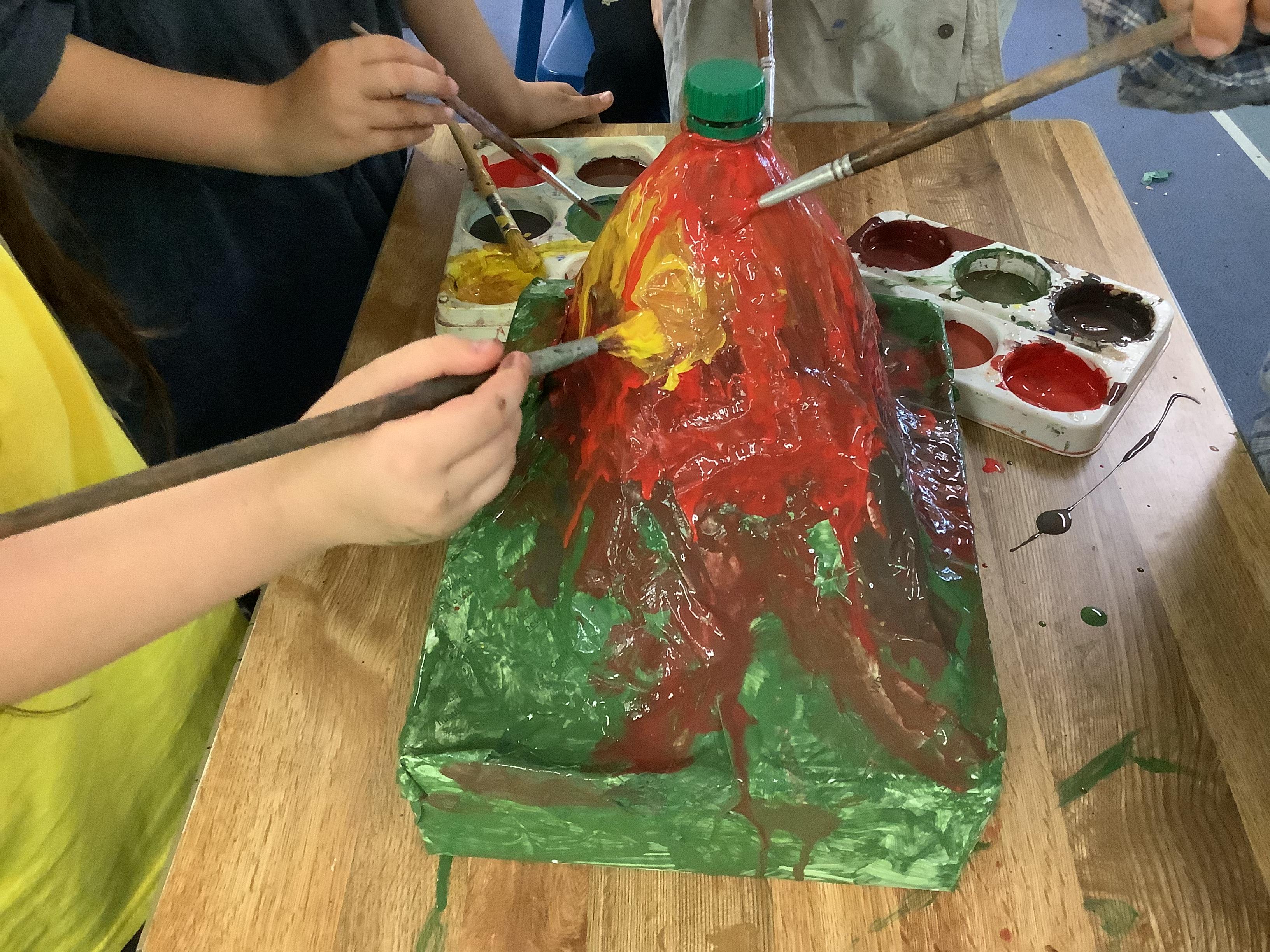 After allowing our volcanoes to dry, the children have been painting them this week. They look spectacular and the children (and myself) are VERY excited to erupt them next week!