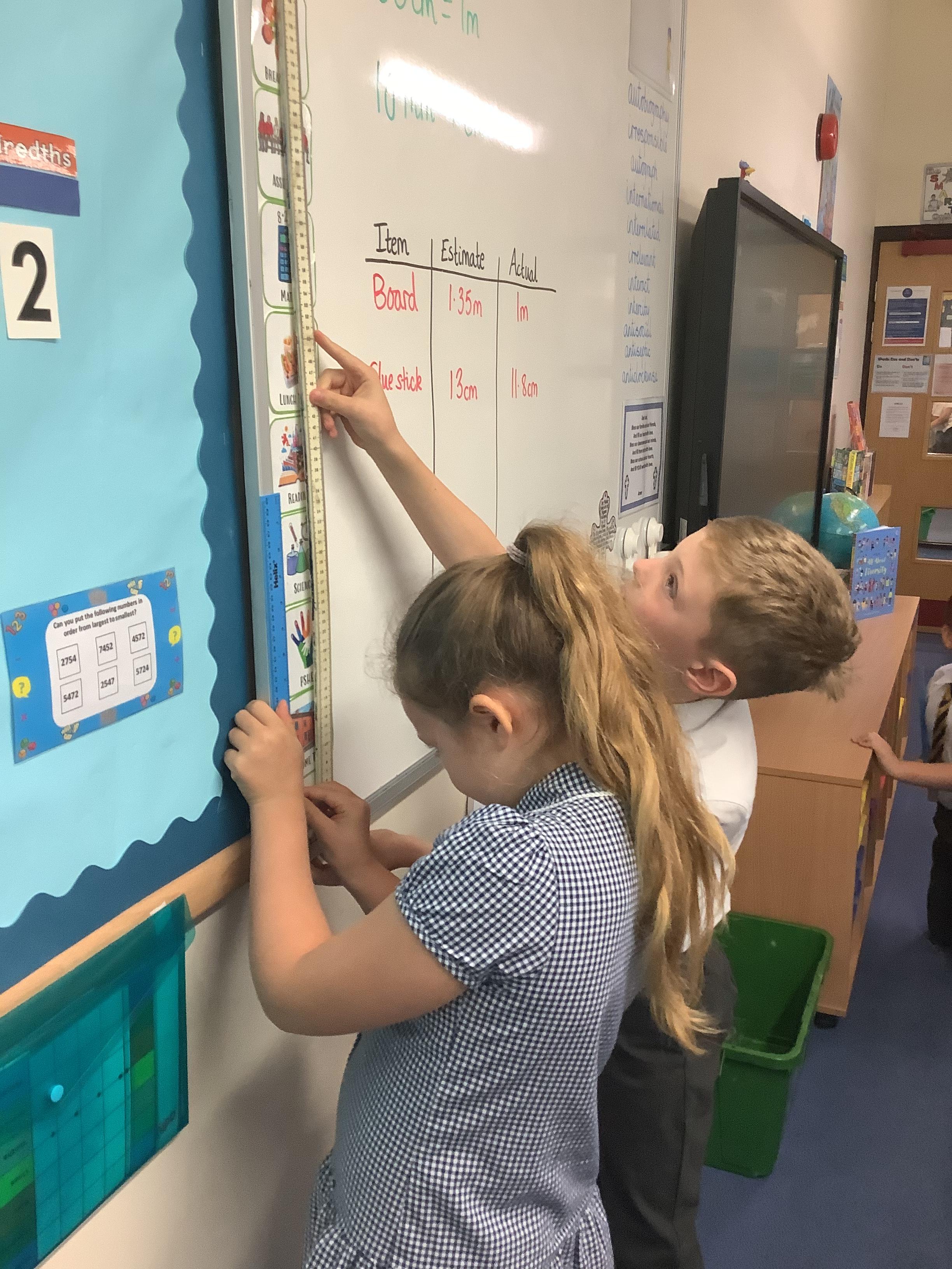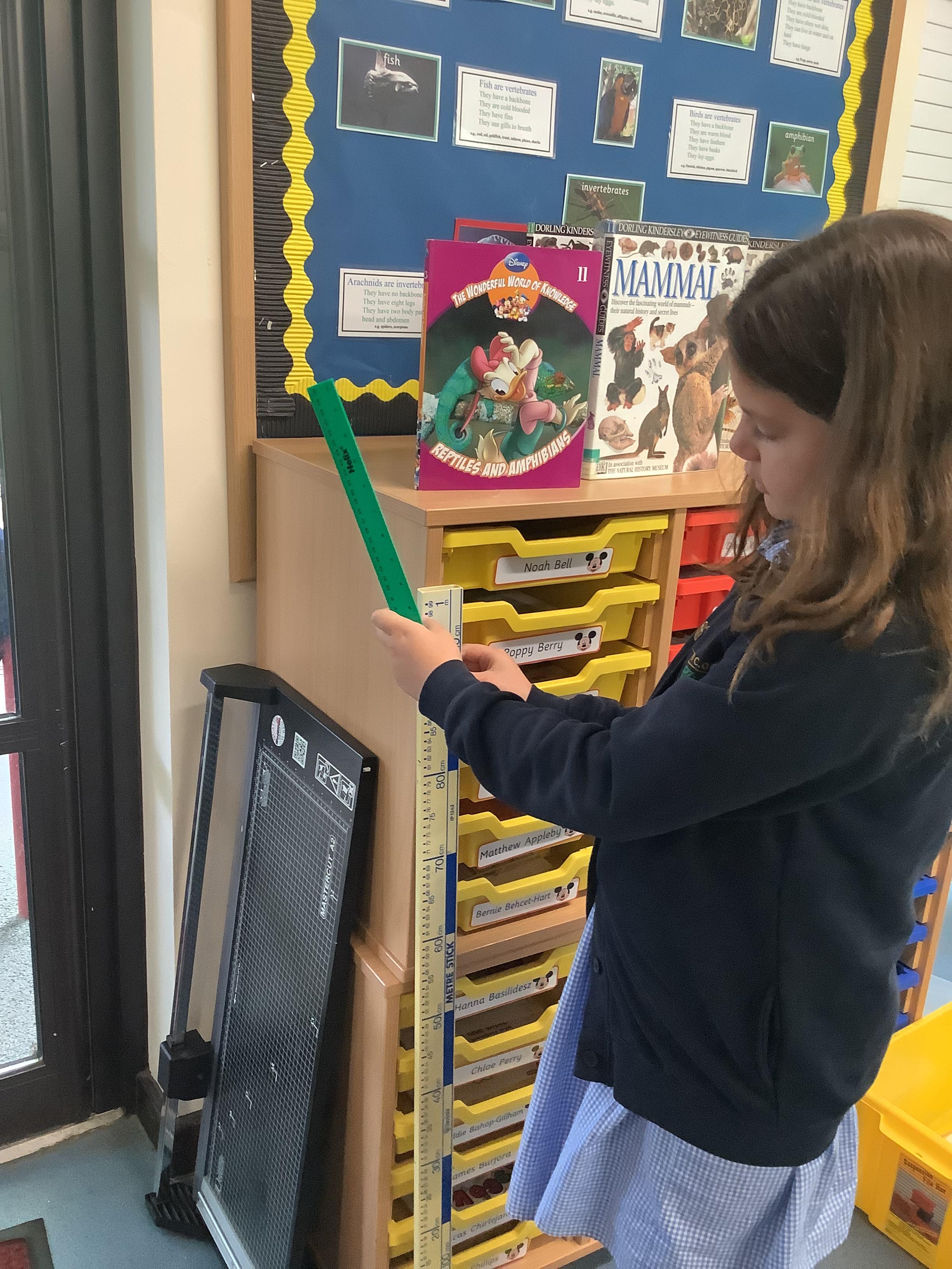 In maths this week, we have been learning to convert between centimetres and metres. Alongside this, we were estimating and measuring different lengths around the classroom.