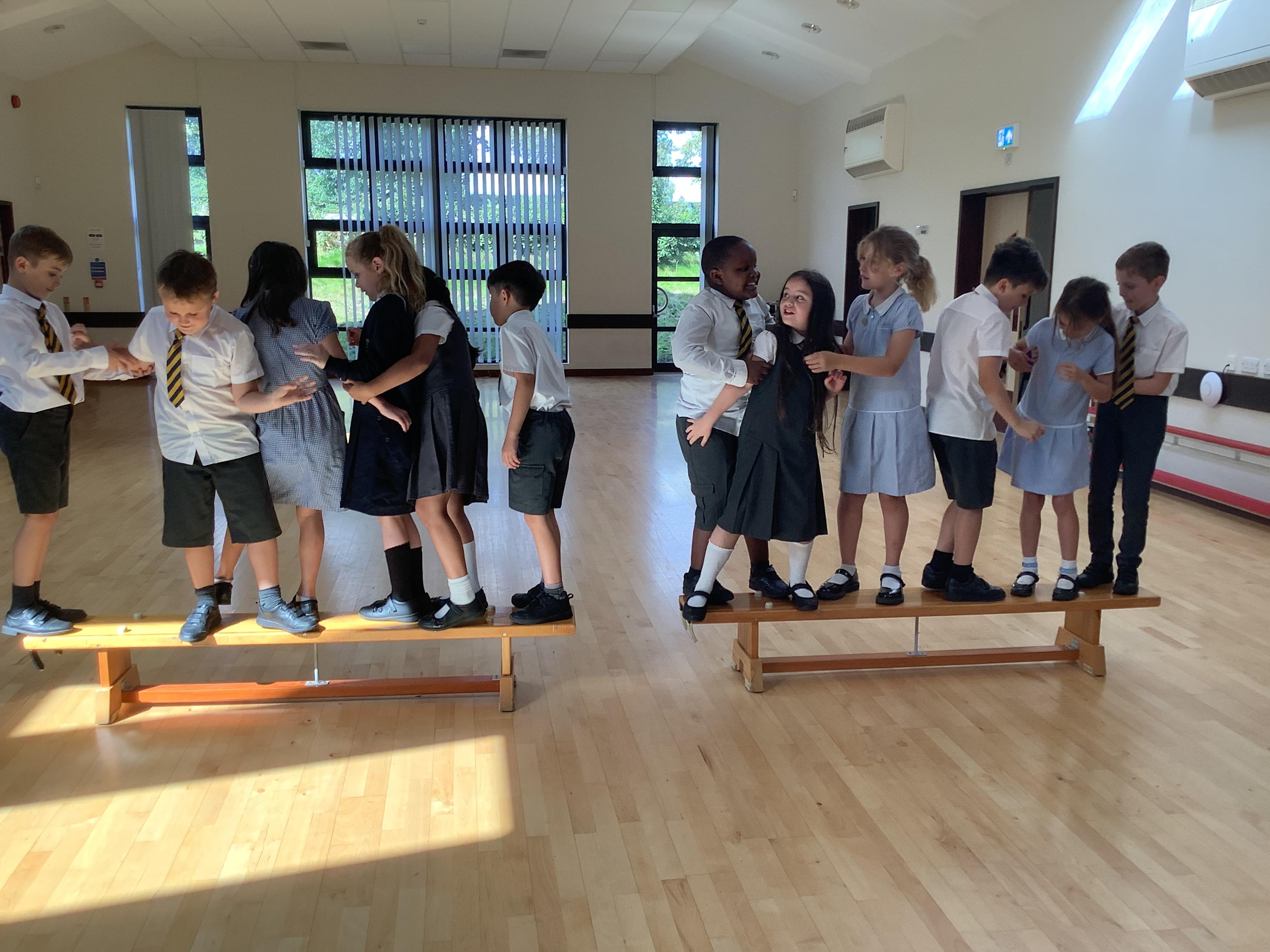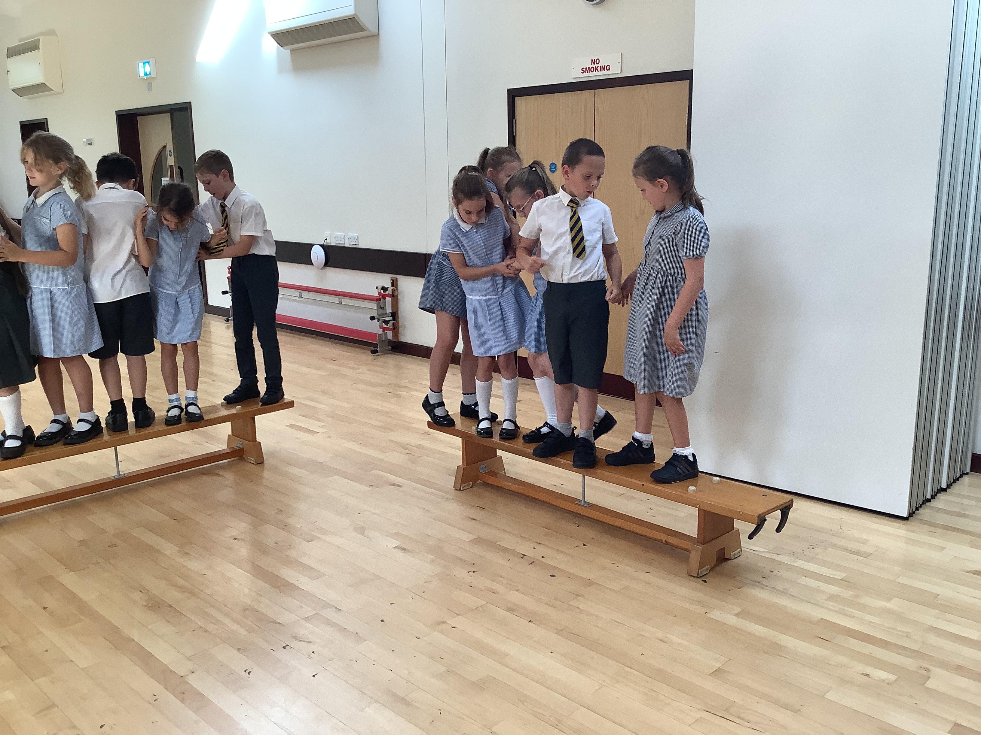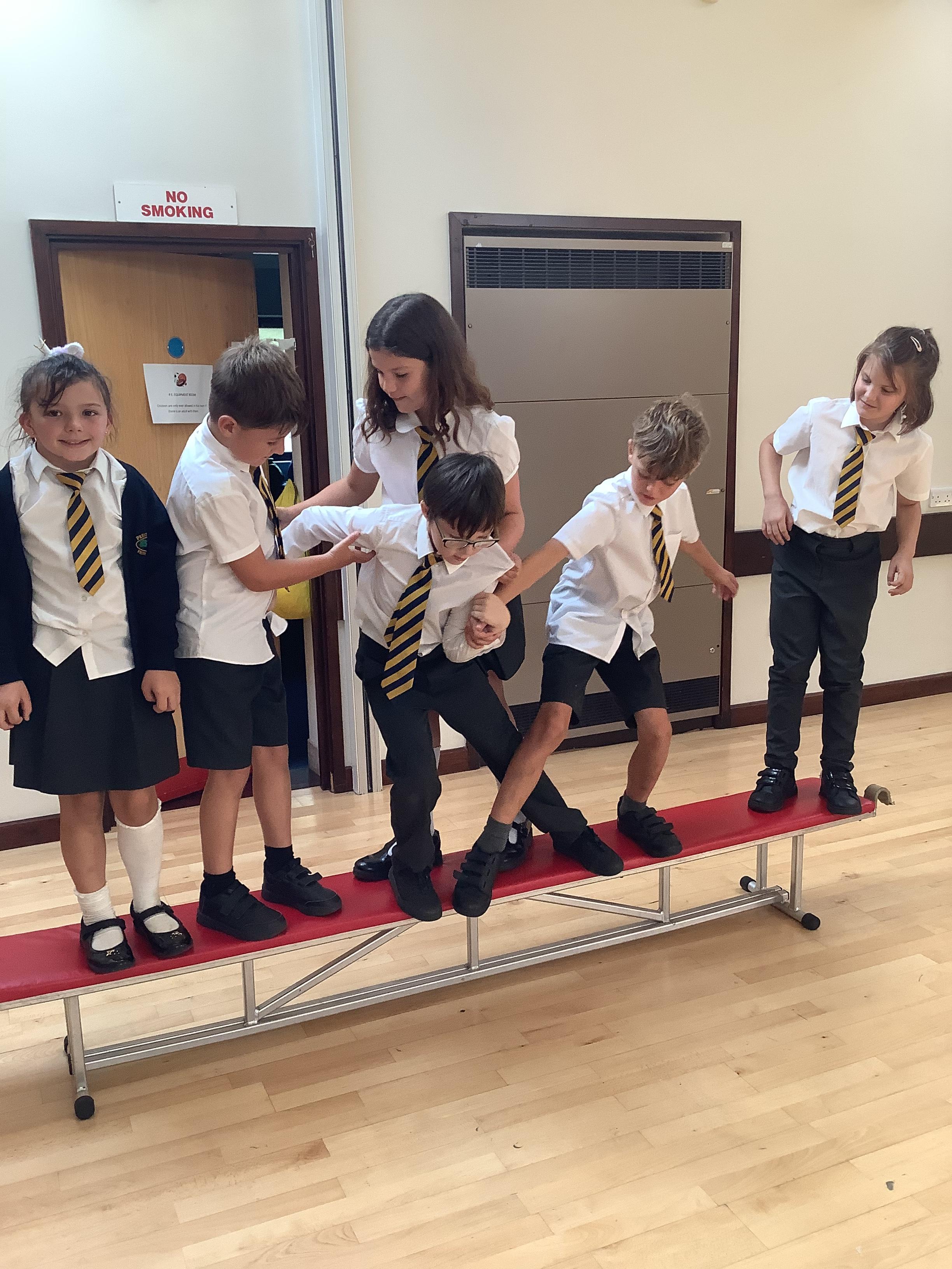 As part of our PE this term, the children will be working on team building. They were set the task this afternoon to rearrange themselves in different ways but they had to follow specific instructions, for example, they weren’t allowed to talk on some and they weren’t allowed to touch the floor! They did really well working together as a team.