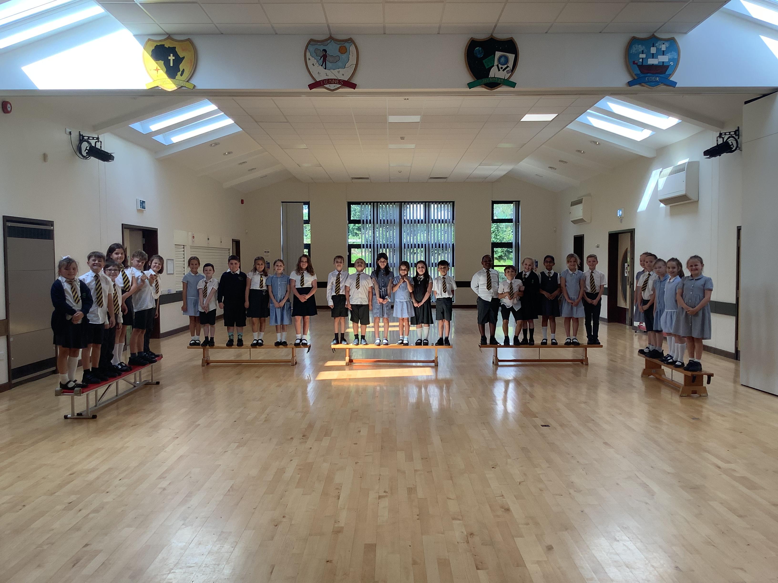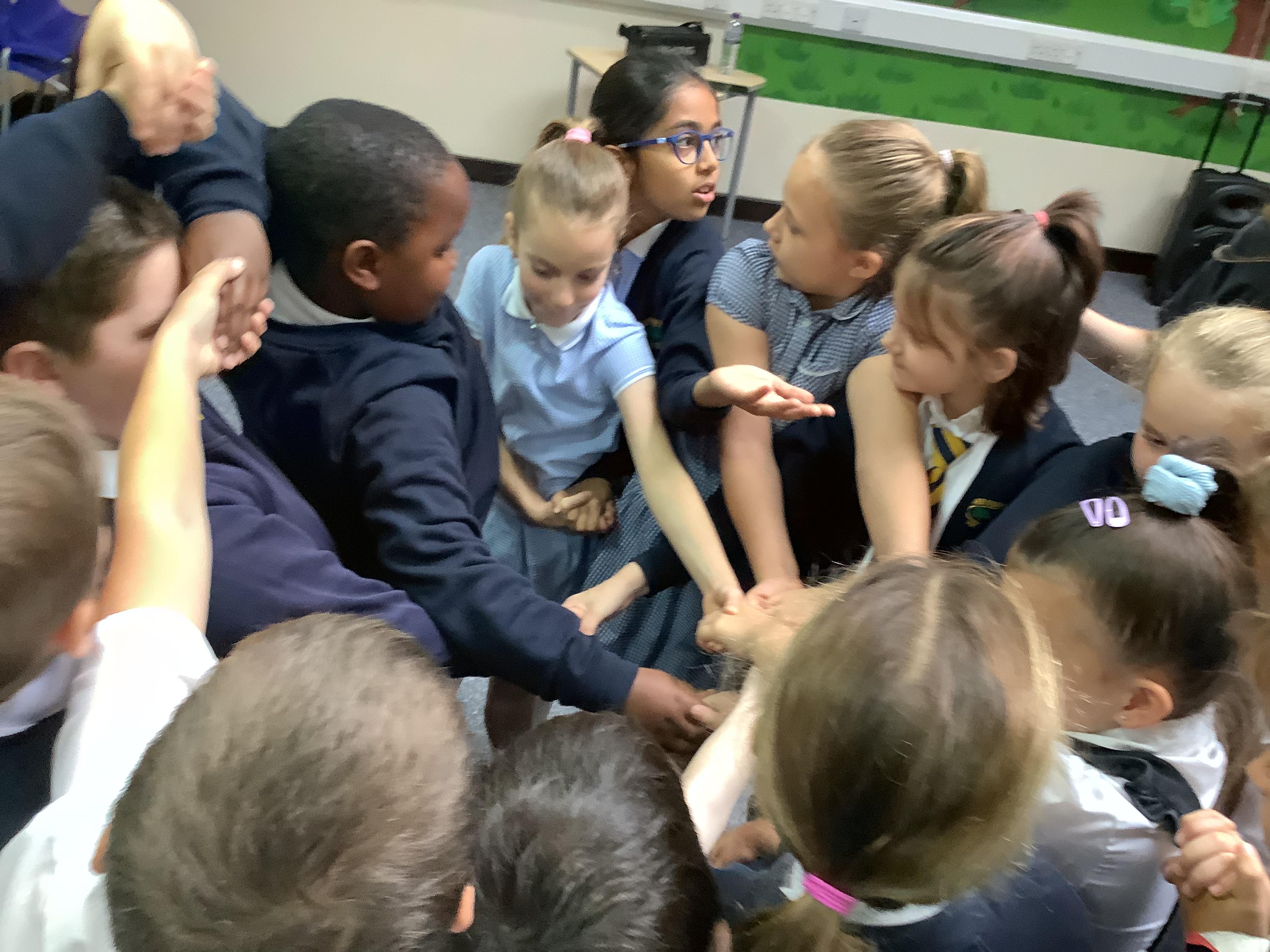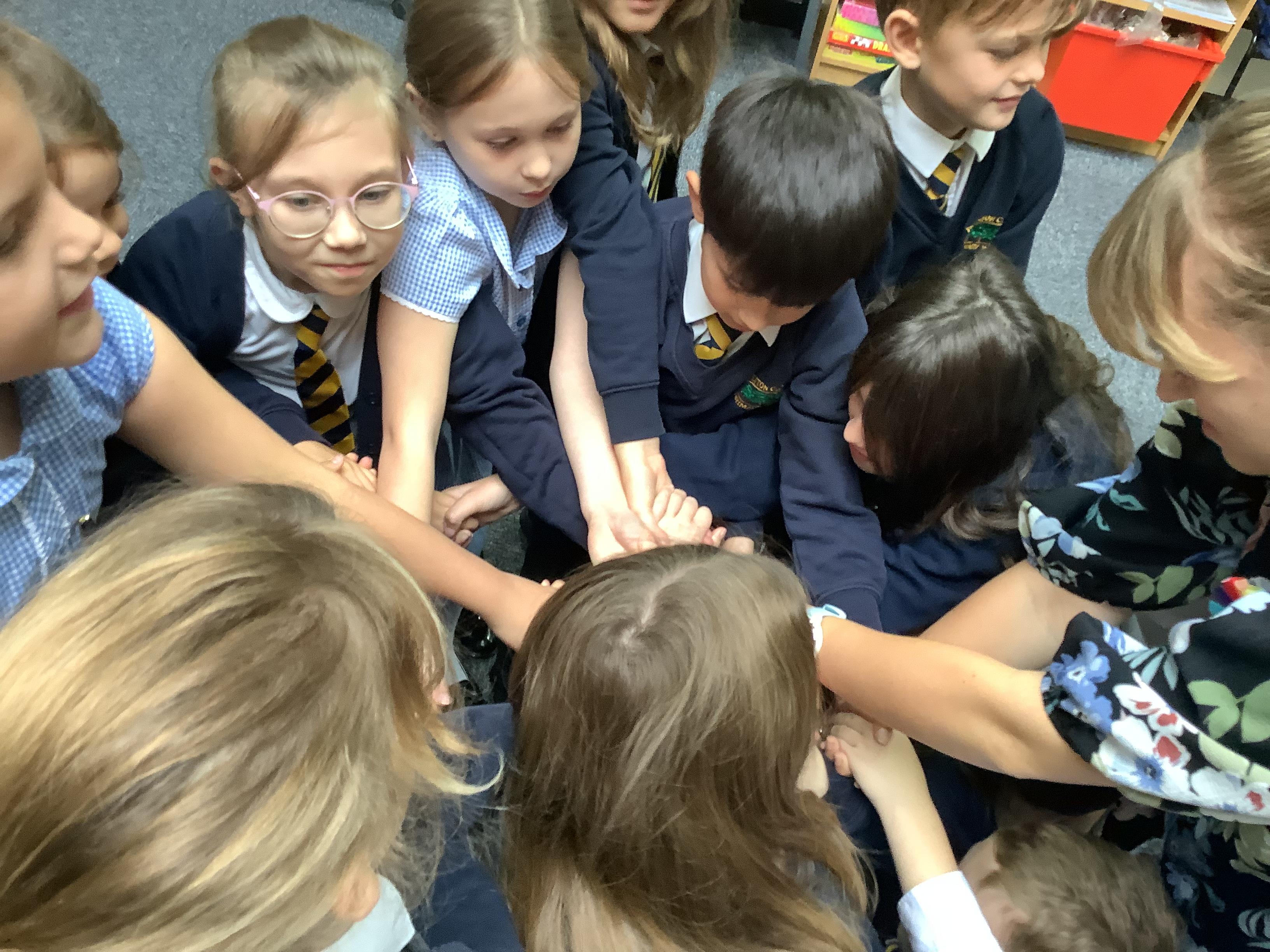 As part of our PE this term, the children will be working on team building. They were set the task this afternoon to rearrange themselves in different ways but they had to follow specific instructions, for example, they weren’t allowed to talk on some and they weren’t allowed to touch the floor! They did really well working together as a team.