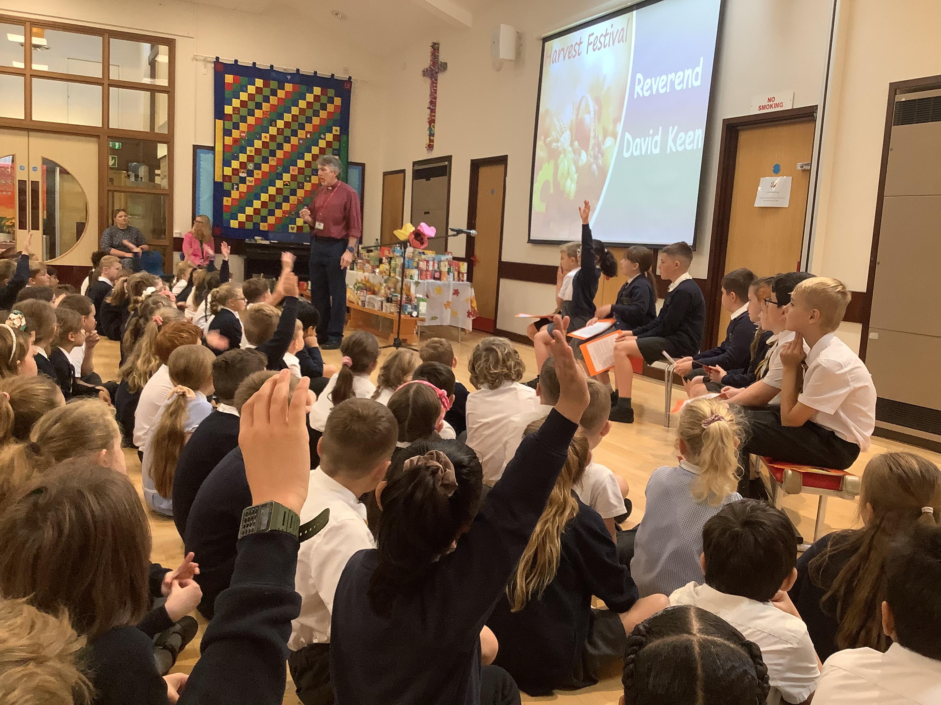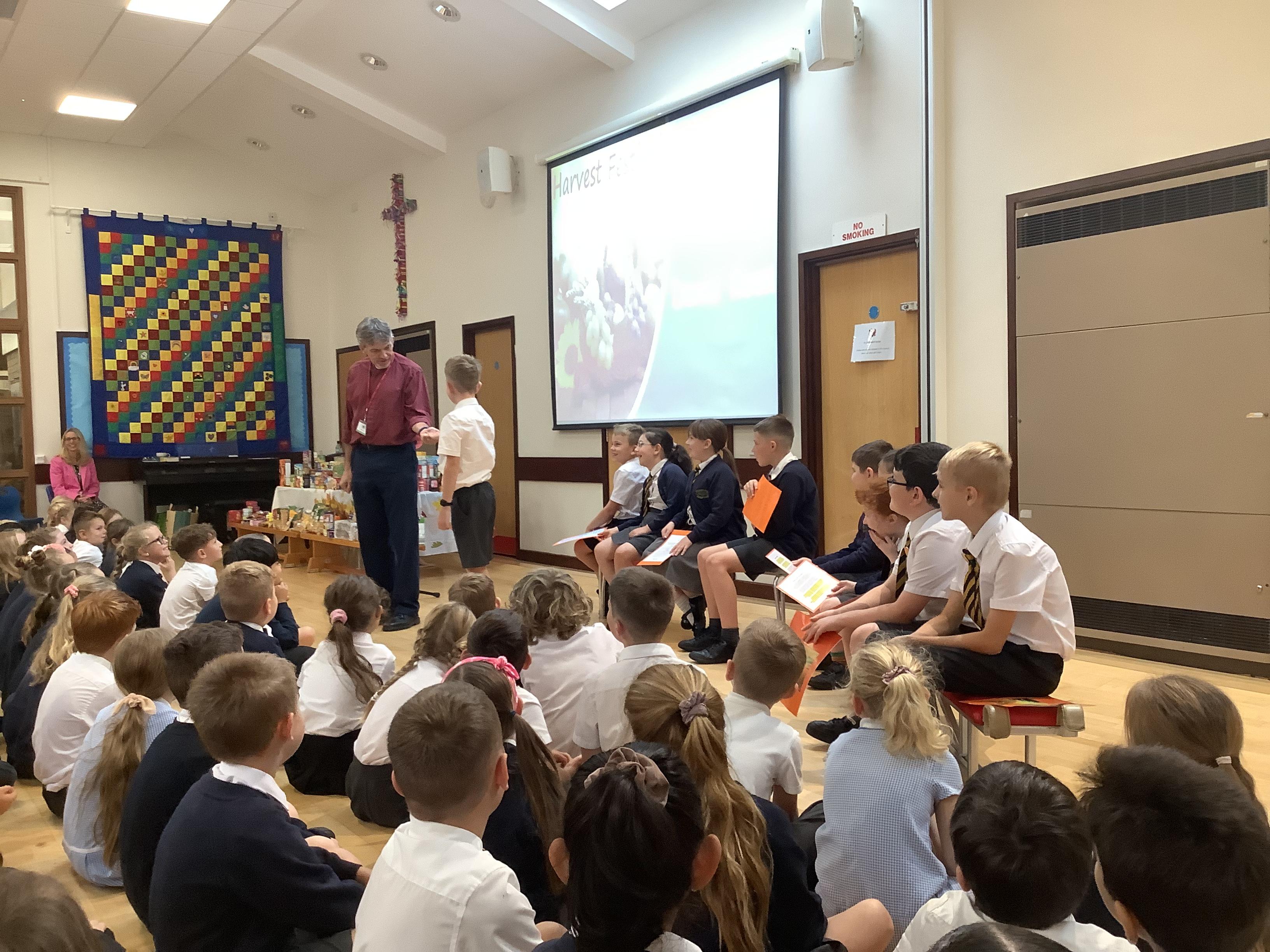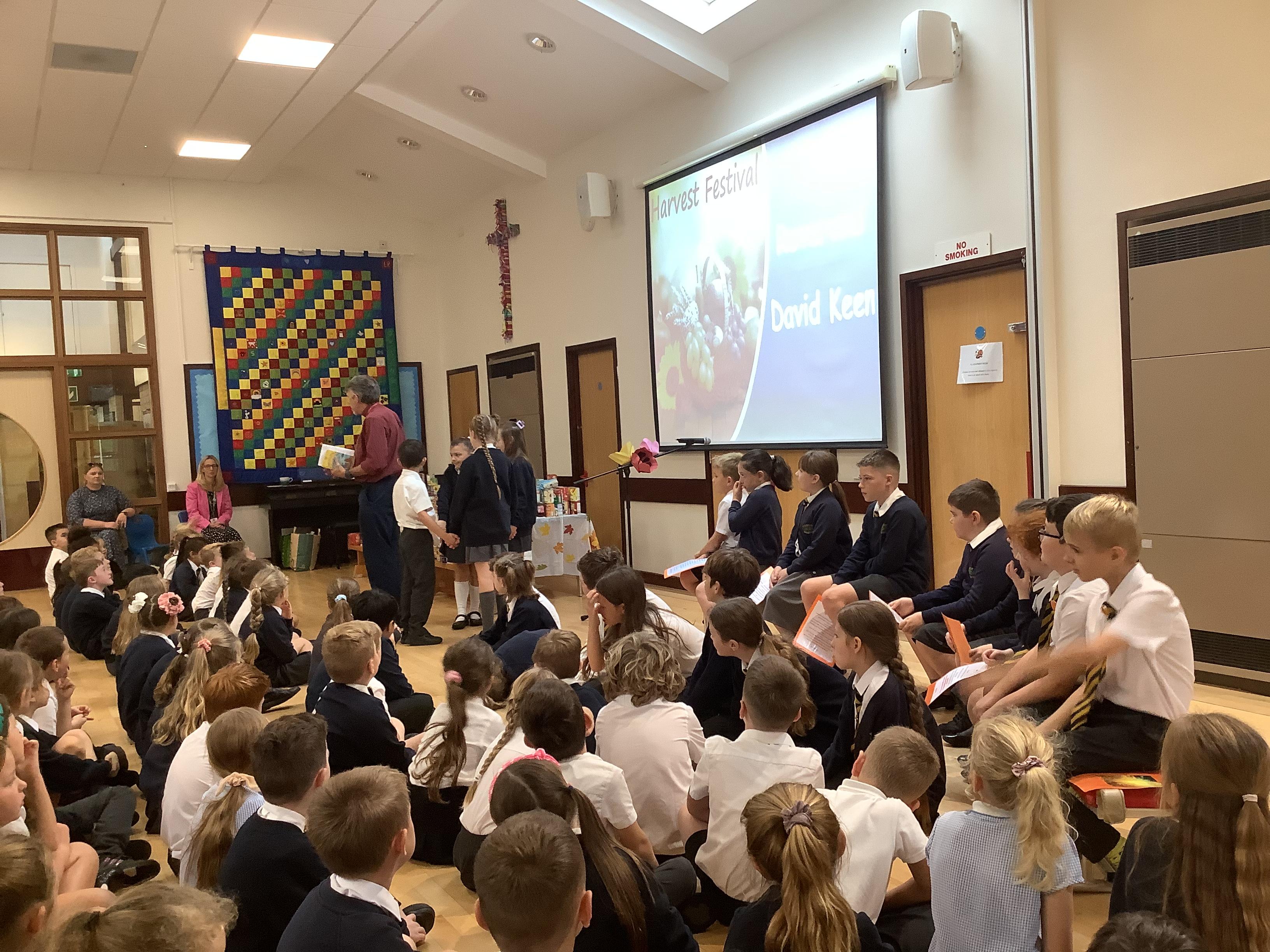 We celebrated our harvest festival this week! The children brought in some donations for the Lord's larder and we displayed them at the front of the assembly. We sang some hymns and read some poems and prayers. Rev. David also shared a bible story about the harvest. What a wonderful harvest assembly!