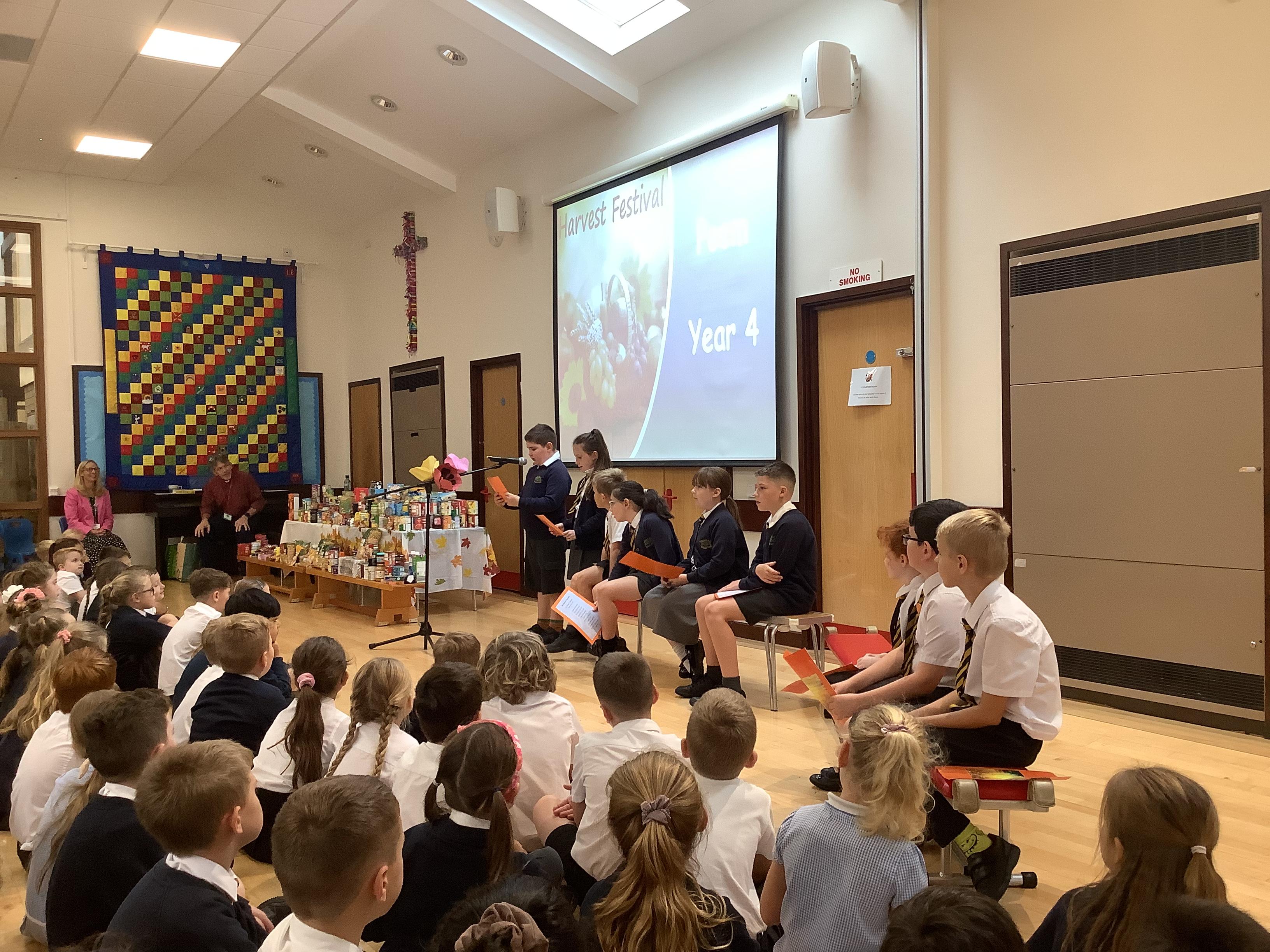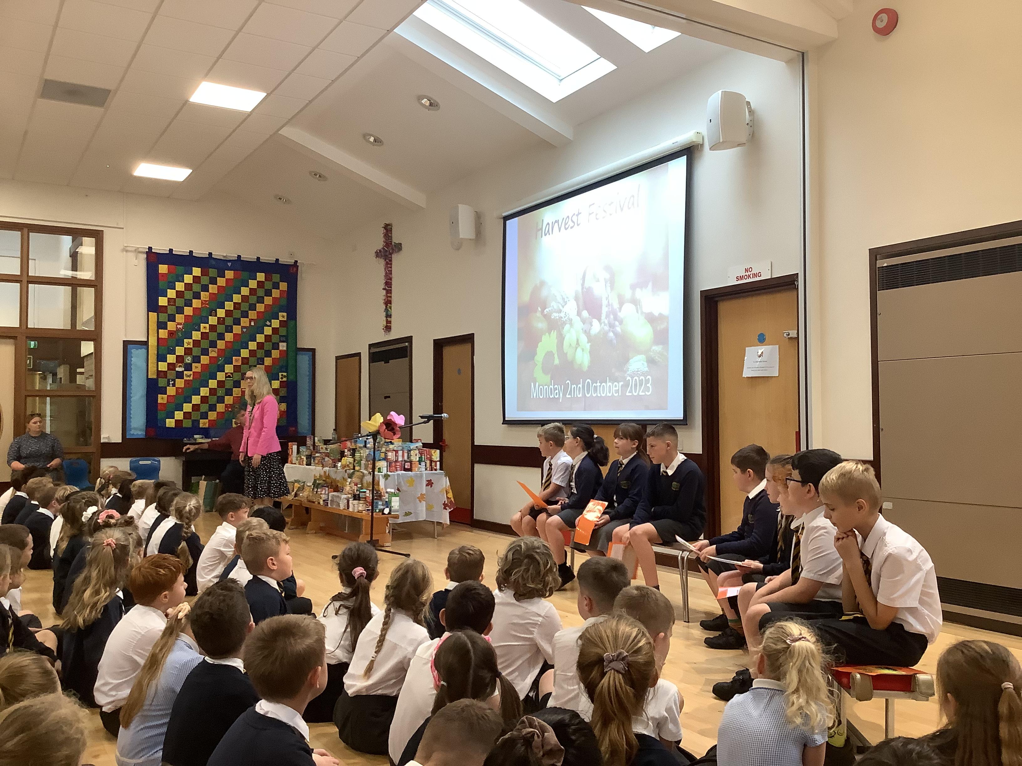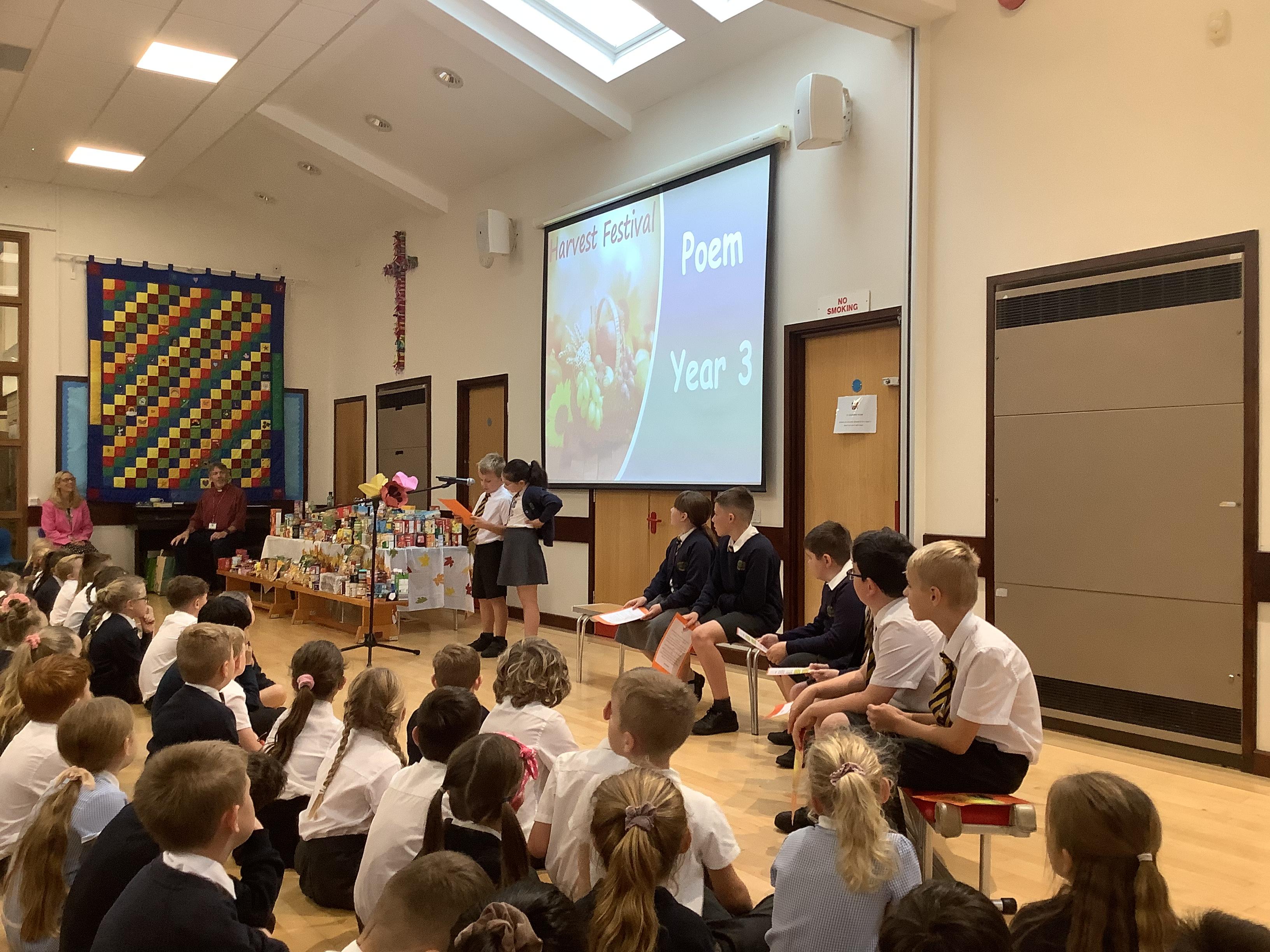 We celebrated our harvest festival this week! The children brought in some donations for the Lord's larder and we displayed them at the front of the assembly. We sang some hymns and read some poems and prayers. Rev. David also shared a bible story about the harvest. What a wonderful harvest assembly!