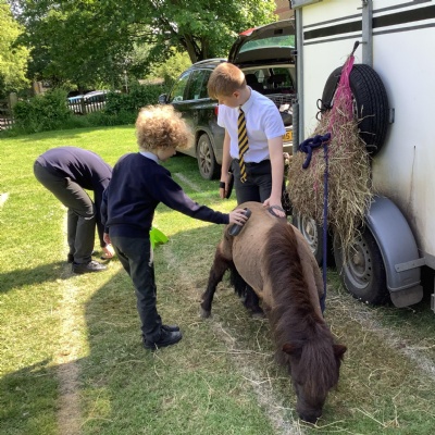 We have been lucky enough this week to have a visit from some local farm animals. The children were incredibly well-behaved and the staff had nothing but nice things to say about how polite and careful they were with the animals. Well done, everyone!