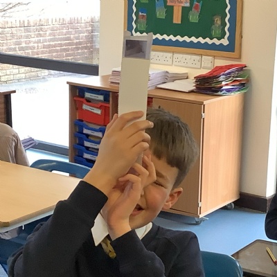 To kick off the first week of our brand new term, we finished our science unit of light with a practical investigation making and testing periscopes. The children learned all about how placing mirrors are at 45-degree angle at each end of the periscope reflects to create a 90-degree angle, changing the horizontal trajectory of the light to begin travelling vertically. The children had lots of fun testing their periscopes after they had worked hard building them.