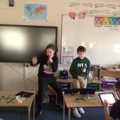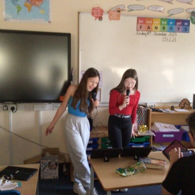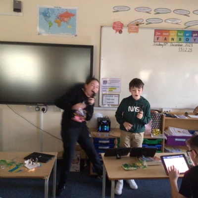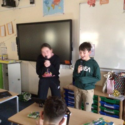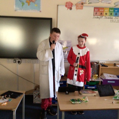As it is the final week before the Christmas holidays, the children have been up to lots of different Christmas activities. From making their Christmas cards and calendars for the new year to enjoying our annual Christmas service at the church and helping to cook our Christmas dinner, the children have been very busy. We also have to say a big thank you to the PTA for our lovely visit from one of Santa's elves who also brought us our class Christmas present... a karaoke machine!